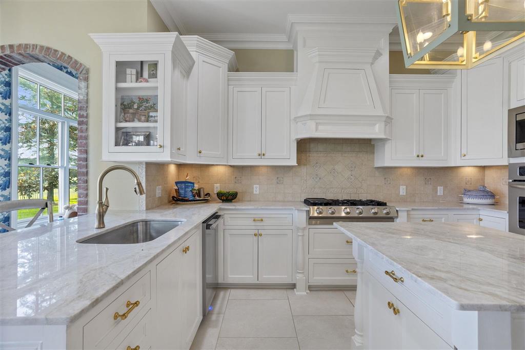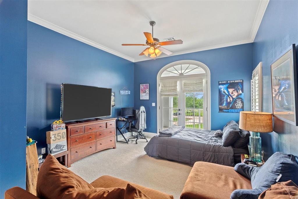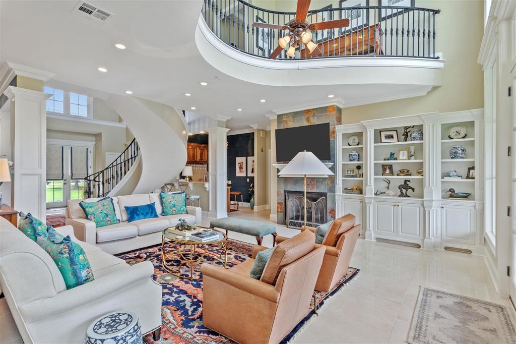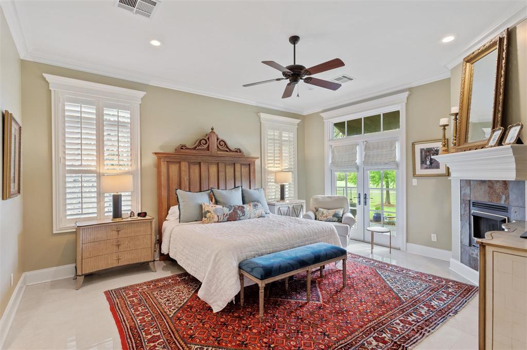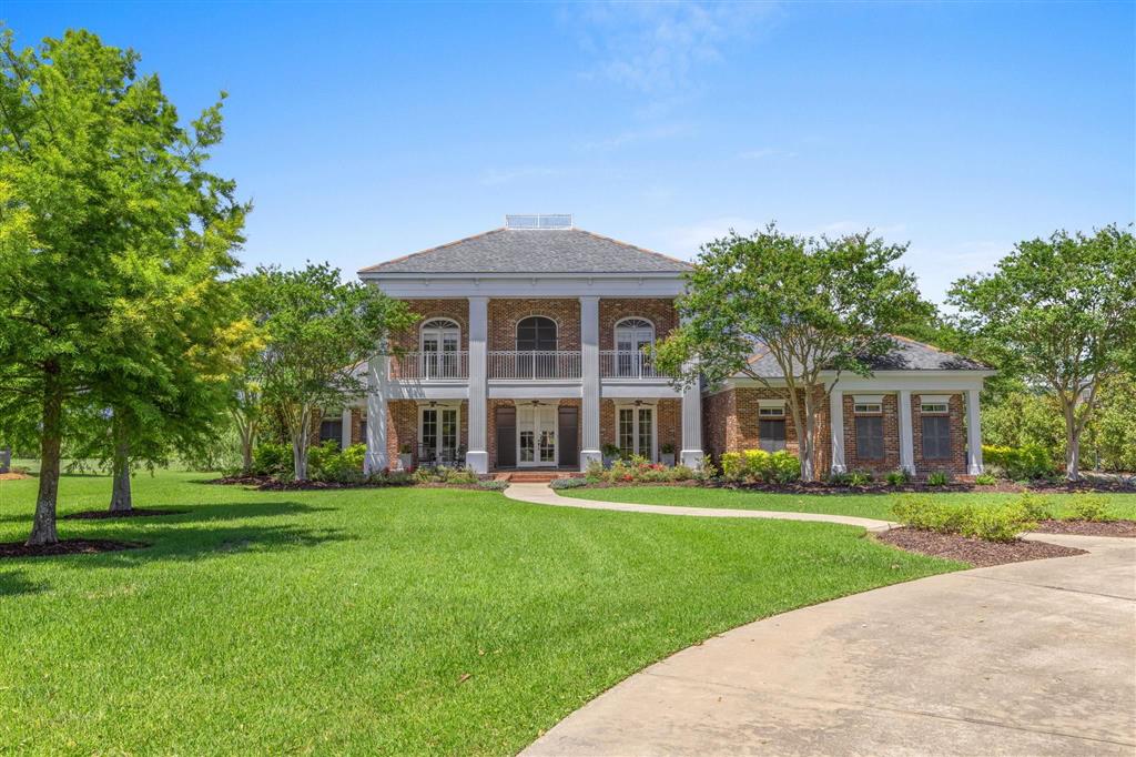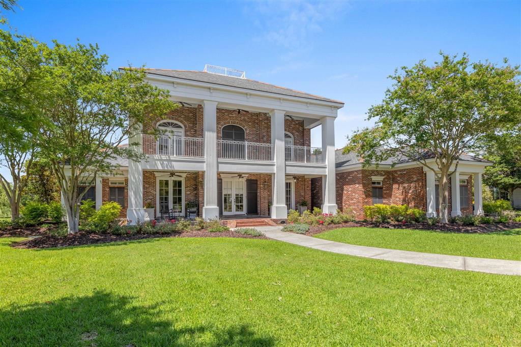 Elegant golf course home situated on just under 3/4 of an acre in Graywood Plantation with an open floor plan and stunning views of the 7th hole and bordering waterways. Indigo Place is a single street subdivision of custom-built homes, all on the golf course. This home not only is on the course but commands water views from several of the outdoor patios and balconies. Timeless design with spiral staircase accented with iron banisters hand crafted by Custom Iron by Josh and thoughtful design allowing abundant natural light throughout the living areas. Handsome study that could be used as an additional sitting space with ample built-ins off the foyer flanked by an open yet formal dining room. Cozy wet bar tucked off the living room ideal for entertaining. Living room has a gas fireplace and a wall of double windows overlooking the serene outdoor views. Kitchen boasts white painted cabinetry, center island, stainless appliances including a new oversized refrigerator, 6 burner gas cooktop, double oven, a new microwave and eat in breakfast bar. Separate breakfast area leading to mudroom and half bath, spacious laundry room and full three car garage plus a connected separate large storage room for all your tools, and a full set of stairs leading to additional storage space in the attic above garage. Stunning Taj Mahal quartzite countertops and new plumbing fixtures throughout. Primary bedroom features a corner fireplace, French doors that lead to an open patio, an en suite boasting a soaking tub and large walk-in shower, water closet and dual vanities. There are three additional bedrooms with two full baths upstairs along with a landing sitting space and an additional room ideal for a den/game room. All having private balconies. Full home generator, beautifully landscaped including sprinkler system, in addition to outdoor kitchen complete with tv, stainless gas grill, sink, refrigerator, and granite countertops with bar seating, ample outdoor covered seating areas with a custom metal awning hand crafted by Custom Iron by Josh, and iron fenced backyard that is pool ready. Tastefully decorated with transitional styling throughout. Flood Zone X.