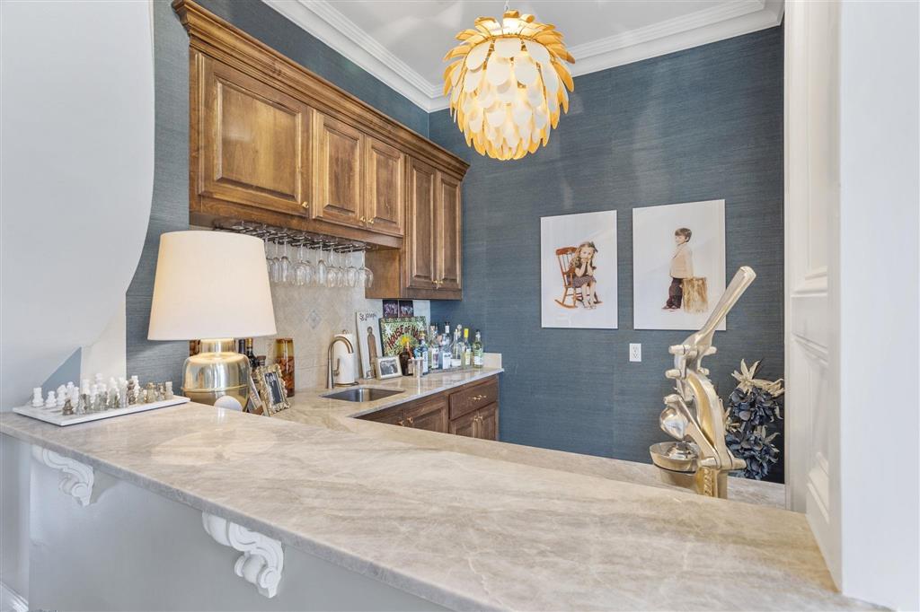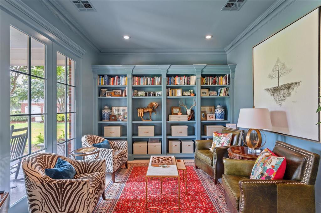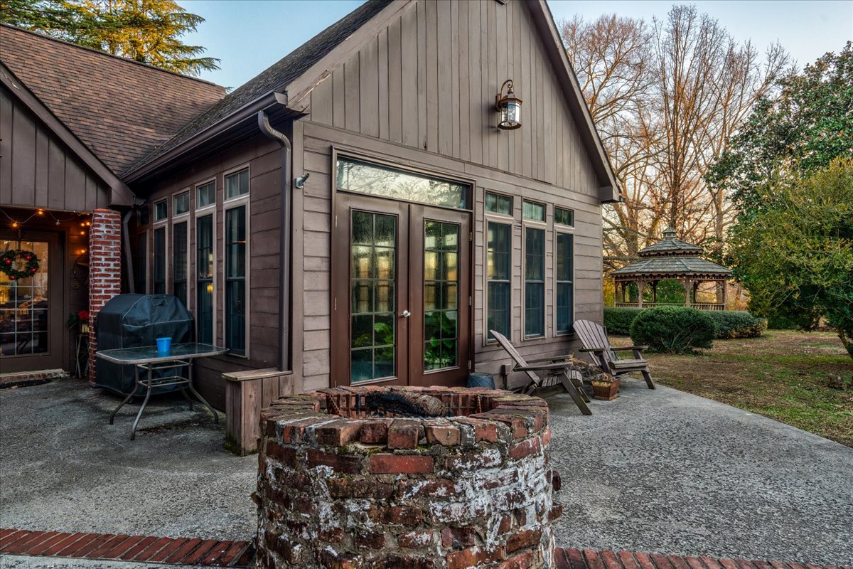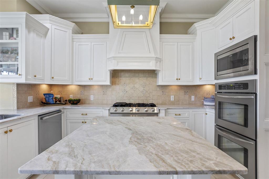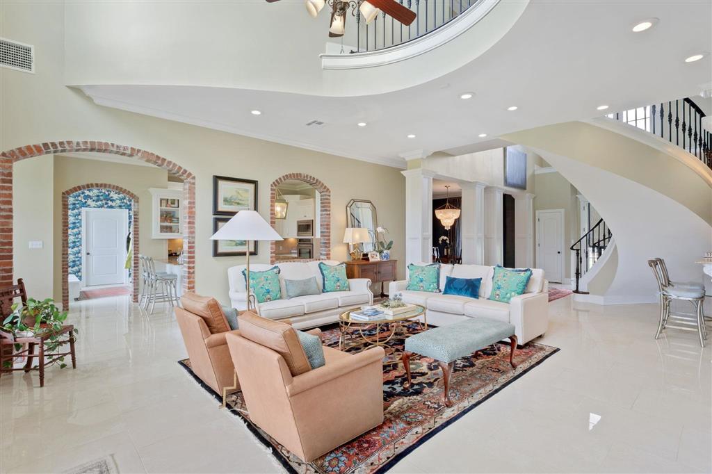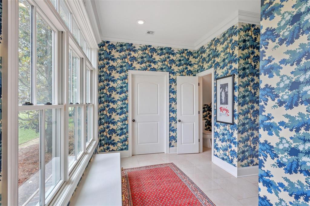 Elegant golf course home situated on just under 3/4 of an acre in Graywood Plantation with an open floor plan and stunning views of the 7th hole and bordering waterways. Indigo Place is a single street subdivision of custom-built homes, all on the golf course. This home not only is on the course but commands water views from several of the outdoor patios and balconies. Timeless design with spiral staircase accented with iron banisters hand crafted by Custom Iron by Josh and thoughtful design allowing abundant natural light throughout the living areas. Handsome study that could be used as an additional sitting space with ample built-ins off the foyer flanked by an open yet formal dining room. Cozy wet bar tucked off the living room ideal for entertaining. Living room has a gas fireplace and a wall of double windows overlooking the serene outdoor views. Kitchen boasts white painted cabinetry, center island, stainless appliances including a new oversized refrigerator, 6 burner gas cooktop, double oven, a new microwave and eat in breakfast bar. Separate breakfast area leading to mudroom and half bath, spacious laundry room and full three car garage plus a connected separate large storage room for all your tools, and a full set of stairs leading to additional storage space in the attic above garage. Stunning Taj Mahal quartzite countertops and new plumbing fixtures throughout. Primary bedroom features a corner fireplace, French doors that lead to an open patio, an en suite boasting a soaking tub and large walk-in shower, water closet and dual vanities. There are three additional bedrooms with two full baths upstairs along with a landing sitting space and an additional room ideal for a den/game room. All having private balconies. Full home generator, beautifully landscaped including sprinkler system, in addition to outdoor kitchen complete with tv, stainless gas grill, sink, refrigerator, and granite countertops with bar seating, ample outdoor covered seating areas with a custom metal awning hand crafted by Custom Iron by Josh, and iron fenced backyard that is pool ready. Tastefully decorated with transitional styling throughout. Flood Zone X.