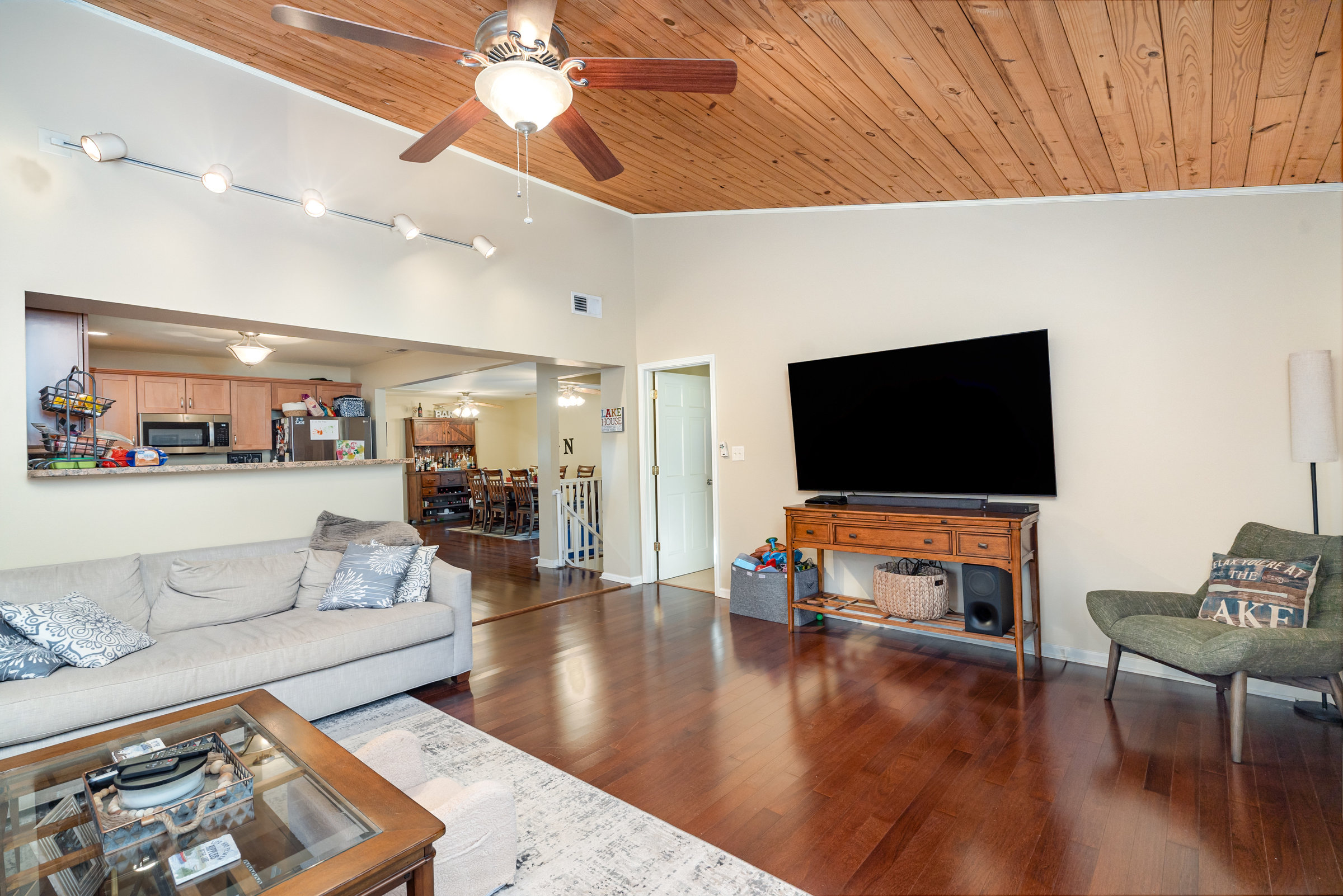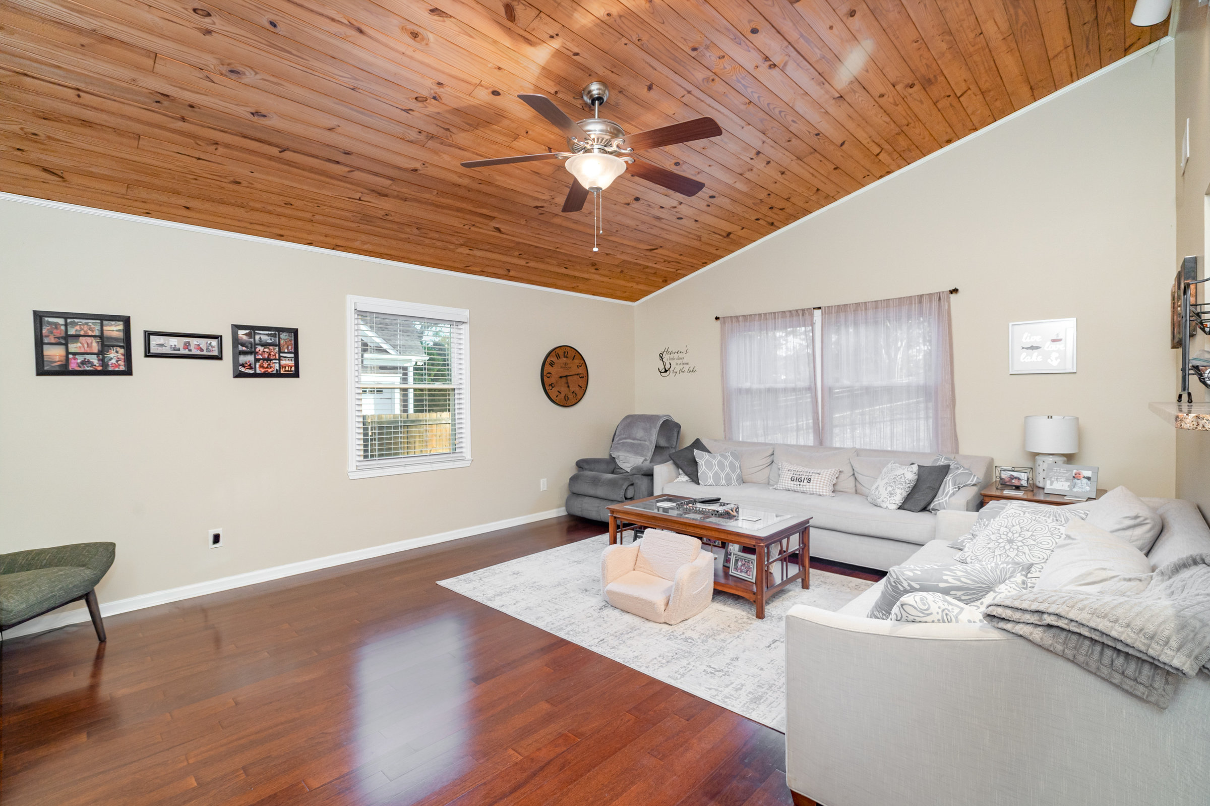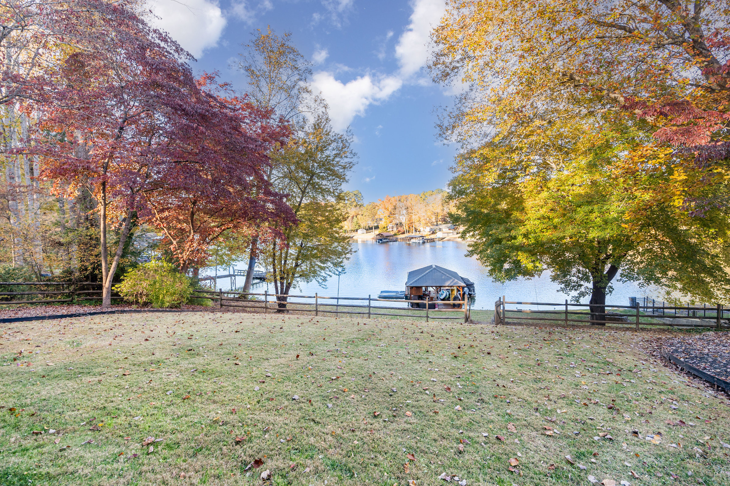 This stunning waterfront ranch with basement offers the perfect blend of comfort and lakefront living, featuring year-round lake views from the covered deck and patio. The spacious layout includes 3 bedrooms, 2.5 bathrooms, and a beautifully finished basement providing extra living and entertaining space. Primary and second bedroom on the main-another bedroom on lower level. Microwave and stove in kitchen 2025. Dishwasher 2024. Exit to the deck from dining area and primary bedroom and exit to the covered porch area from recreation room on lower level. Enjoy outdoor living at its finest with a covered dock complete with a bar/dining area plus a floating dock ideal for watersports and boating. A rare opportunity to experience serene lakefront living every day! No septic permit on file per the county. Boat lift is not holding boat up so needs to be repaired or removed.