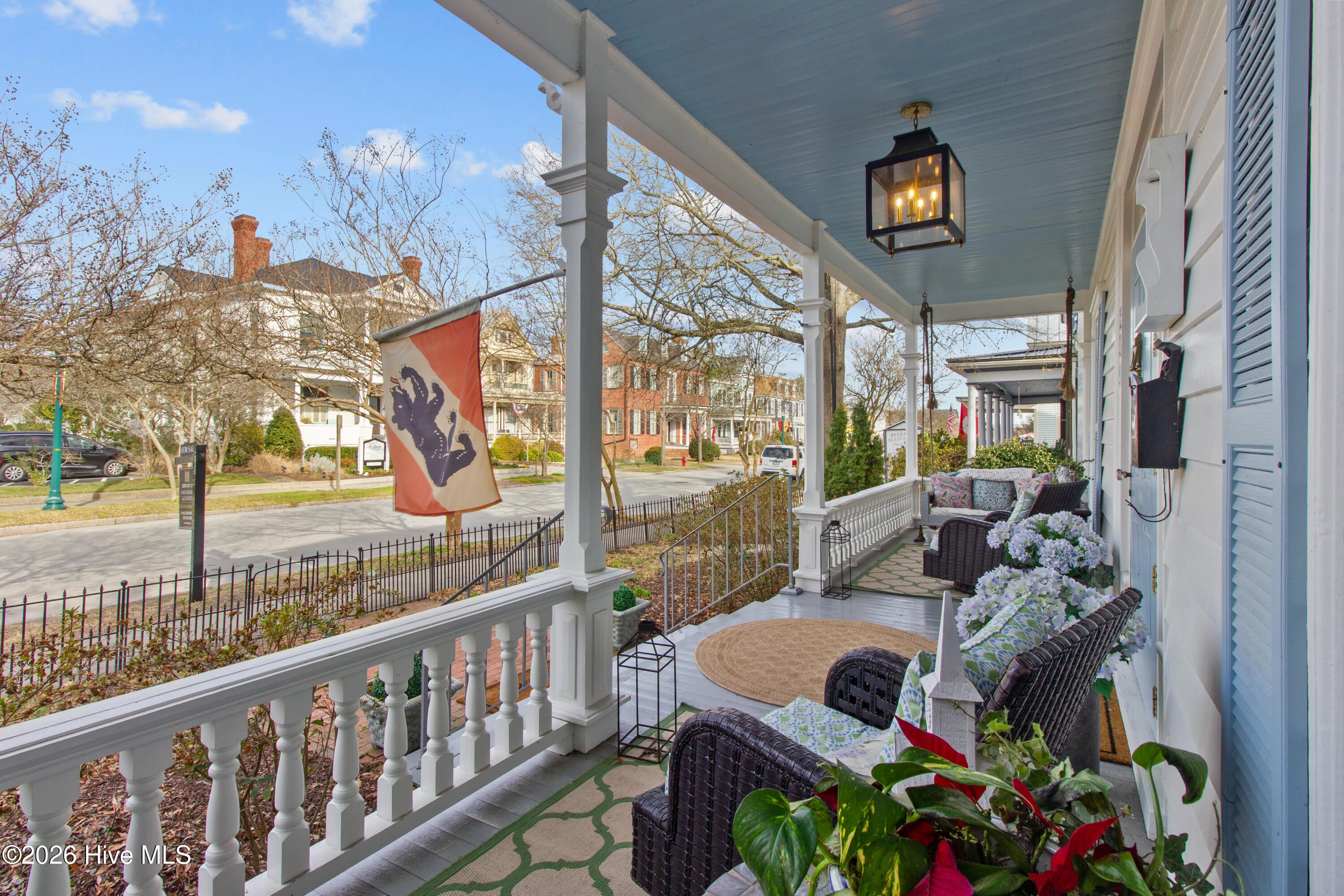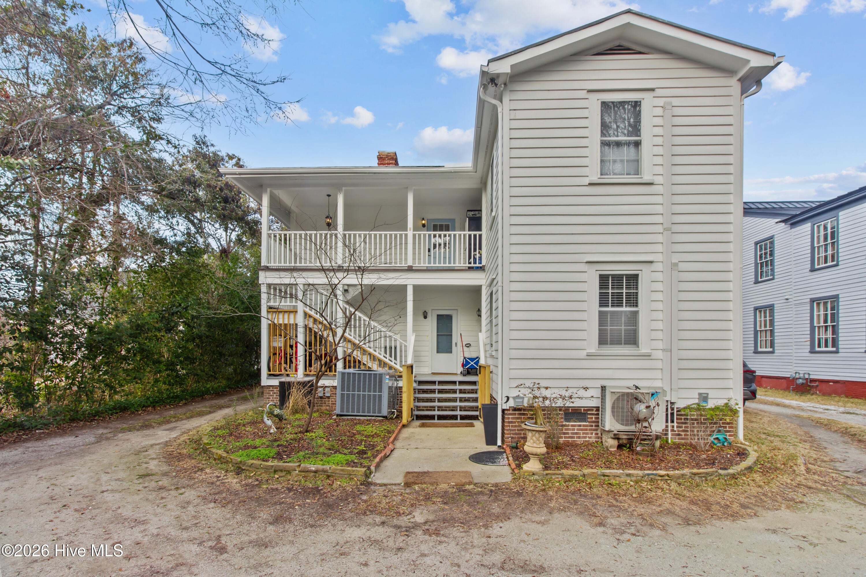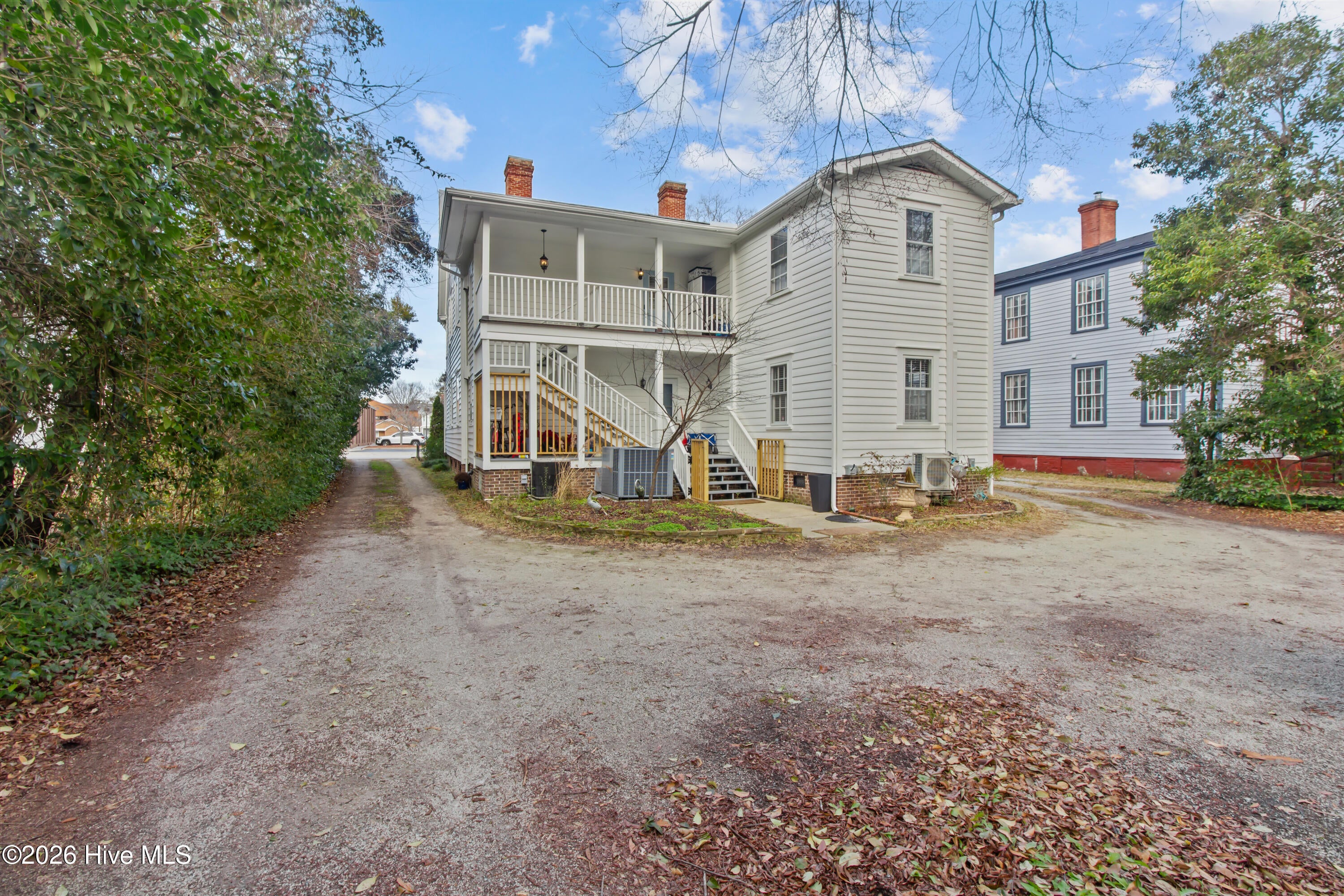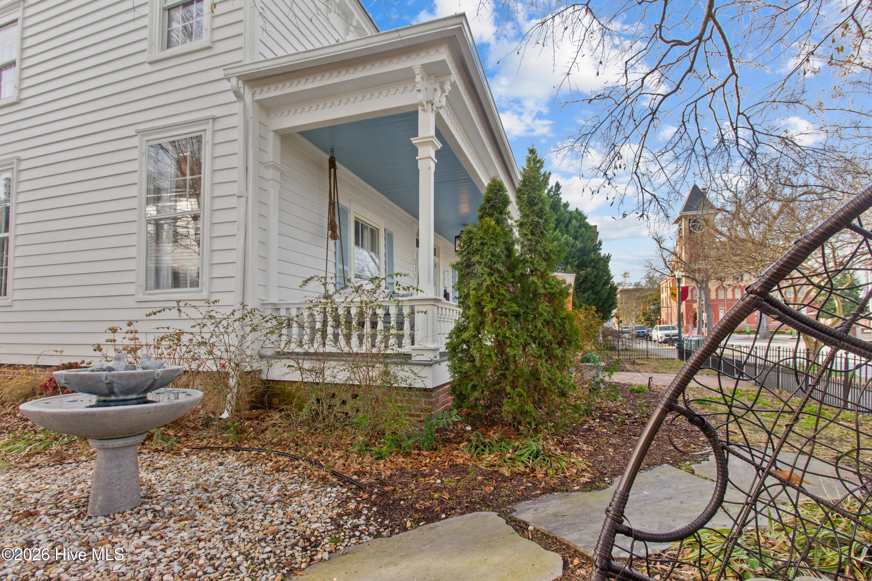 Step into a rare opportunity to own a piece of Downtown New Bern history with the beautifully updated Simpson Duffy House circa 1845. This remarkable home blends timeless character with thoughtful modern upgrades, offering charm, comfort, and exceptional versatility. Extensive renovations completed 2018-2019, along with recent improvements--including fresh exterior paint (2025), a newly glazed and sealed roof (2023), a new bath; brand new second/ third floor gas unit (2026)- ensure peace of mind while preserving historic appeal. Relax on the inviting front porch overlooking a lushly landscaped garden featuring a custom birdbath water feature, creating a serene welcome home. Inside, the foyer opens to a gracious dining room on one side and spacious living room on the other--perfect for entertaining and family gatherings. The renovated kitchen is a standout, featuring beautifully finished cabinetry with soft-close doors and drawers, Whirlpool appliances, a striking blue backsplash, wall oven, built-in microwave, electric cooktop, and a charming bar area with glass-front cabinets. A fully updated first-floor bathroom offers a walk-in tile shower. Upstairs, original pine floors lead to an impressive primary suite complete with a fireplace, built-in bookshelves, abundant natural light, a walk-in closet with custom fixtures and storage island, and an updated en-suite bath with walk-in tile shower and upgraded vanity. Laundry is conveniently located on this level. Two additional large bedrooms complete the second floor. The third floor offers two more bedrooms--one currently used as a studio--providing endless options for guests, offices, or creative space. Adding to the homes exceptional value is its income-producing potential. Two separate apartment spaces--each with a private exterior entrance, kitchen, laundry, private bath, and spacious bedroom with sitting area--can easily be converted back to apartments or used as in-law or guest quarters. One is located on the main floor and the other on the second floor.