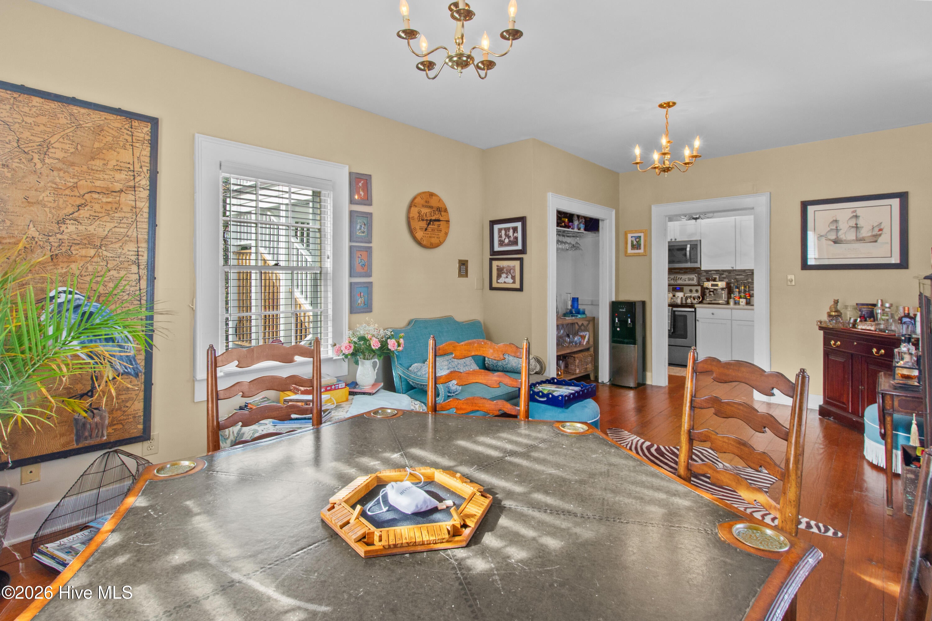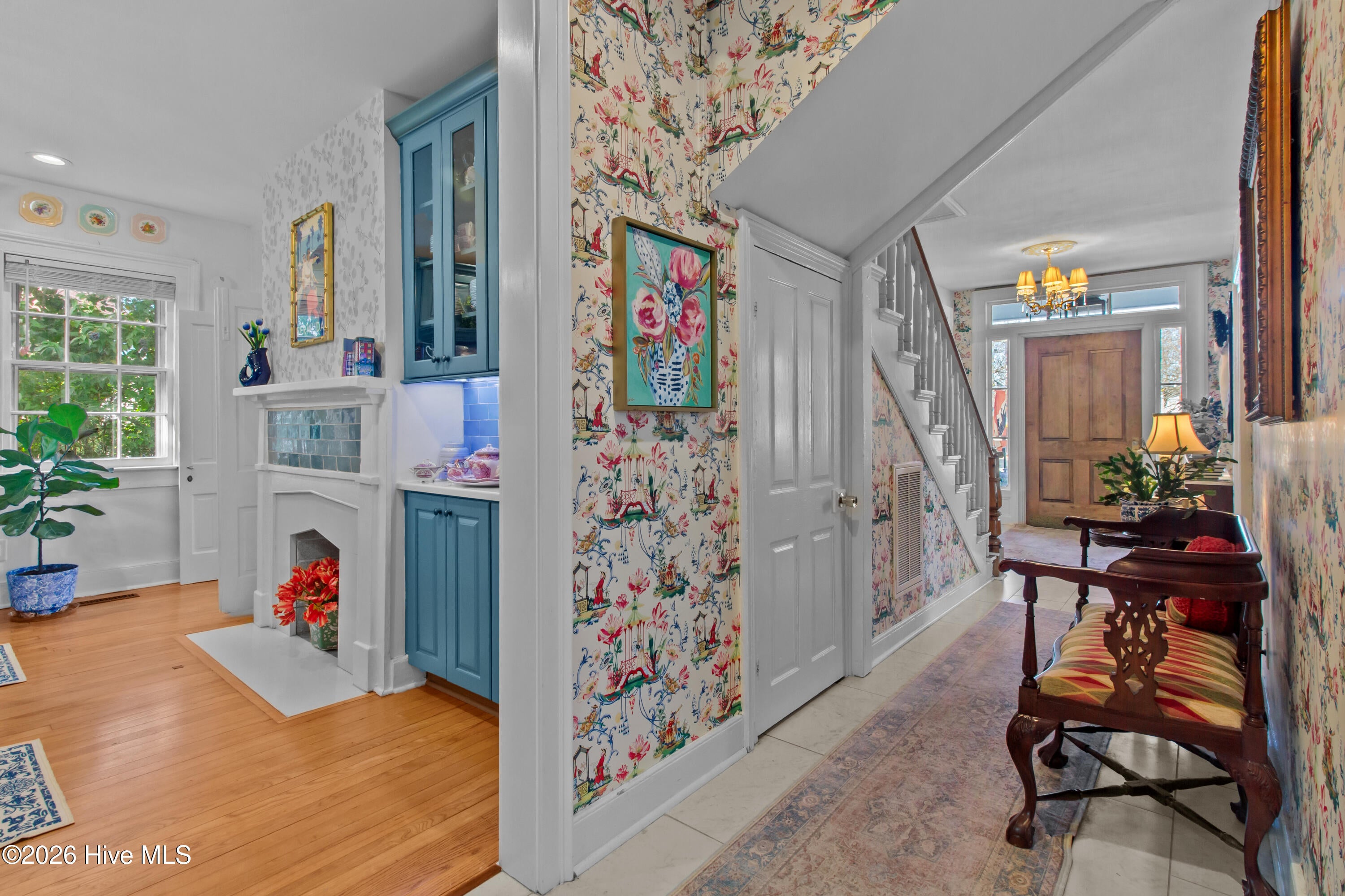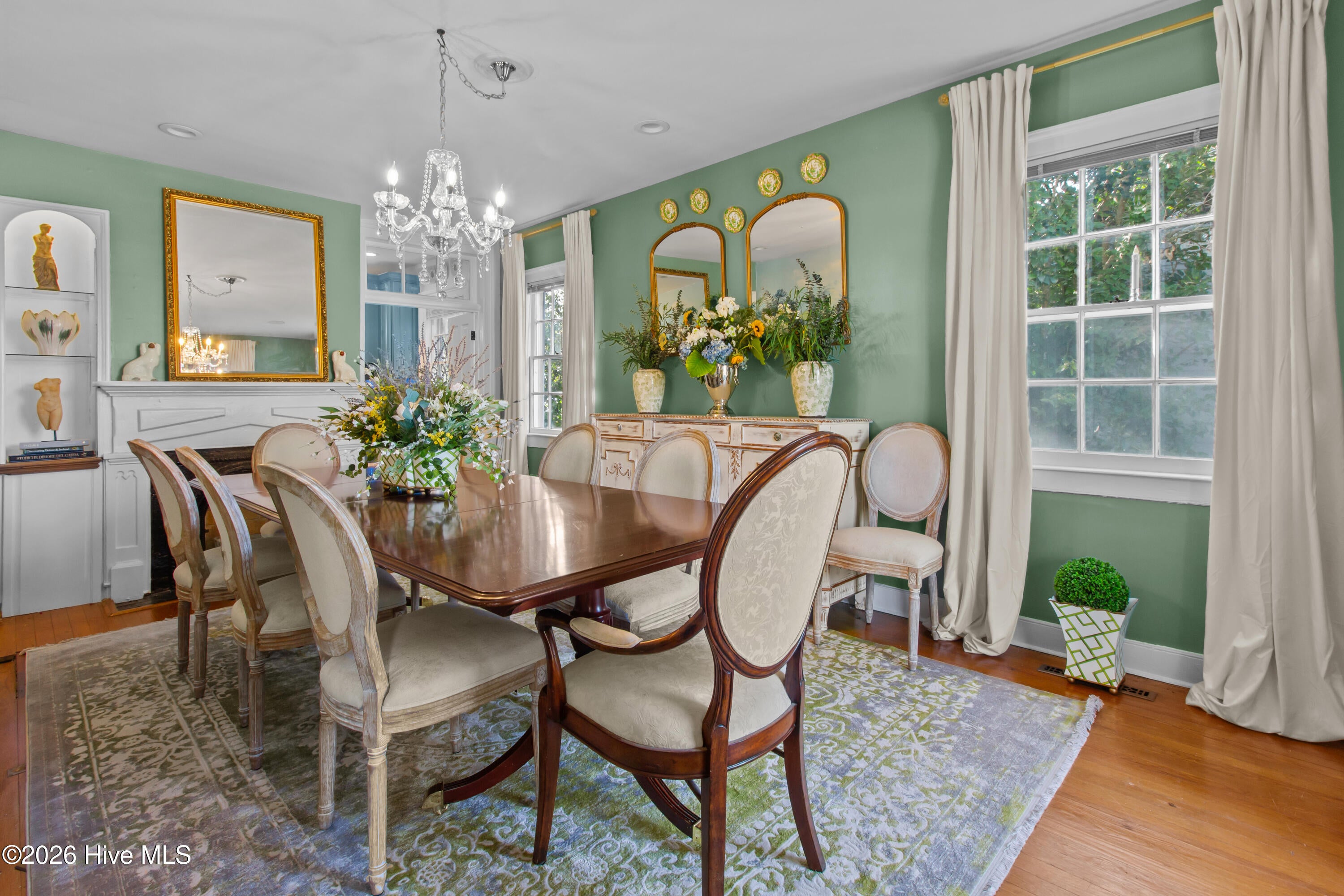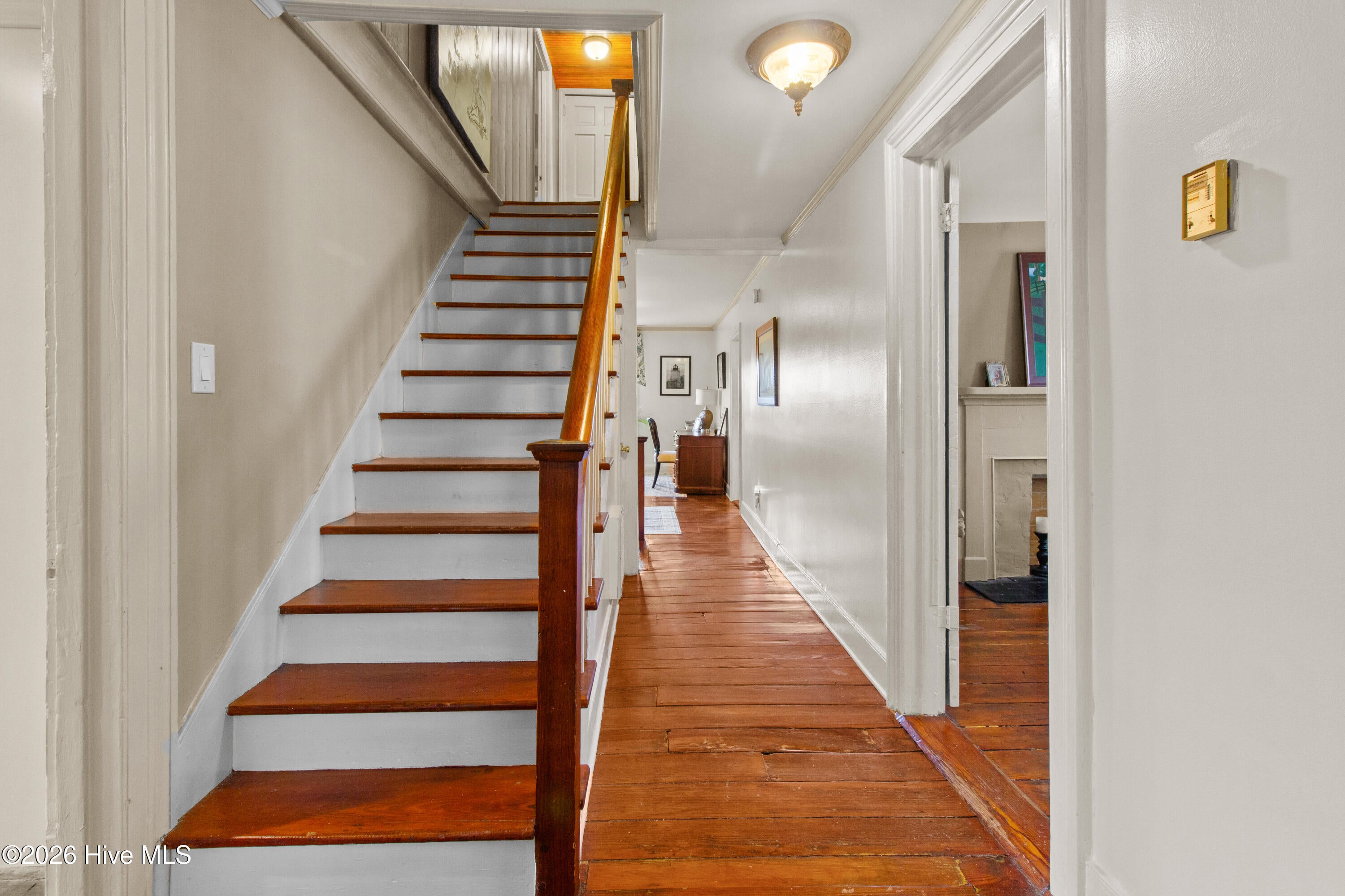 Step into a rare opportunity to own a piece of Downtown New Bern history with the beautifully updated Simpson Duffy House circa 1845. This remarkable home blends timeless character with thoughtful modern upgrades, offering charm, comfort, and exceptional versatility. Extensive renovations completed 2018-2019, along with recent improvements--including fresh exterior paint (2025), a newly glazed and sealed roof (2023), a new bath; brand new second/ third floor gas unit (2026)- ensure peace of mind while preserving historic appeal. Relax on the inviting front porch overlooking a lushly landscaped garden featuring a custom birdbath water feature, creating a serene welcome home. Inside, the foyer opens to a gracious dining room on one side and spacious living room on the other--perfect for entertaining and family gatherings. The renovated kitchen is a standout, featuring beautifully finished cabinetry with soft-close doors and drawers, Whirlpool appliances, a striking blue backsplash, wall oven, built-in microwave, electric cooktop, and a charming bar area with glass-front cabinets. A fully updated first-floor bathroom offers a walk-in tile shower. Upstairs, original pine floors lead to an impressive primary suite complete with a fireplace, built-in bookshelves, abundant natural light, a walk-in closet with custom fixtures and storage island, and an updated en-suite bath with walk-in tile shower and upgraded vanity. Laundry is conveniently located on this level. Two additional large bedrooms complete the second floor. The third floor offers two more bedrooms--one currently used as a studio--providing endless options for guests, offices, or creative space. Adding to the homes exceptional value is its income-producing potential. Two separate apartment spaces--each with a private exterior entrance, kitchen, laundry, private bath, and spacious bedroom with sitting area--can easily be converted back to apartments or used as in-law or guest quarters. One is located on the main floor and the other on the second floor.