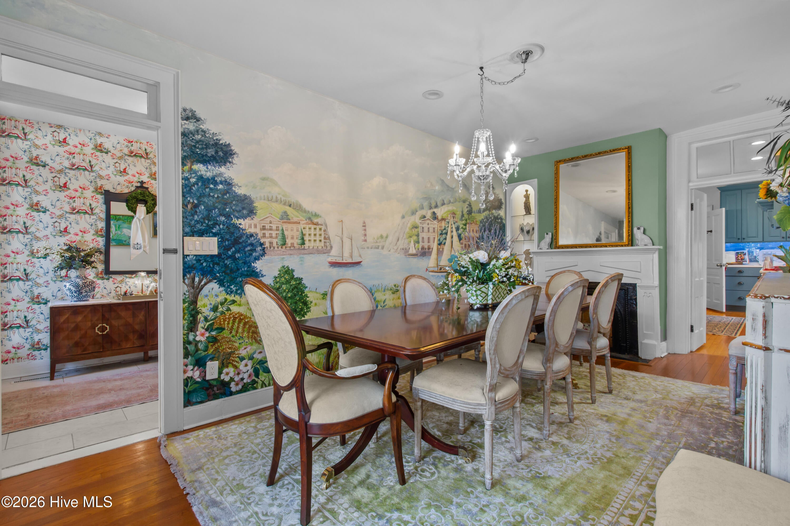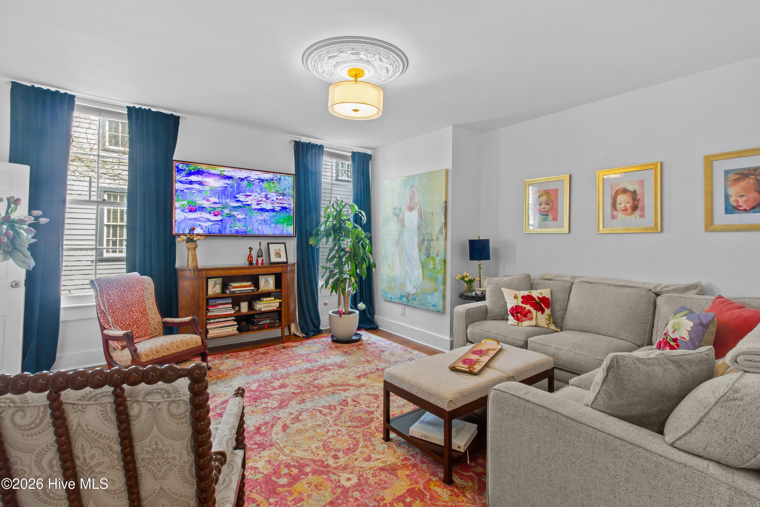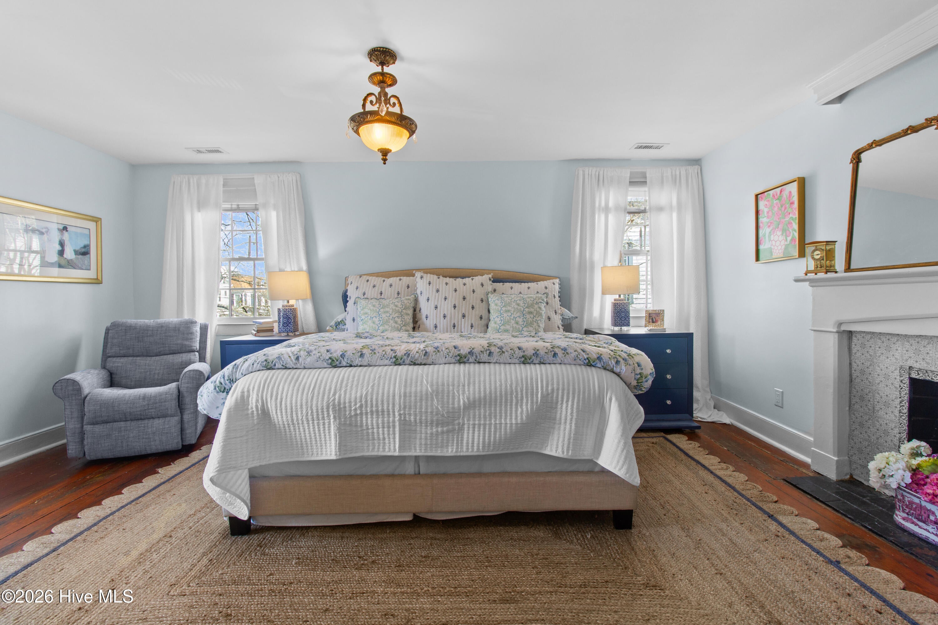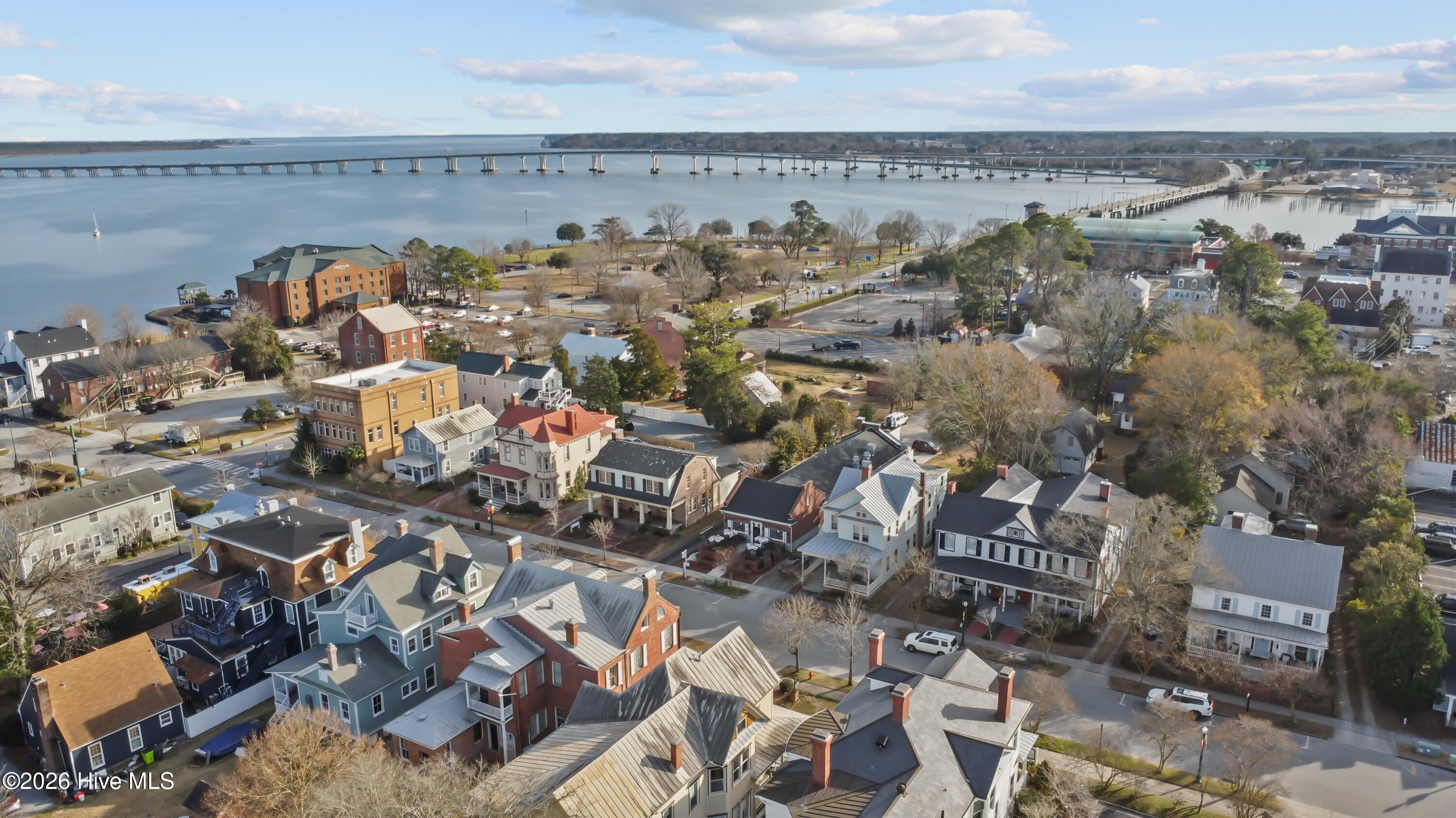 Step into a rare opportunity to own a piece of Downtown New Bern history with the beautifully updated Simpson Duffy House circa 1845. This remarkable home blends timeless character with thoughtful modern upgrades, offering charm, comfort, and exceptional versatility. Extensive renovations completed 2018-2019, along with recent improvements--including fresh exterior paint (2025), a newly glazed and sealed roof (2023), a new bath; brand new second/ third floor gas unit (2026)- ensure peace of mind while preserving historic appeal. Relax on the inviting front porch overlooking a lushly landscaped garden featuring a custom birdbath water feature, creating a serene welcome home. Inside, the foyer opens to a gracious dining room on one side and spacious living room on the other--perfect for entertaining and family gatherings. The renovated kitchen is a standout, featuring beautifully finished cabinetry with soft-close doors and drawers, Whirlpool appliances, a striking blue backsplash, wall oven, built-in microwave, electric cooktop, and a charming bar area with glass-front cabinets. A fully updated first-floor bathroom offers a walk-in tile shower. Upstairs, original pine floors lead to an impressive primary suite complete with a fireplace, built-in bookshelves, abundant natural light, a walk-in closet with custom fixtures and storage island, and an updated en-suite bath with walk-in tile shower and upgraded vanity. Laundry is conveniently located on this level. Two additional large bedrooms complete the second floor. The third floor offers two more bedrooms--one currently used as a studio--providing endless options for guests, offices, or creative space. Adding to the homes exceptional value is its income-producing potential. Two separate apartment spaces--each with a private exterior entrance, kitchen, laundry, private bath, and spacious bedroom with sitting area--can easily be converted back to apartments or used as in-law or guest quarters. One is located on the main floor and the other on the second floor.