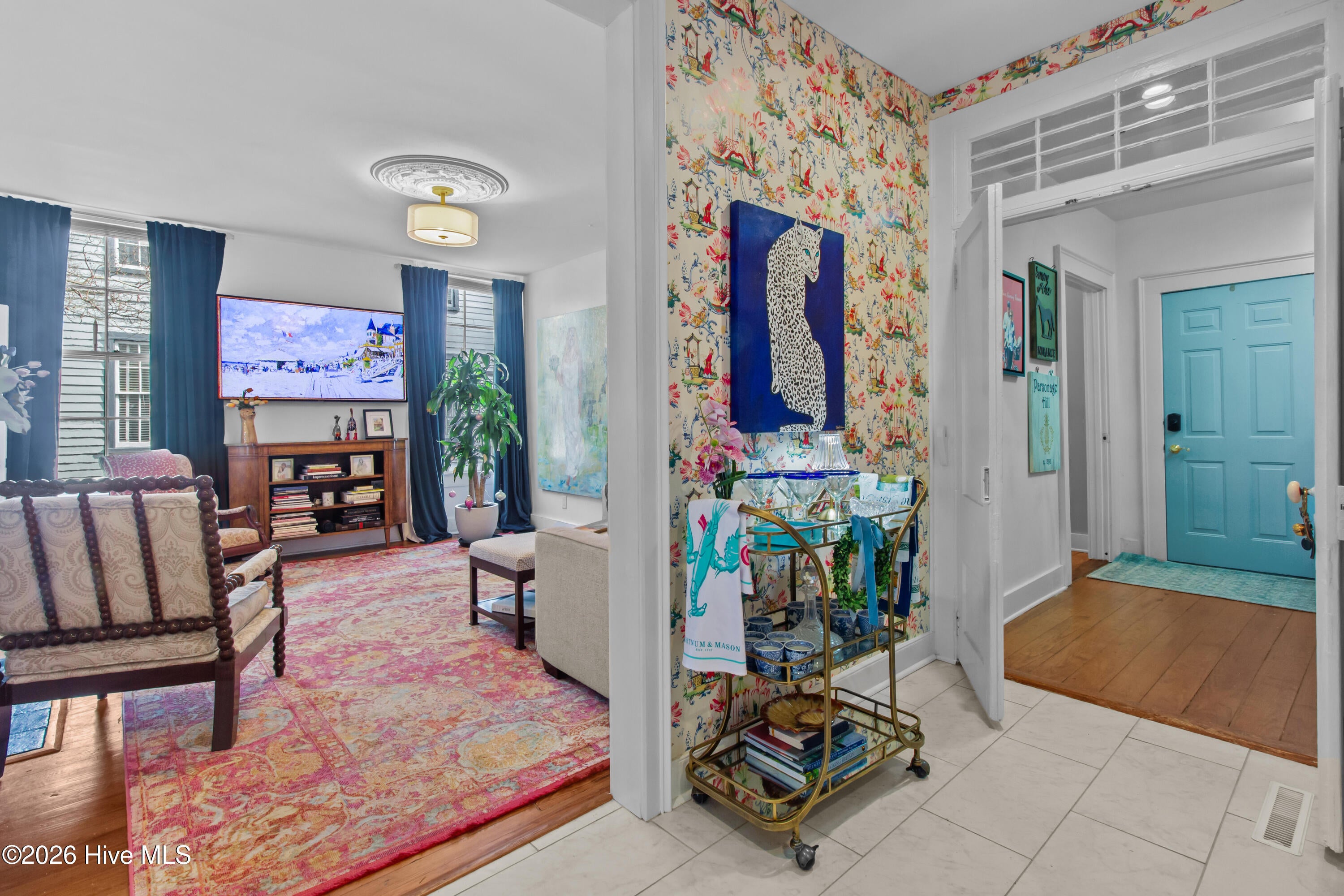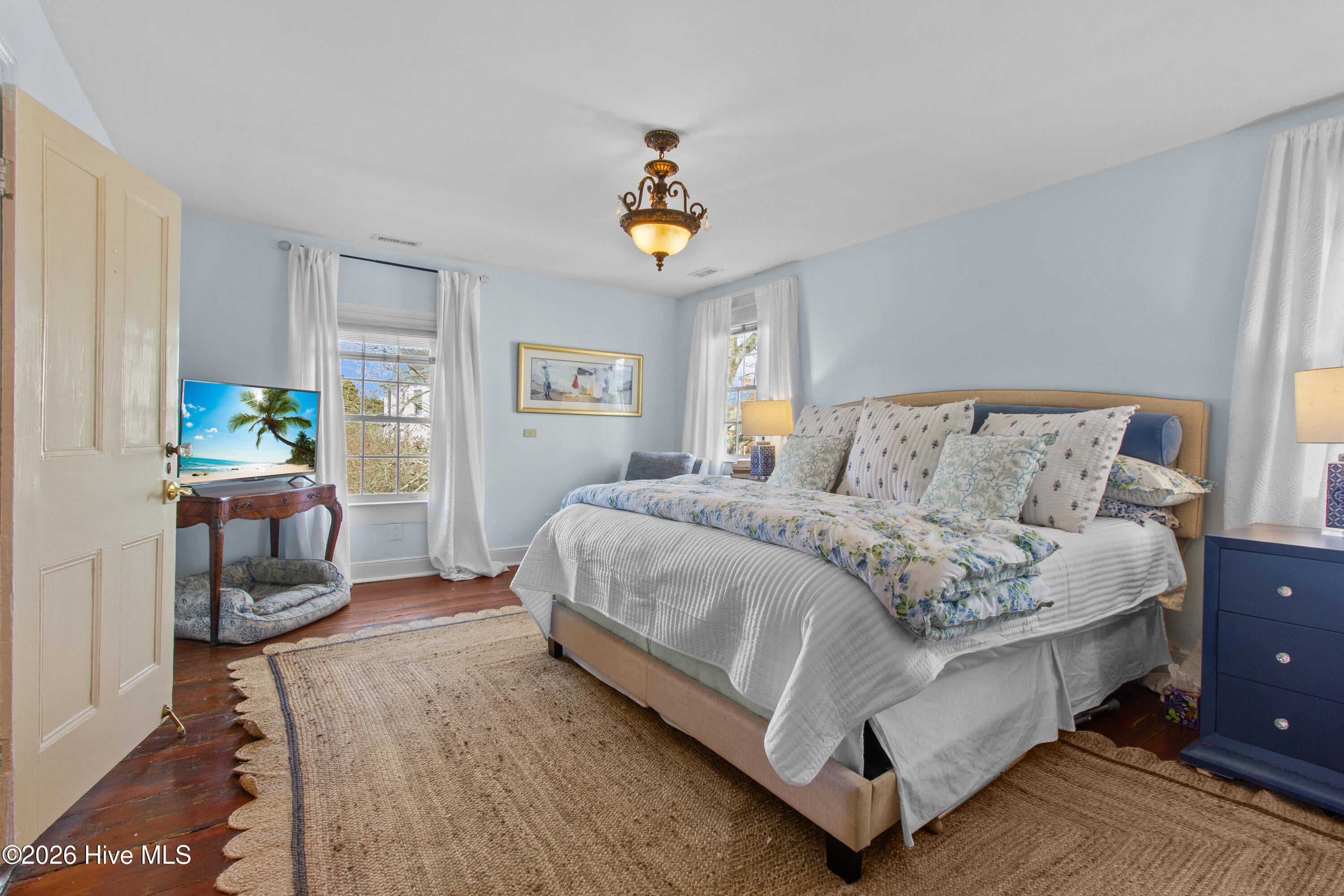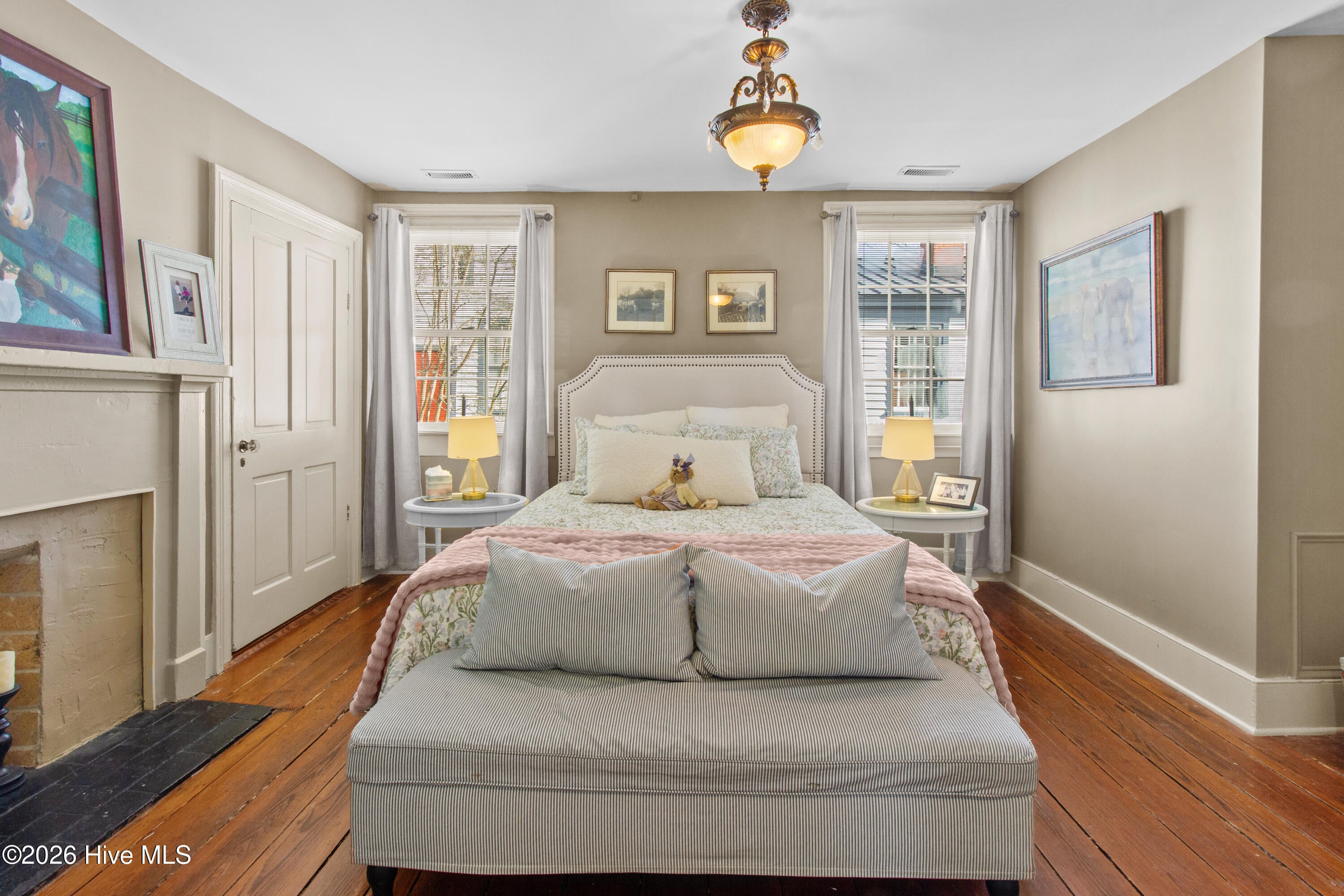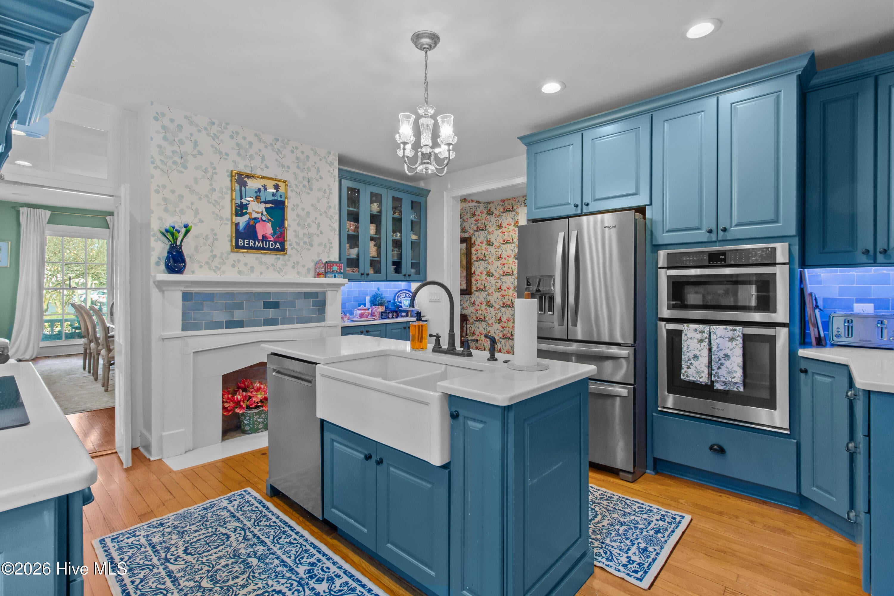 Step into a rare opportunity to own a piece of Downtown New Bern history with the beautifully updated Simpson Duffy House circa 1845. This remarkable home blends timeless character with thoughtful modern upgrades, offering charm, comfort, and exceptional versatility. Extensive renovations completed 2018-2019, along with recent improvements--including fresh exterior paint (2025), a newly glazed and sealed roof (2023), a new bath; brand new second/ third floor gas unit (2026)- ensure peace of mind while preserving historic appeal. Relax on the inviting front porch overlooking a lushly landscaped garden featuring a custom birdbath water feature, creating a serene welcome home. Inside, the foyer opens to a gracious dining room on one side and spacious living room on the other--perfect for entertaining and family gatherings. The renovated kitchen is a standout, featuring beautifully finished cabinetry with soft-close doors and drawers, Whirlpool appliances, a striking blue backsplash, wall oven, built-in microwave, electric cooktop, and a charming bar area with glass-front cabinets. A fully updated first-floor bathroom offers a walk-in tile shower. Upstairs, original pine floors lead to an impressive primary suite complete with a fireplace, built-in bookshelves, abundant natural light, a walk-in closet with custom fixtures and storage island, and an updated en-suite bath with walk-in tile shower and upgraded vanity. Laundry is conveniently located on this level. Two additional large bedrooms complete the second floor. The third floor offers two more bedrooms--one currently used as a studio--providing endless options for guests, offices, or creative space. Adding to the homes exceptional value is its income-producing potential. Two separate apartment spaces--each with a private exterior entrance, kitchen, laundry, private bath, and spacious bedroom with sitting area--can easily be converted back to apartments or used as in-law or guest quarters. One is located on the main floor and the other on the second floor.