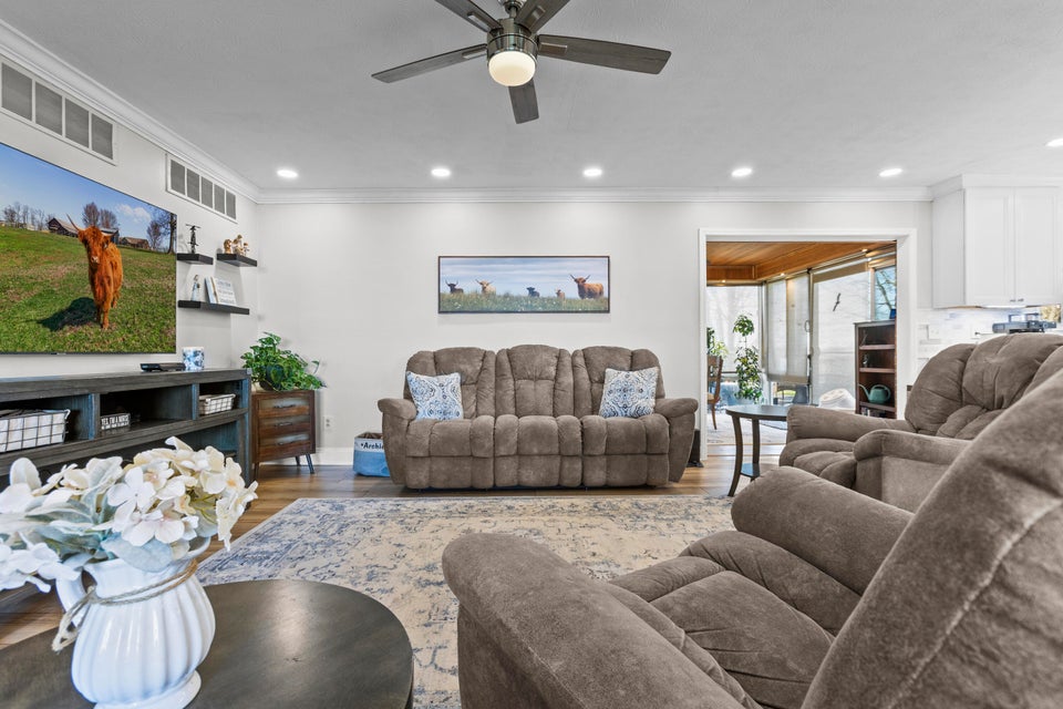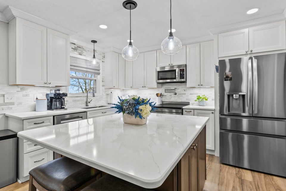 Welcome to this exceptional 5-level Split home, offering 4 Bedrooms and 3.5 Bathrooms. The open-concept main level sets the tone with a bright Living Room and Dining Area that flow seamlessly into the 18x18 Kitchen, featuring vaulted ceilings with skylights, a center island, and direct access to the deck—perfect for gatherings or quiet mornings outdoors.