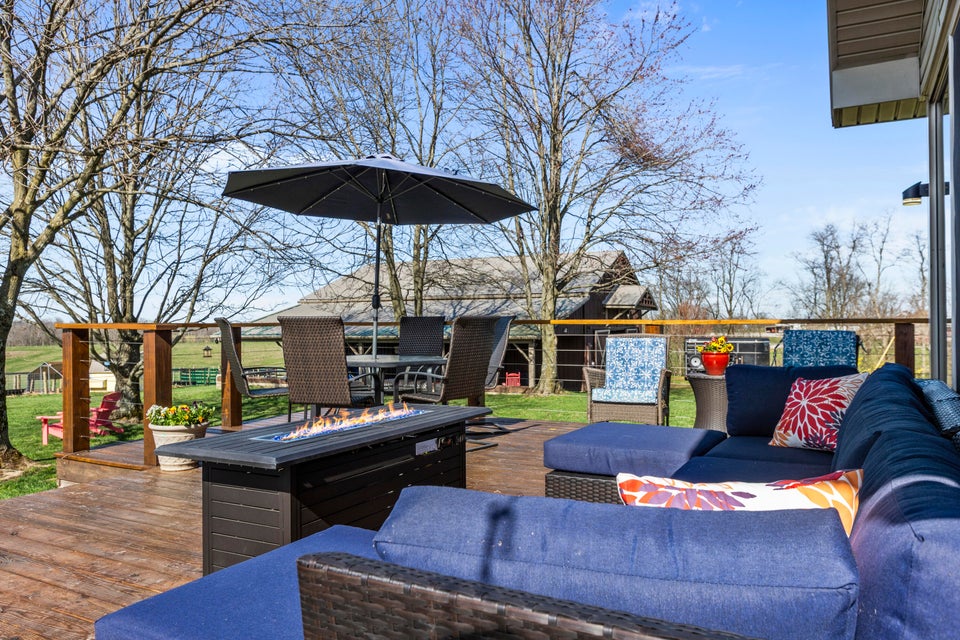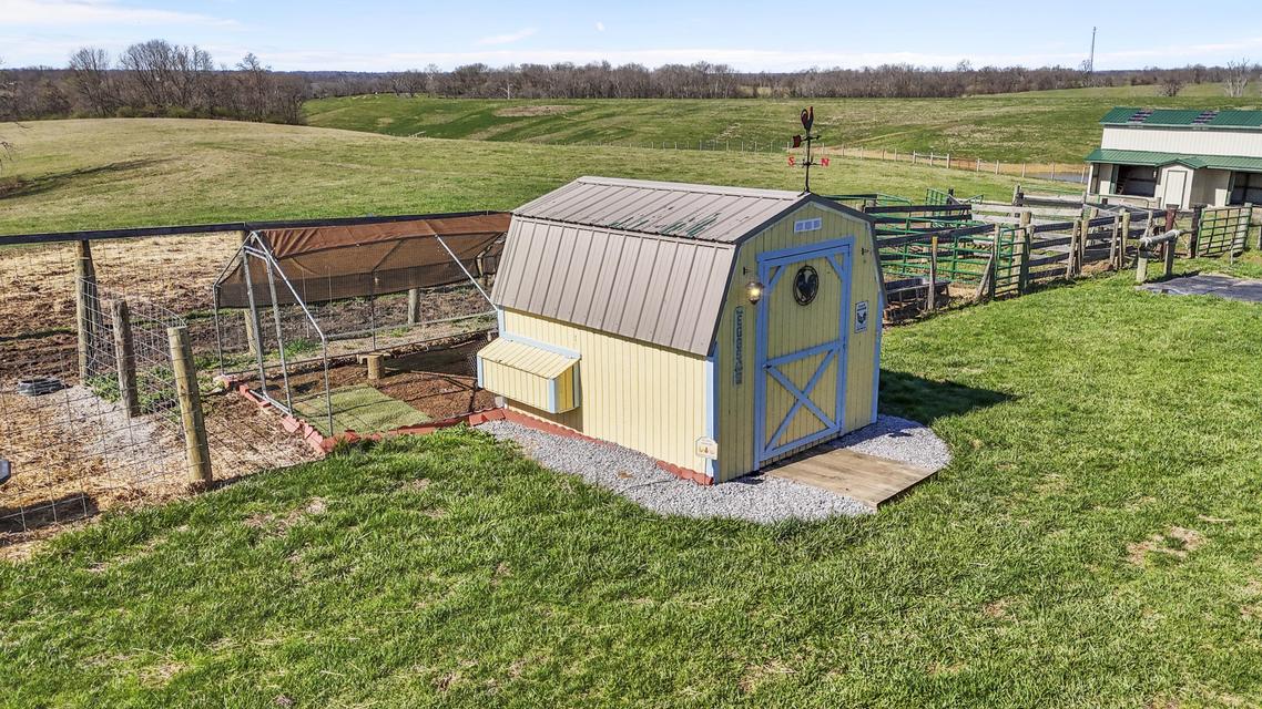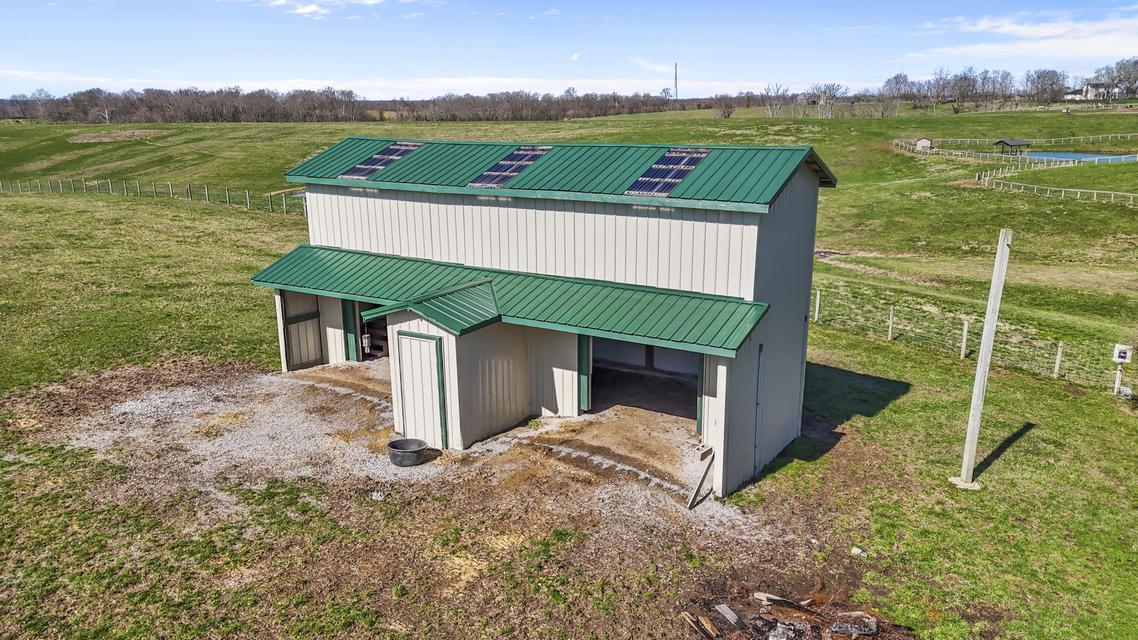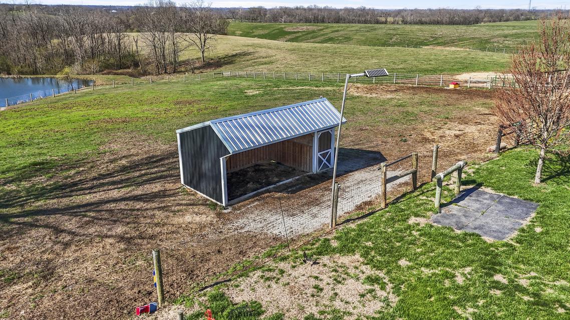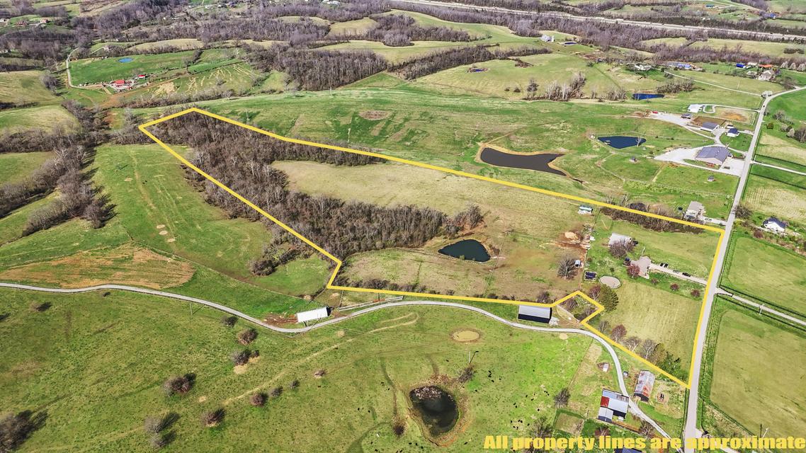 Experience the best of Kentucky living on this beautifully updated 32/- acre farm, perfect for horses, recreation, or hobby farming! This beautiful property features 12 acres of fenced pastures with horse-safe Finishline wire-free fencing, three pastures with automatic waterers (2024), 16 acres of wooded acreage rich with wildlife and morel mushrooms, and a stocked pond with bluegill, bass, and catfish. Farm improvements include a 30x50 barn with loft, electric and water, an additional animal shelter with hay loft and elevator, chicken coop with automatic door, run-in shed with tack room, round pen, reseeded pastures (2025), and a large organic garden. The modern home offers a fully remodeled kitchen (2025) with quartz countertops, large island, pull-out cabinetry, pot filler, LED lighting, and new appliances, plus engineered hardwood flooring, geothermal HVAC, updated bathrooms, laundry, sunroom, and a spacious Amish-built deck (2019). Enjoy a separate dining room, first-floor bedrooms, and a flowing living/dining area. The main bathroom boasts a walk-in shower with a luxury Grohe system and tiled flooring, while hardwood floors throughout the main living spaces add warmth. The attached two-car garage includes a durable epoxy floor. Conveniently located 4.5 miles from I-64, 10 minutes to shopping, and 30 minutes to Lexington--this property offers the rare combination of modern comfort, functional farm amenities, and serene country living, making it a true Kentucky dream home!