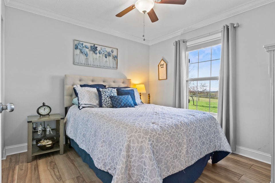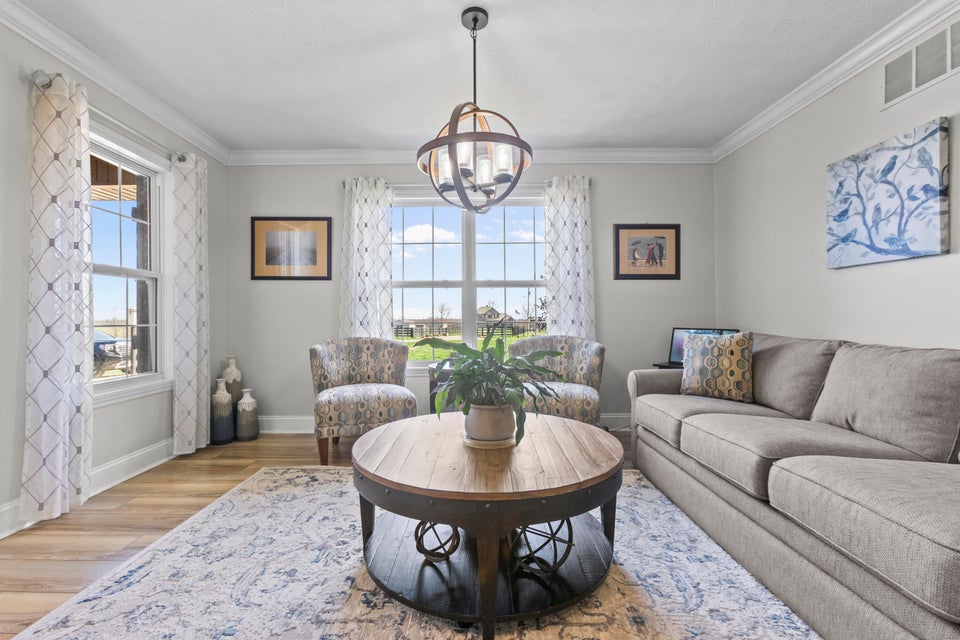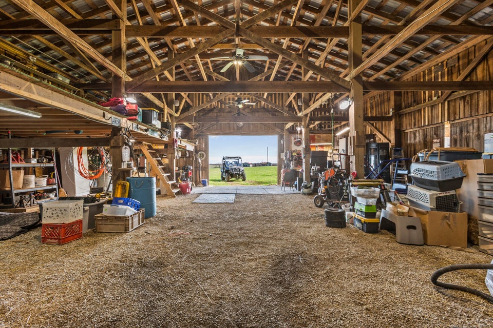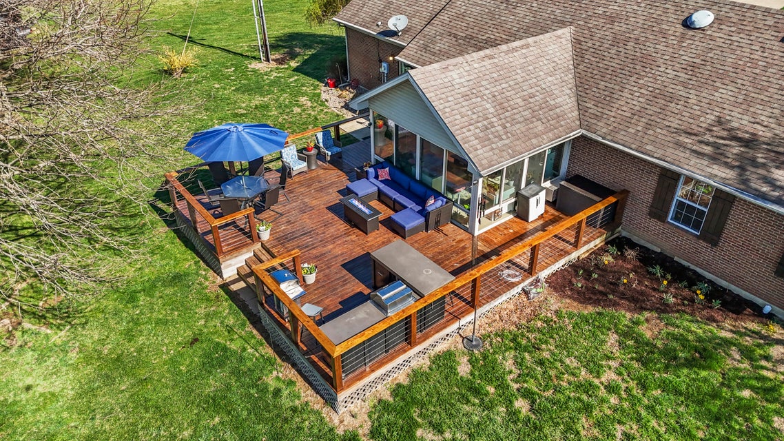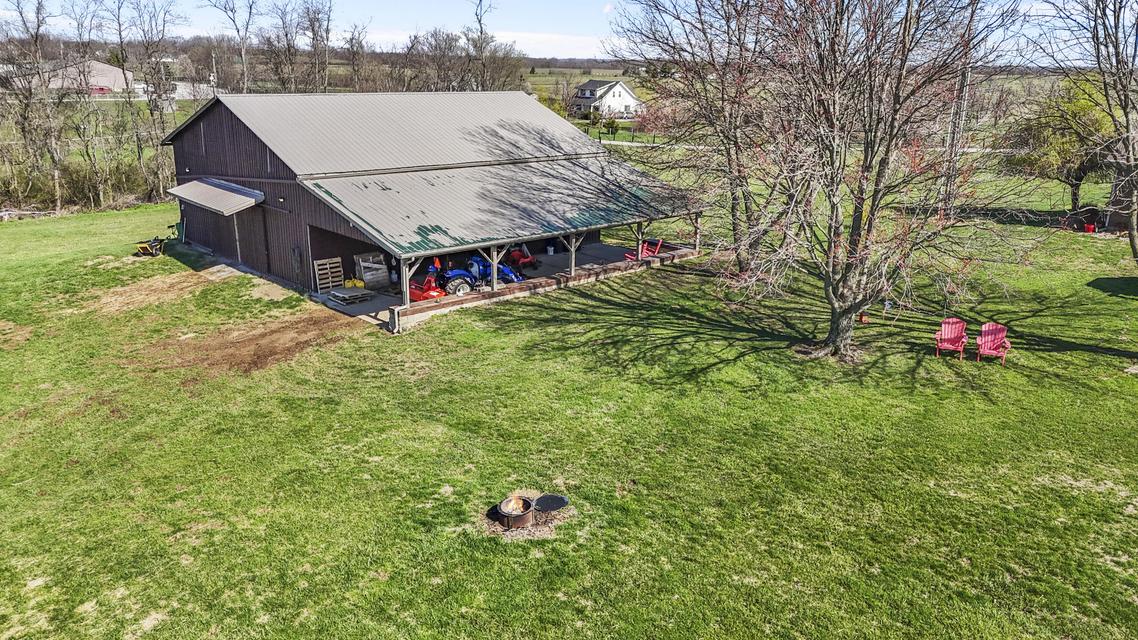 Experience the best of Kentucky living on this beautifully updated 32/- acre farm, perfect for horses, recreation, or hobby farming! This beautiful property features 12 acres of fenced pastures with horse-safe Finishline wire-free fencing, three pastures with automatic waterers (2024), 16 acres of wooded acreage rich with wildlife and morel mushrooms, and a stocked pond with bluegill, bass, and catfish. Farm improvements include a 30x50 barn with loft, electric and water, an additional animal shelter with hay loft and elevator, chicken coop with automatic door, run-in shed with tack room, round pen, reseeded pastures (2025), and a large organic garden. The modern home offers a fully remodeled kitchen (2025) with quartz countertops, large island, pull-out cabinetry, pot filler, LED lighting, and new appliances, plus engineered hardwood flooring, geothermal HVAC, updated bathrooms, laundry, sunroom, and a spacious Amish-built deck (2019). Enjoy a separate dining room, first-floor bedrooms, and a flowing living/dining area. The main bathroom boasts a walk-in shower with a luxury Grohe system and tiled flooring, while hardwood floors throughout the main living spaces add warmth. The attached two-car garage includes a durable epoxy floor. Conveniently located 4.5 miles from I-64, 10 minutes to shopping, and 30 minutes to Lexington--this property offers the rare combination of modern comfort, functional farm amenities, and serene country living, making it a true Kentucky dream home!