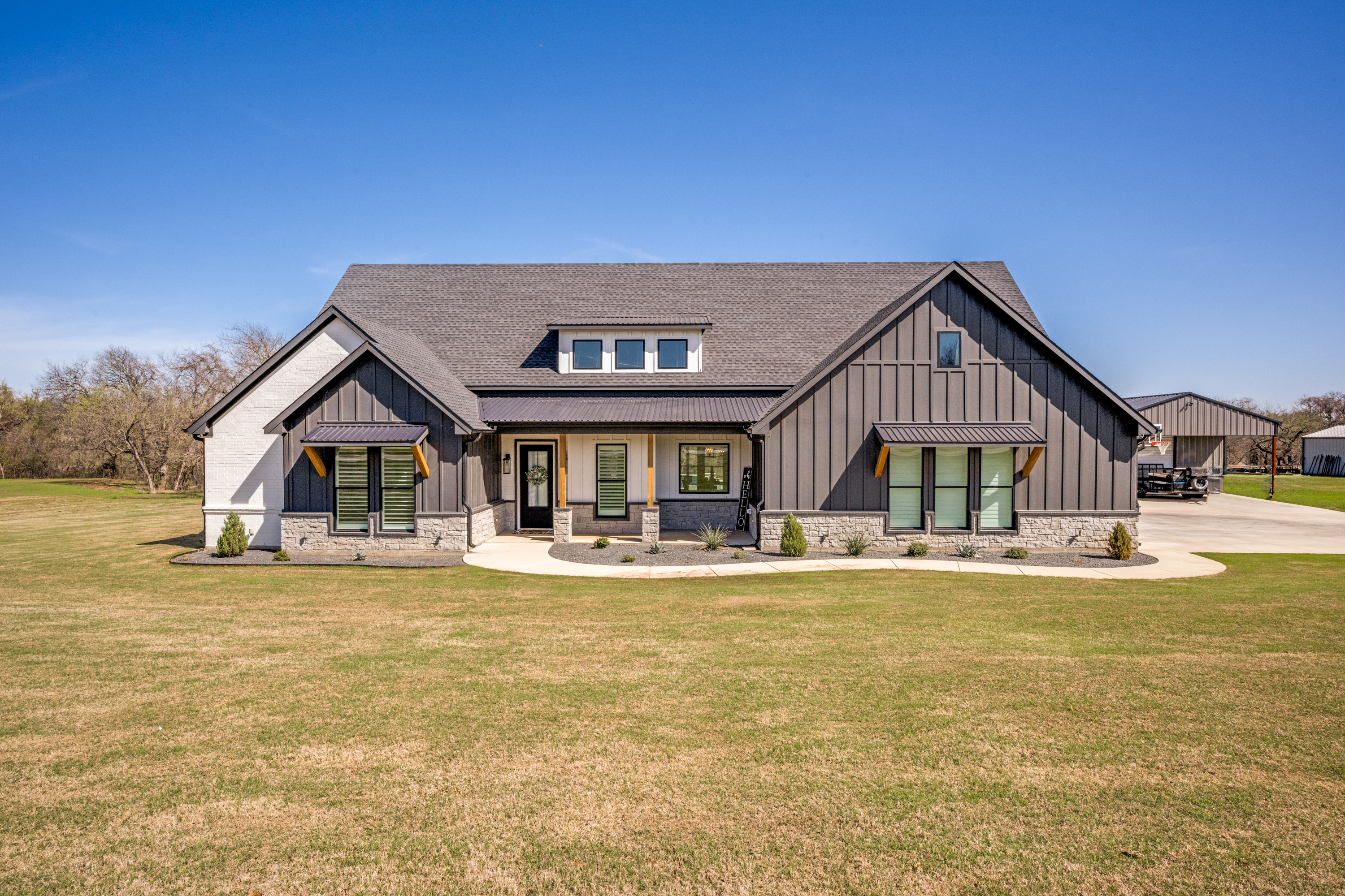 Beautiful 2.294 acres with a 3 bedroom, 3.1 baths, modern farmhouse in Walnut Grove Estates with NO HOA. This property offers peaceful country living with easy access to Metroplex. Only 5 minutes to Decatur Hwy 287. This spacious open concept home has oversized windows filling the rooms with lots of natural light. Designed for entertaining and everyday living.