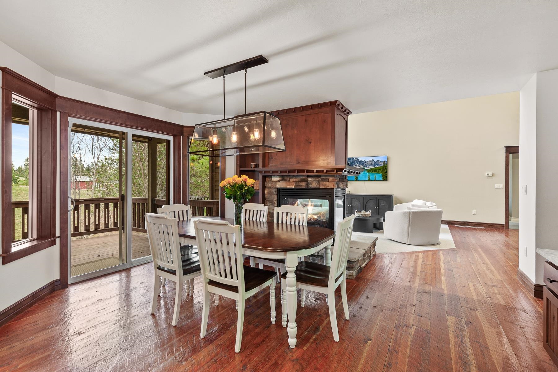 Beautifully upgraded 3-story Craftsman w/ panoramic views in desirable Five Mile area. Borders protected conservation land for natural views and privacy. Main level features cathedral ceilings, expansive windows, built-ins, and double-sided stone fireplace. Chef's kitchen w/marble countertops, custom cabinetry, updated stainless steel appliances, center island, and walk-in pantry. Multiple dining spaces, including formal dining room, eat-in kitchen, and covered patio. Main-floor primary suite with ensuite bath, walk-in shower, tub, double sinks, and walk-in closet. Laundry /mud room and oversized 3-car garage. Newer carpet throughout. 3 bedrooms upstairs, full bath, and large bonus Room. Daylight walkout basement w/gym room, 5th bedroom, full bath, family/rec room w/wet bar, Walk to nearby Five Mile Park. Top Mead Schools.
