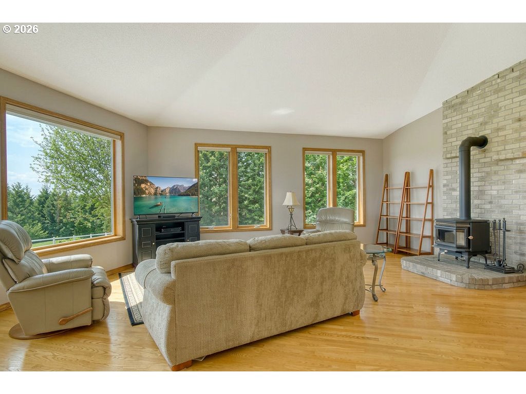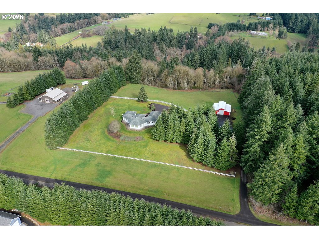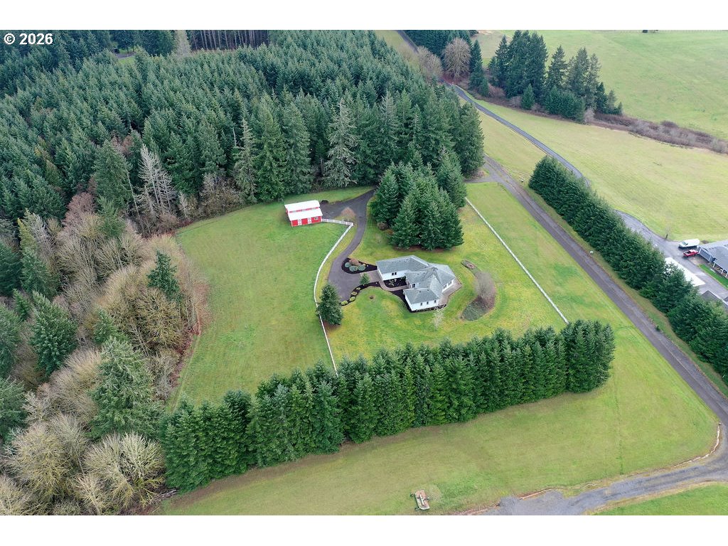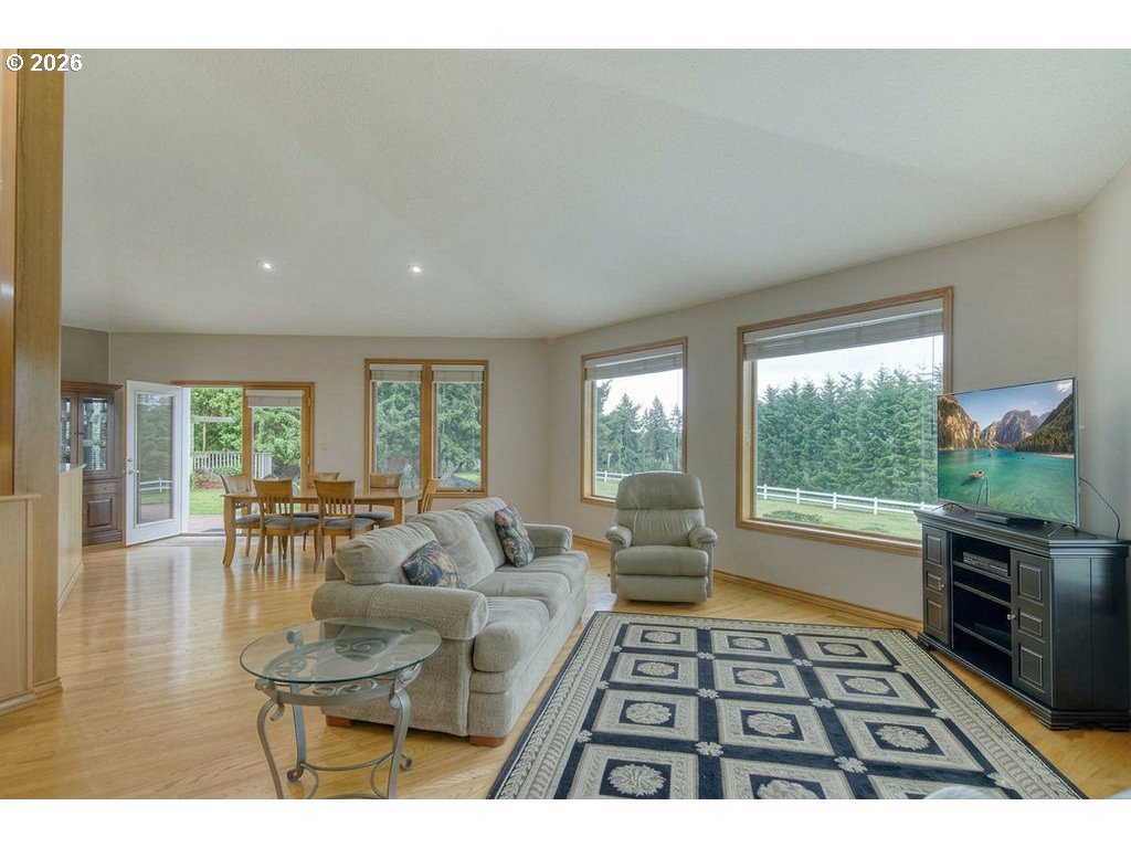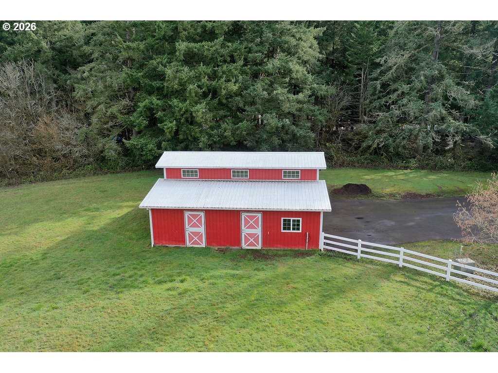 Beautifully kept one-level with an open, easy-flow layout—perfect for everyday living and effortless entertaining. The spacious primary suite includes a jetted tub, walk-in shower, and dual vanity. The kitchen flows into the great room and out to an aggregate concrete patio, creating great indoor-outdoor living space. The home also features central vacuum and a sprinkler system to maintain the landscaped yard. This fenced horse property includes a barn with two horse stalls, concrete flooring, and tall slide-up doors on both sides for convenient drive-through access. A great setup for one-level living with usable land, space for horses, or hobby farming.