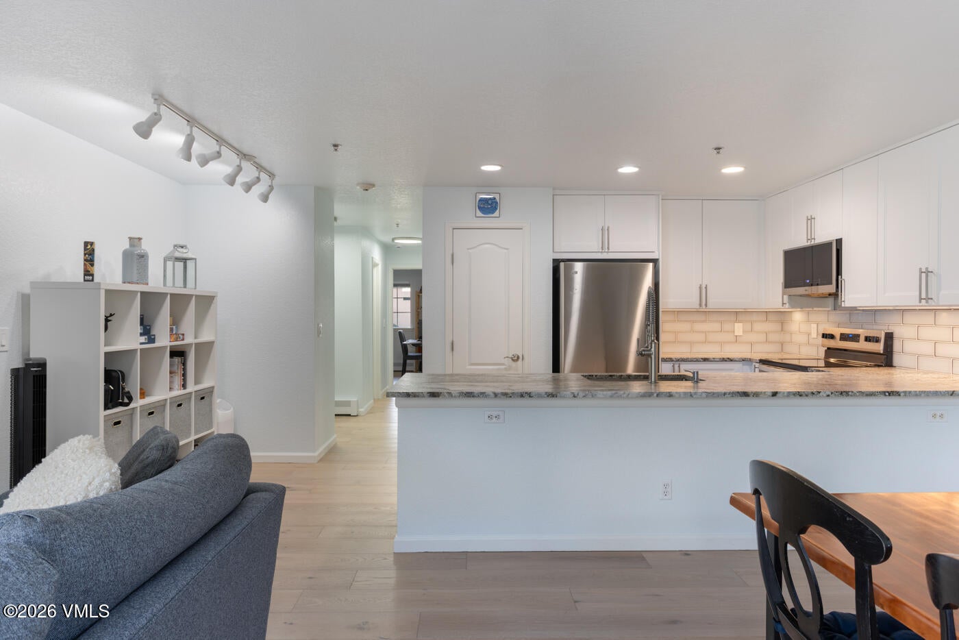 Newly renovated mountain view condo is located in the Town of Avon, the gateway to Beaver Creek Ski Resort just two miles south of town. An easy walk to the Westin Riverfront and the Avon Gondola. Owner has spared no expense in updating every room. Glass enclosed showers with subway tiles; new kitchen cabinets topped with leathered granite countertops; new oak plank flooring and so much more. Enjoy your view on the south facing outdoor deck. Avon Crossings offers an incredible location for fine dining and casual restaurants. Miles of bike and walking trails; Take up fly fishing on the Eagle River or enjoy rafting/kayaking and multiple golf courses. Nottingham Lake offers paddleboarding and evening concerts. Recreation Center and Library around the corner. Year-round all season fun.