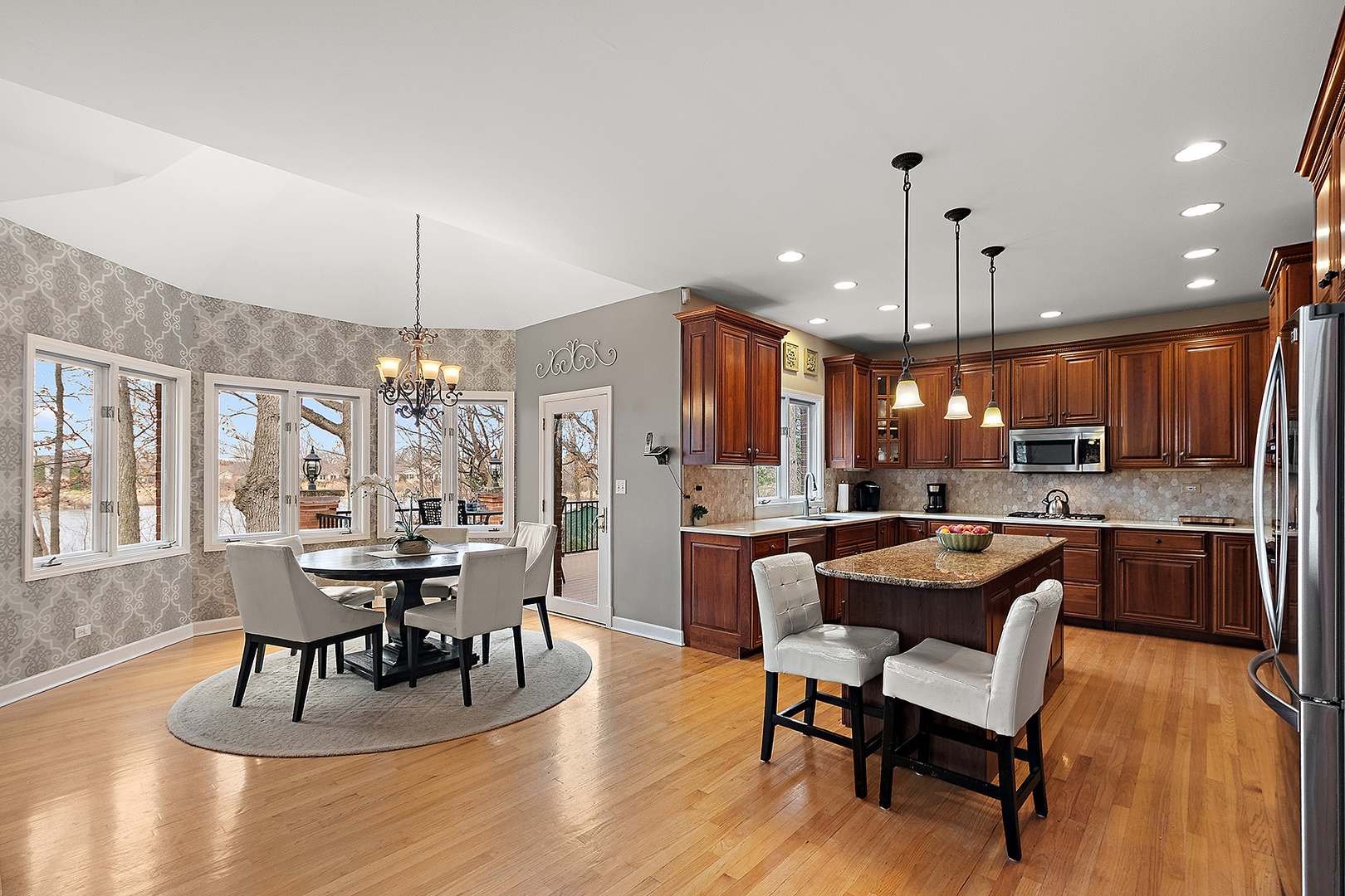 Shhh! This stunning 2-story makes a striking first impression with its brick front, high roofline filled with peaks, and beautifully manicured landscaping. But wait, she's got a secret. A covered front porch welcomes you into formal living and dining spaces designed for guests, while the exceptional floor plan showcases true craftsmanship with wainscoting, decorative ceilings, fireplace and high-end finishes throughout. Just off the kitchen, a versatile bonus room offers the flexibility for a playroom, office, or even a 6th bedroom. The full, finished walkout basement expands your living space with a recreation room, 2nd fireplace, kitchenette, workout room, full bathroom and additional flex space. Easily converts to related living opportunity, if needed. Yes, she checks all the boxes, but did you get a glimpse out back≠ From the curb, you would never imagine the private retreat that unfolds. Oversized windows frame peaceful views of serene, towering trees swaying gently, creating a calming, almost meditative atmosphere. A tranquil pond stretches across the entire backyard, reflecting the sky and surrounding greenery, setting the tone for a truly zen-like escape. Upper level deck and lower level paver patio invite quiet mornings, relaxed evenings, and additional entertaining option, while the stone fire pit offers the perfect place to unwind under the sounds of nature, from soft breezes to birdsong all around you. It feels secluded and completely removed from the everyday. And when your spirit is restored, grab the keys and exit your 3-car, side load garage. Note, the high ceilings could accommodate lifts or be used as additional storage option. You're only a few blocks to all of the charm of downtown Lemont with its shopping, dining, and amenities. Easy work commute as well with nearby METRA, I-55 and I-355. Business in the front, party in the back!