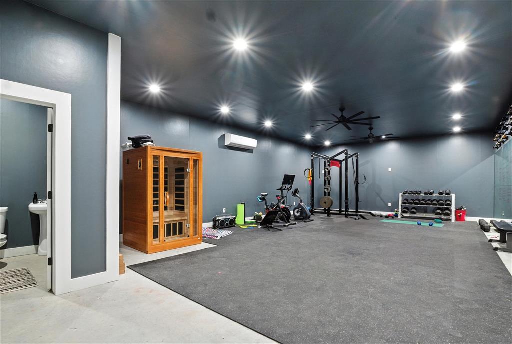 This beautifully updated home perfectly combines luxury, comfort, and functionality. Offering 5 bedrooms, 3 full baths, and 2 half baths, it's designed for both everyday living and entertaining. The thoughtfully designed interior includes a modern kitchen with breakfast nook and built-in seating, a formal dining room, a spacious laundry room with abundant storage, and a versatile rec room/man cave complete with its own half bath. Step outside to enjoy more than 1,000 sq. ft. of covered patio space with a built-in cooking area—perfect for hosting gatherings or relaxing in the serene setting. The 2.2 acre property is beautifully landscaped and features a fully stocked pond for peaceful enjoyment. An impressive 2,800 sq. ft. shop adds incredible versatility, offering a large loft for storage and an 800 sq. ft. heated and cooled workout room. With its modern updates, retreat-like atmosphere, and exceptional amenities, this property truly offers the best of both comfort and lifestyle. Don't forget to ask about the secret room!