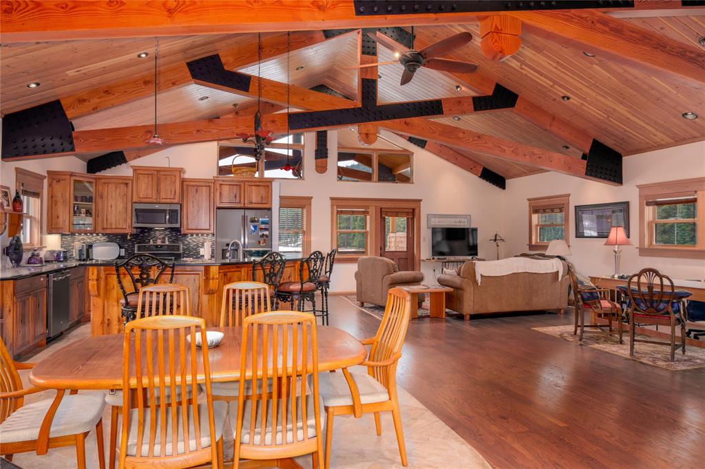 Highly sought after Bobtail Meadow Rd area with over 16 acres and the back side borders forest service land. Bull creek runs across the property and meanders through the trees. This shop house is one of a kind 28 X 48 2400 sq ft shop. Upstairs 1344 sq ft you will find a spacious 1 bedroom plus a murphys bed for company. As you enter the upstairs living quarters you will see the pride in ownership with a wide open floor plan and tongue and groove ceiling along with rustic beams. The kitchen Island adds style while entertaining your guest. This place comes fully furnished making it a turn key property. The shop is very useful with a lot of extra perks for the car enthusiast comes with a car and man lift and theres plenty of room to store equipment, boat, Rv. The property has plenty of room for gardens, animals it is flat and useable while being surrounded by trees and mountains. If you are looking for acreage and a peaceful lifestyle this may be it. Schedule your tour today!