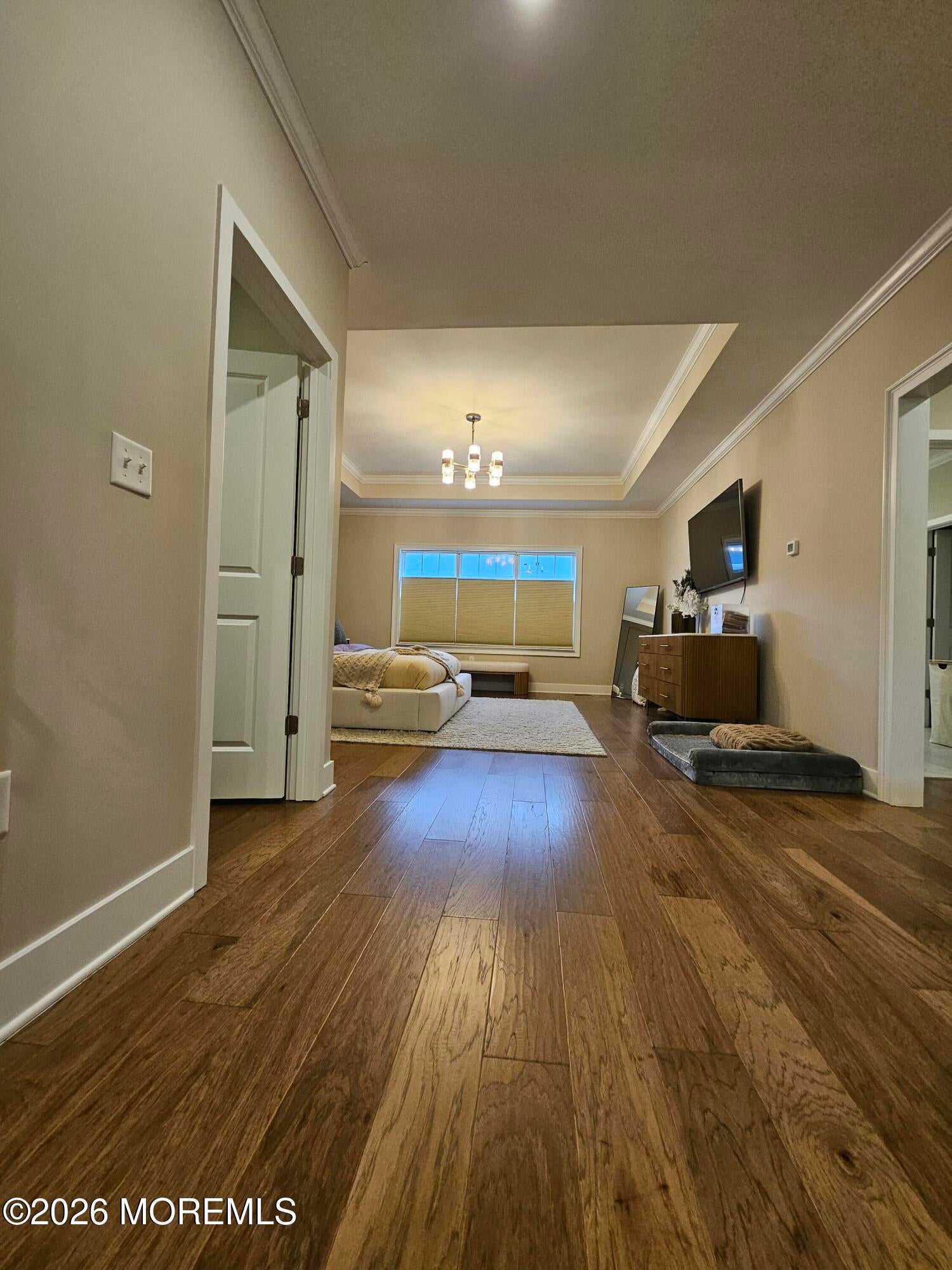 Move-In Ready Luxury Upgraded Home in Parc at Marlboro. This stunning 3 BR, 2.5 Bath townhome offers immediate occupancy and premium upgrades that go far beyond the builder standard. This home features beautiful wood flooring throughout, absolutely no carpet anywhere. Grown moldings flow seamlessly across the open-concept living spaces and up to the second floor. An airy layout featuring 9ft ceilings w/recessed lighting. An entertainers dream with an expansive quartz island, stainless steel appliance package, and a designer-tiled backsplash. The expansive suite boasts a tray ceiling, double walk-in closets, and a private flex space perfect for a home office, vanity, or exercise area. A spacious 2nd-floor loft provides an ideal area for a reading nook or secondary lounge. A large, clean basement with high 9ft ceilings. Enjoy a private deck for outdoor relaxation and resort-style community amenities, including a clubhouse, in-ground pool, fitness center, and playground. This home is perfectly positioned with quick access to Route 9, 18, and Marlboros A-rated school system. Everything is done just move in and unpack.