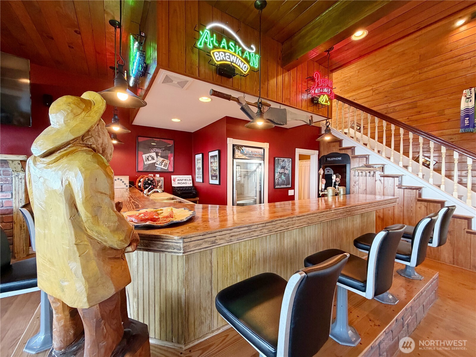 Experience unparalleled island living in this expansive two-story home on Hat Island, boasting breathtaking panoramic views of Saratoga Passage, Olympic and Cascade Mountains, Mount Baker and surrounding islands from almost every room in the home. Enjoy privacy and serene waterfront-view living, perfect for a coastal retreat or full-time residence. This beautiful custom built home is ready for entertaining, with large deck, firepit, lawn games, BBQ and more. Large open floor plan, custom kitchen, dining room and full built in bar that seats up to 8 (you must see!). Walk in pantry and room for wine cellar. Upstairs has two master suites each with decks and full en suite bathrooms, and additional room for sleeping or den. Detached garage has loft for extra beds or storage. Separate beach shed can hold golf cart or lawn mower and tools. Private 48 passenger foot ferry or your own boat to this private island paradise, with 9-hole Golf Course, Private Marina, Tennis Court, Volunteer Garden, summer beach concert series, and more! This rare opportunity combines tranquil island life with ample functional space, making it a must-see for those seeking a unique PNW coastal retreat.