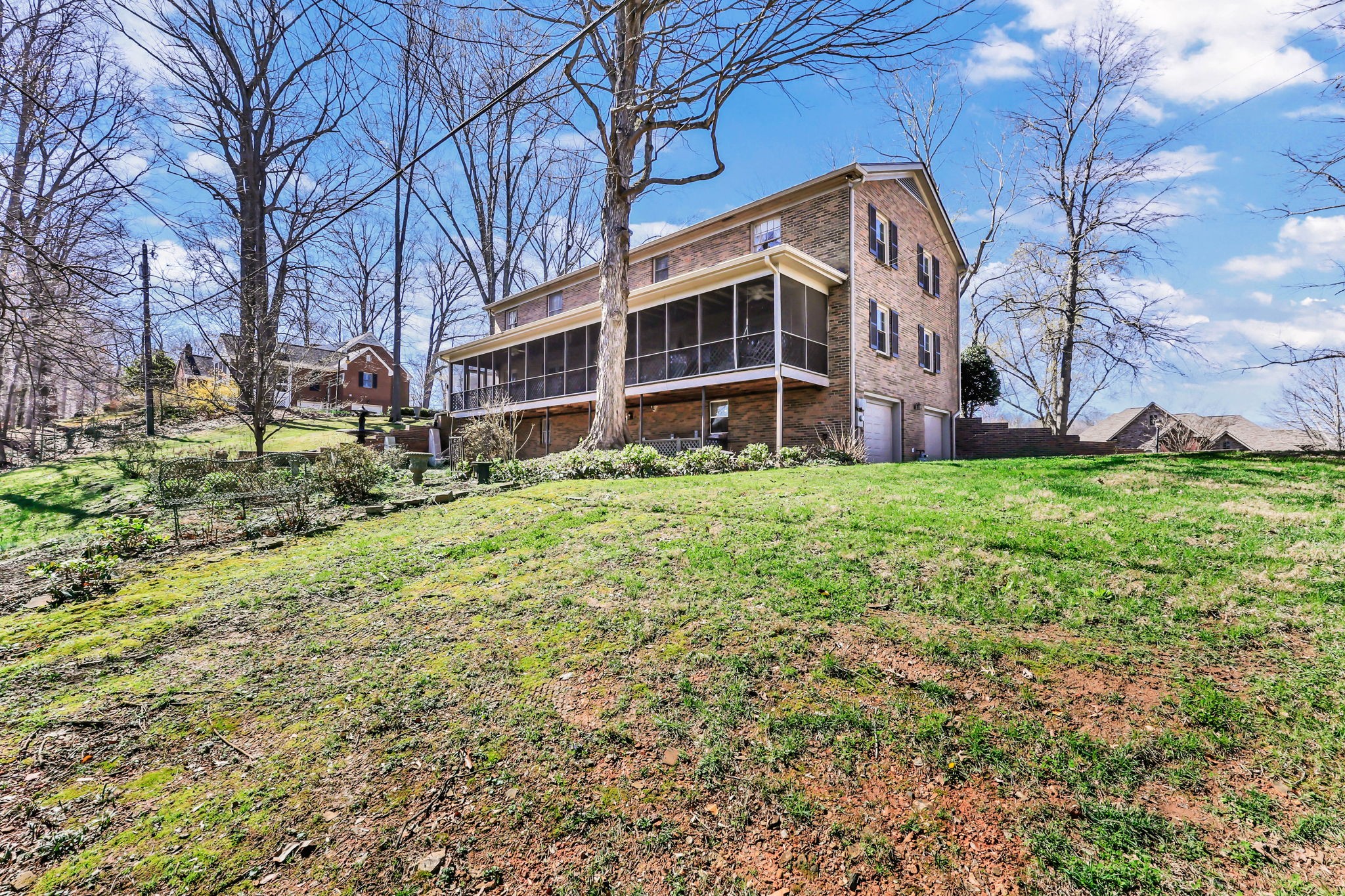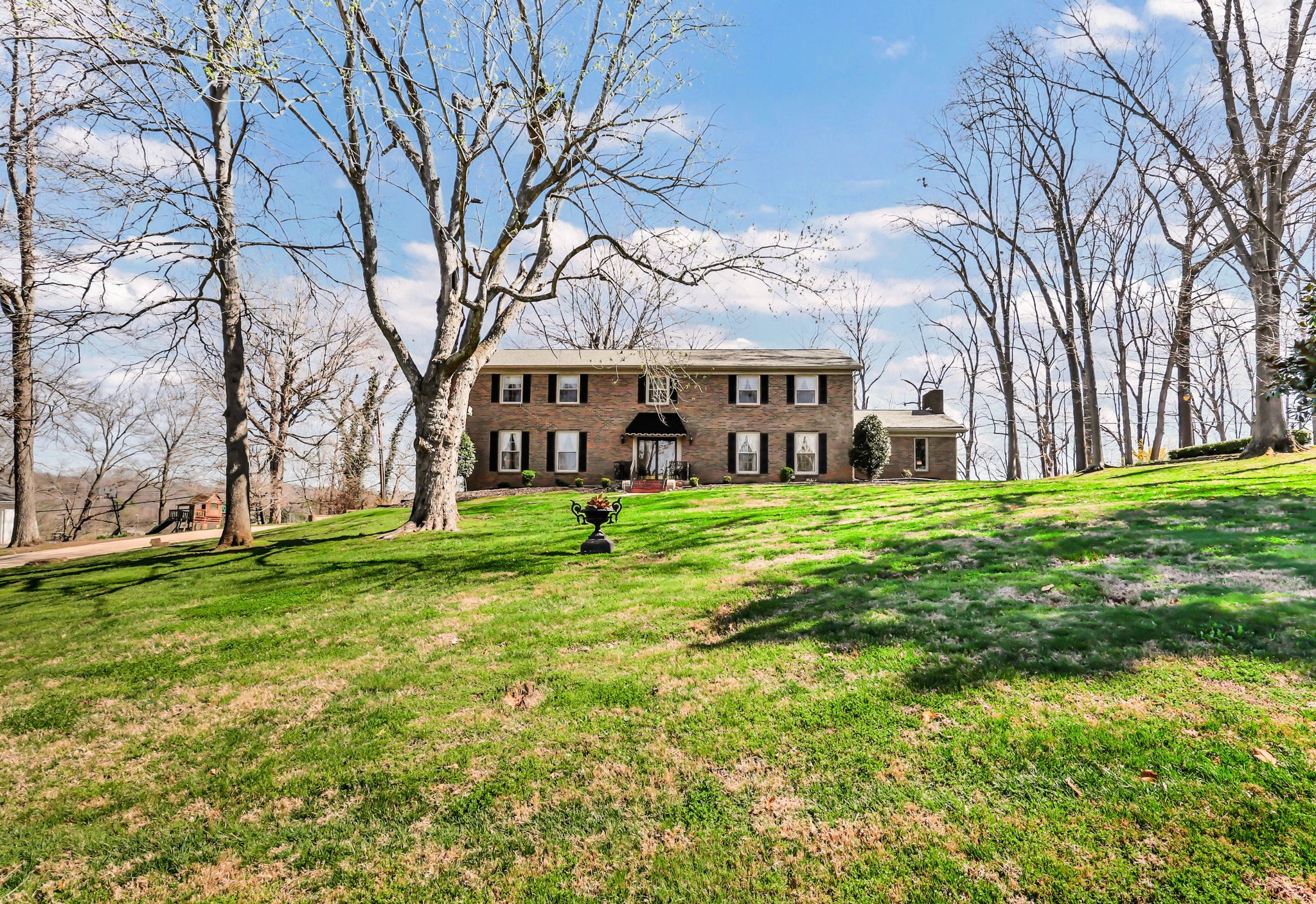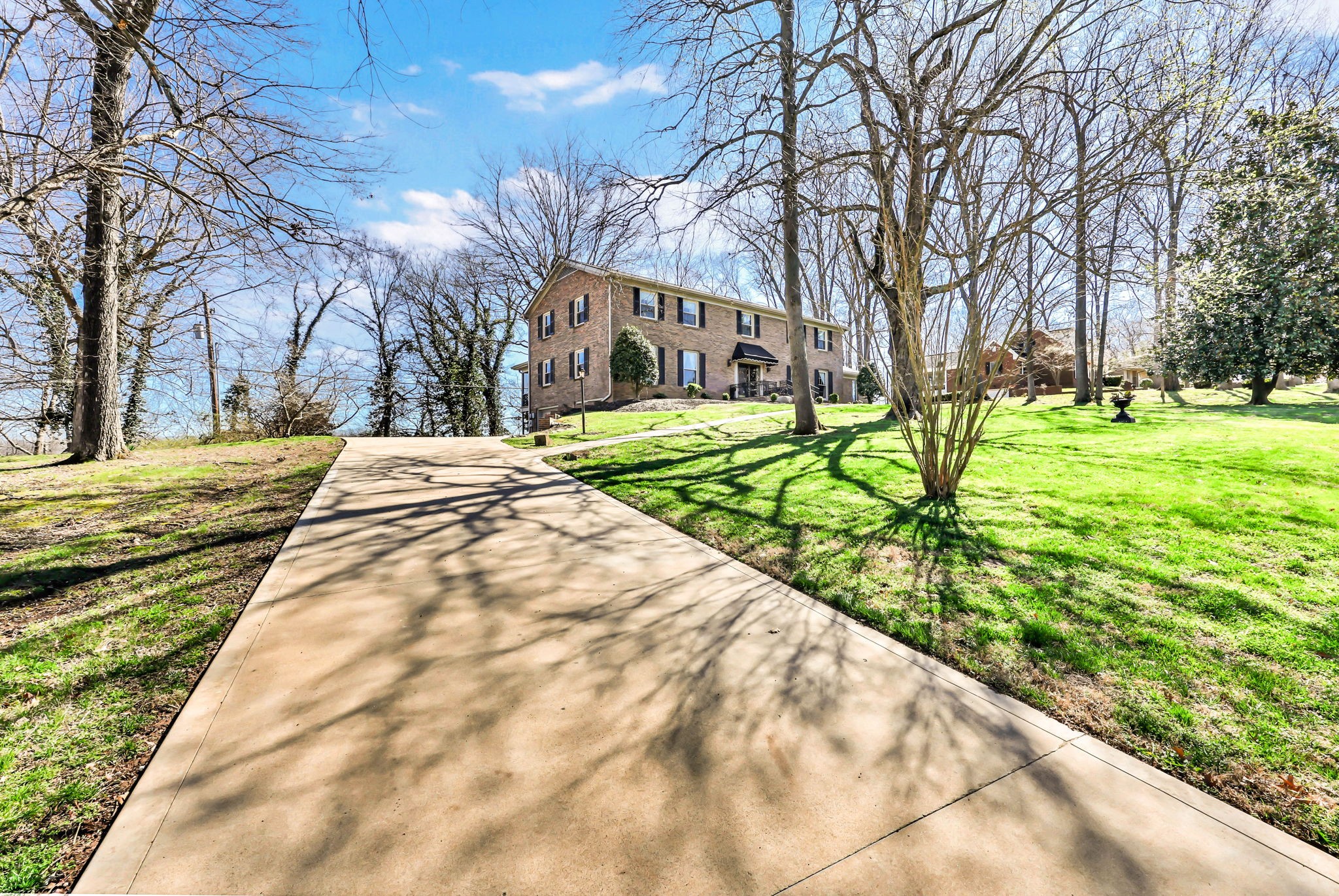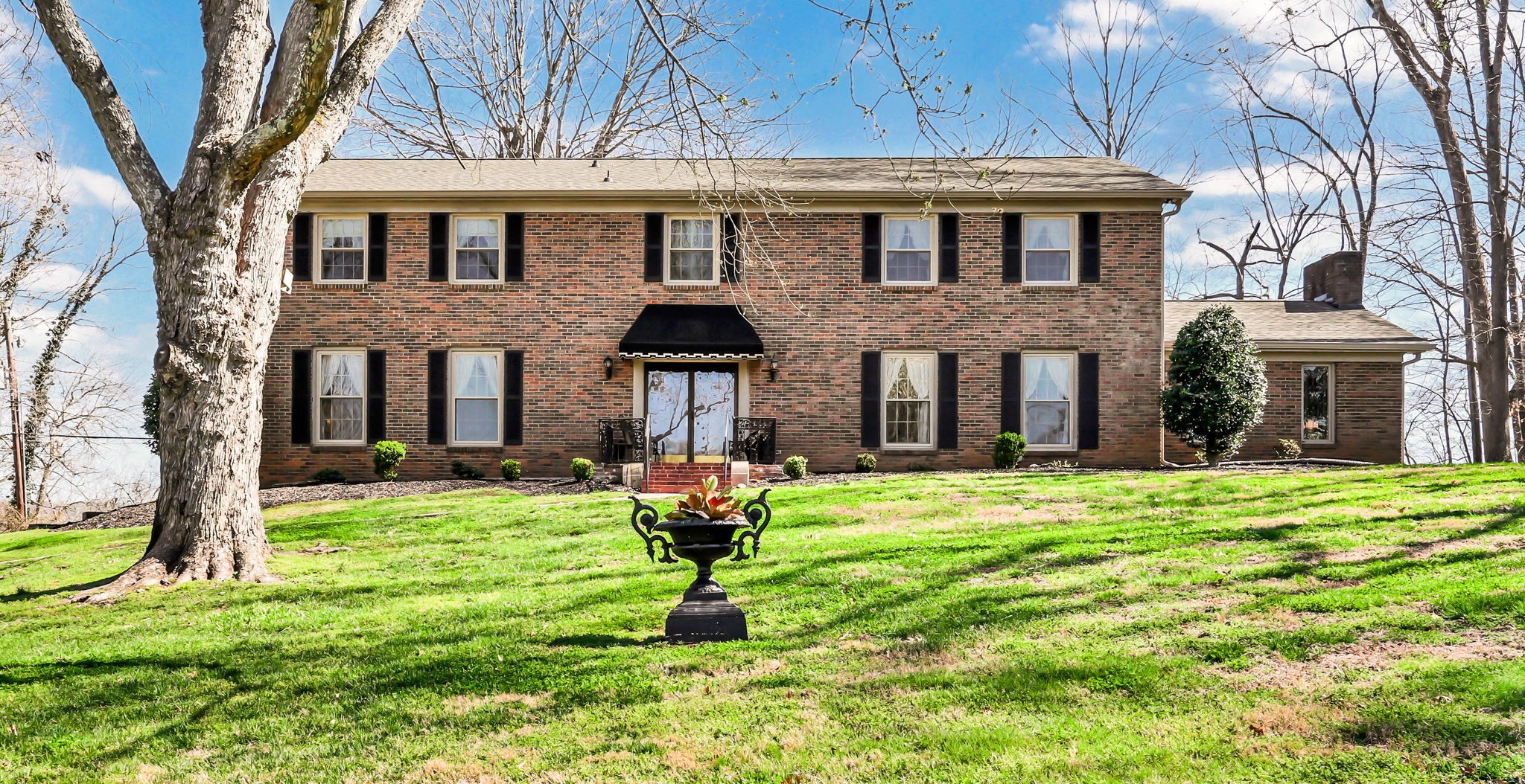 Proudly owned by the same family since 1970, this well-cared-for home is tucked away on a quiet cul-de-sac street in the Bell Meade subdivision and enjoys views of one of Clarksville's finest golf courses. Situated on a 1.2-acre lot and offering over 5,000 sq. ft. of living space, it features a main-level primary suite, with four additional bedrooms upstairs connected by a Jack & Jill bath. Formal living and dining rooms, along with a cozy den and library, provide space for both gathering and everyday comfort. The finished basement includes an attached 2-car garage. The backyard overlooks the Red River, creating a peaceful nature retreat and a rare combination of privacy and scenic beauty, best enjoyed from the relaxing back porch. This home is sold As Is.