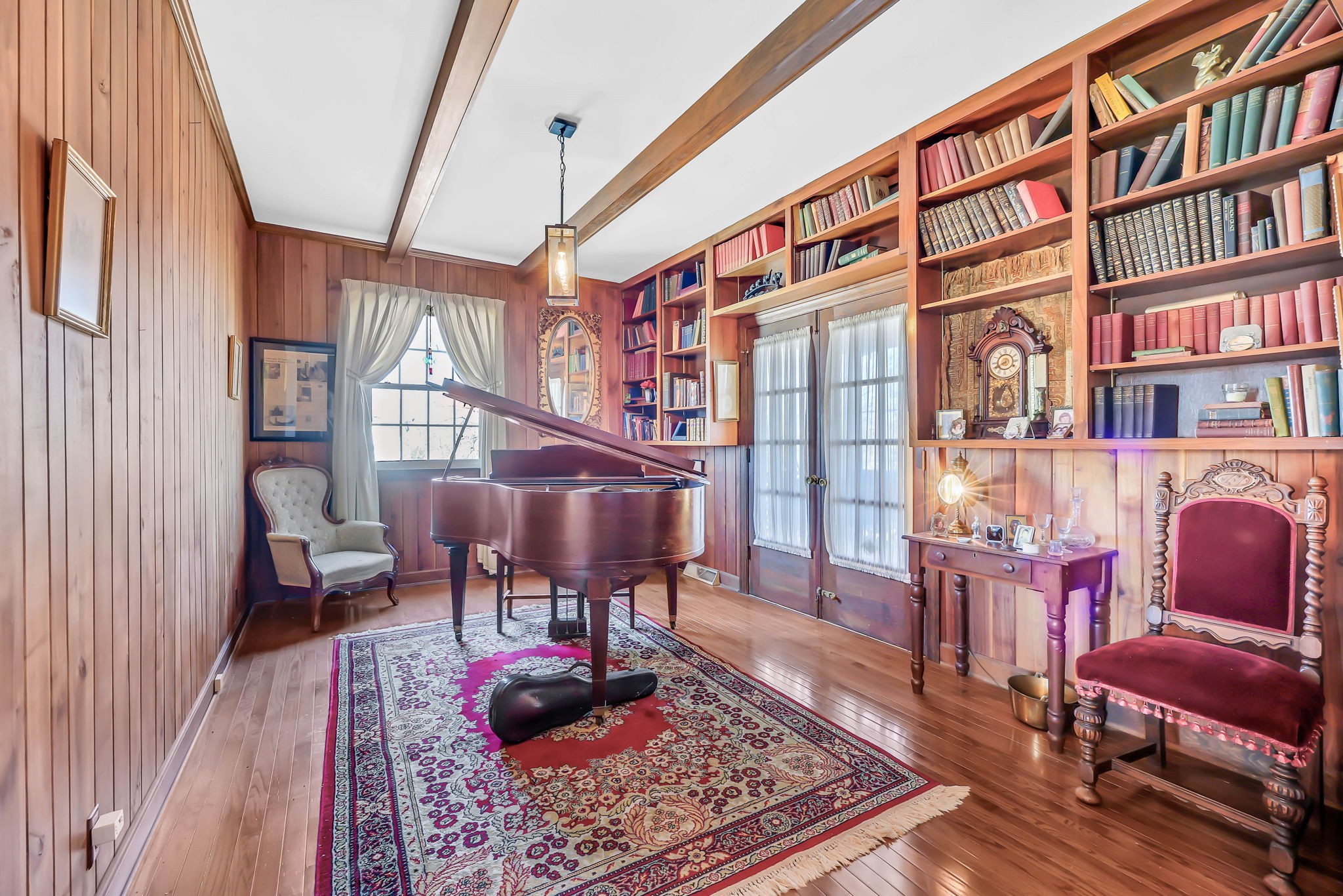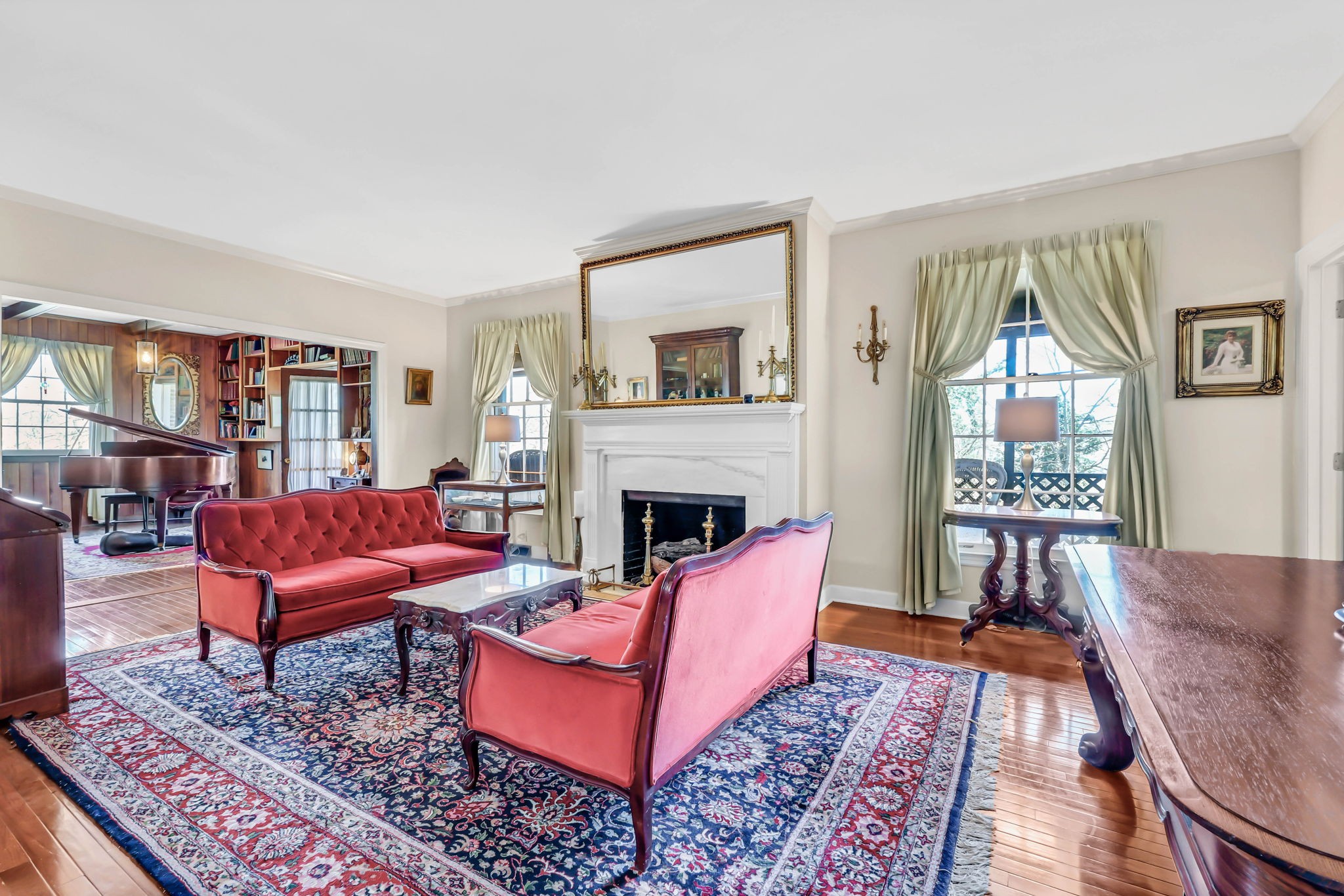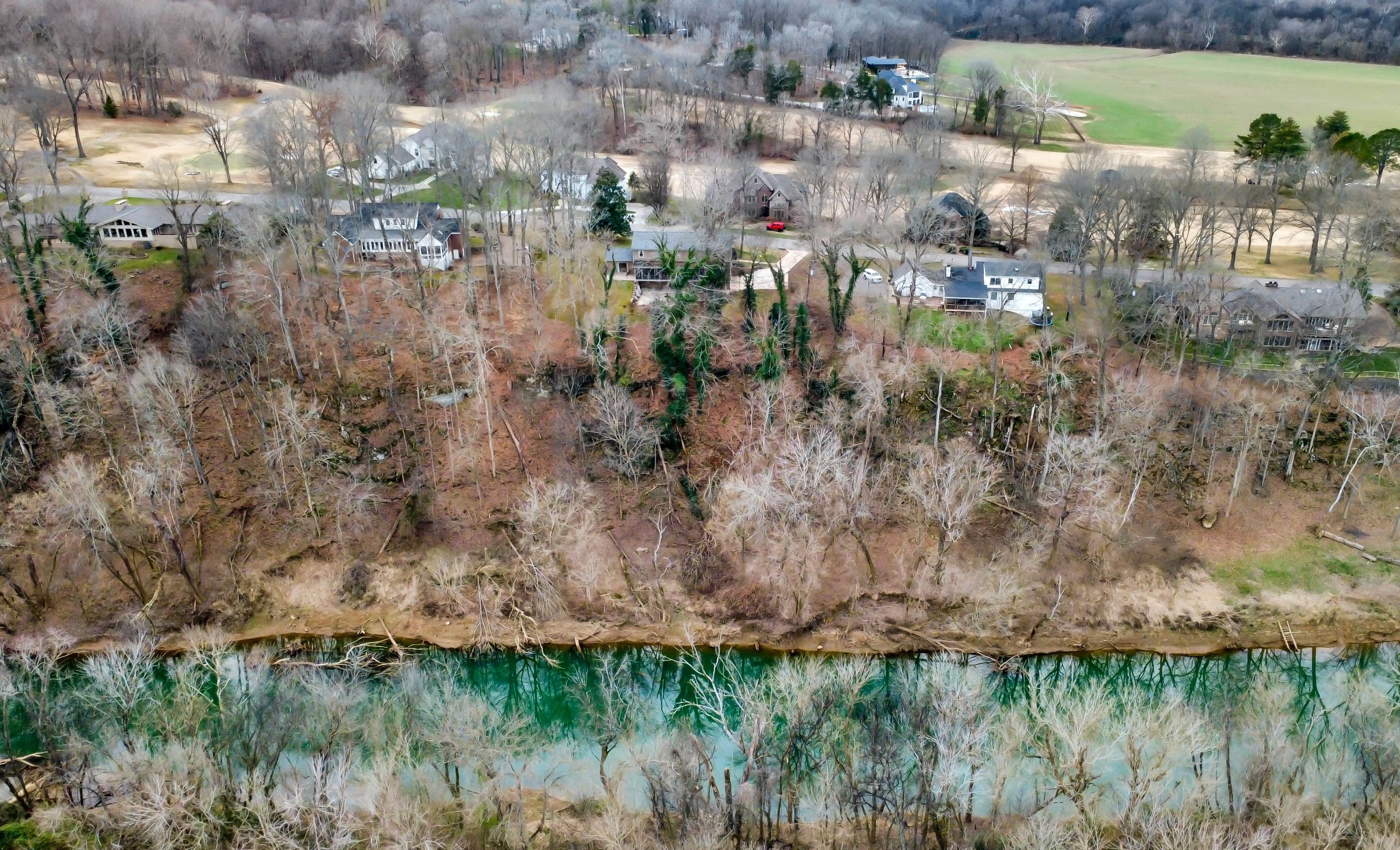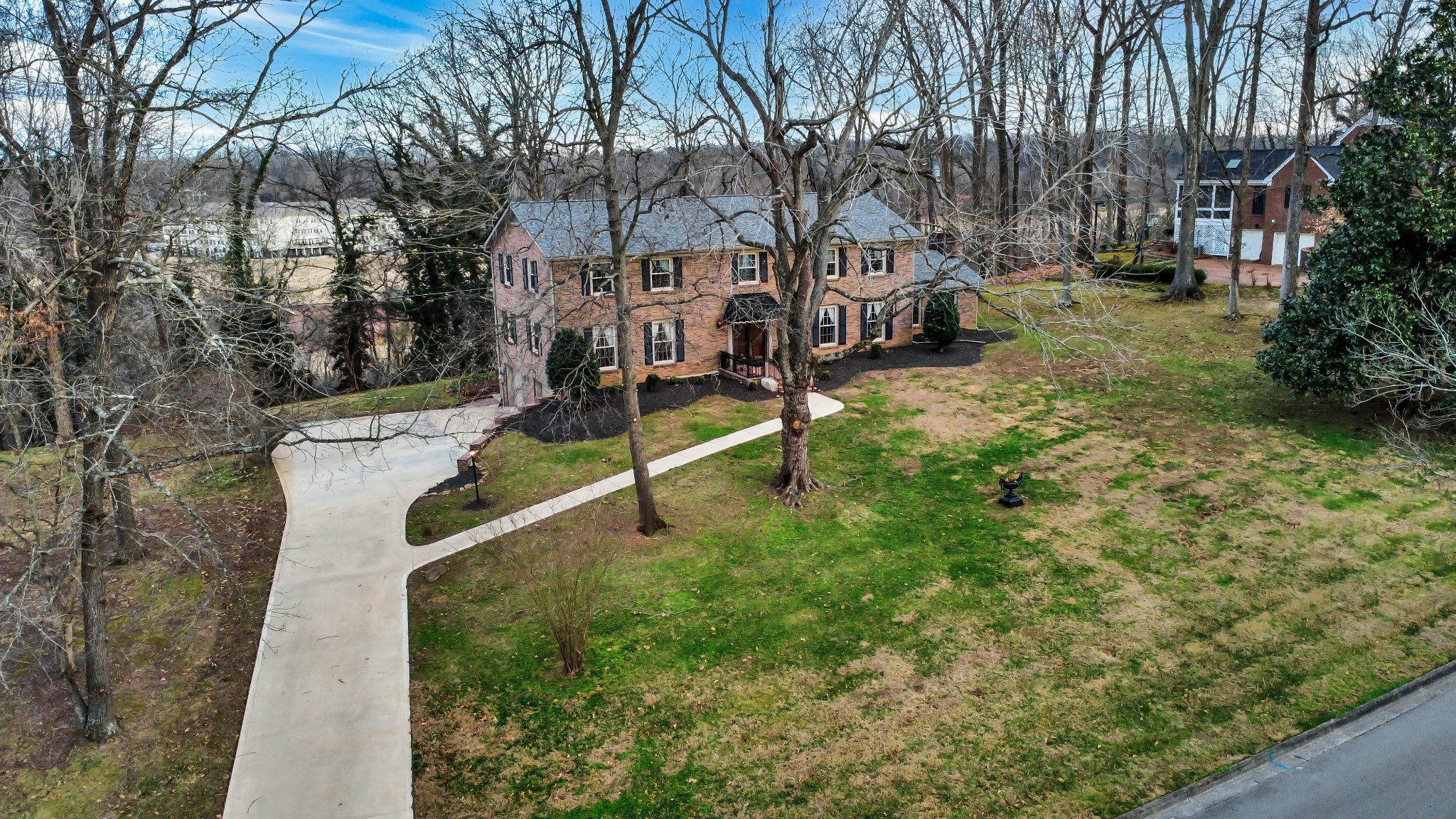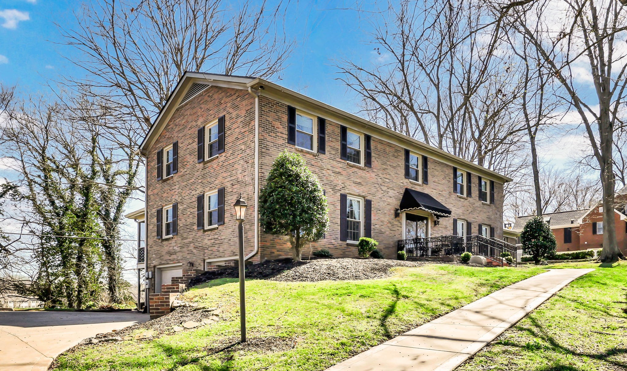 Proudly owned by the same family since 1970, this well-cared-for home is tucked away on a quiet cul-de-sac street in the Bell Meade subdivision and enjoys views of one of Clarksville's finest golf courses. Situated on a 1.2-acre lot and offering over 5,000 sq. ft. of living space, it features a main-level primary suite, with four additional bedrooms upstairs connected by a Jack & Jill bath. Formal living and dining rooms, along with a cozy den and library, provide space for both gathering and everyday comfort. The finished basement includes an attached 2-car garage. The backyard overlooks the Red River, creating a peaceful nature retreat and a rare combination of privacy and scenic beauty, best enjoyed from the relaxing back porch. This home is sold As Is.