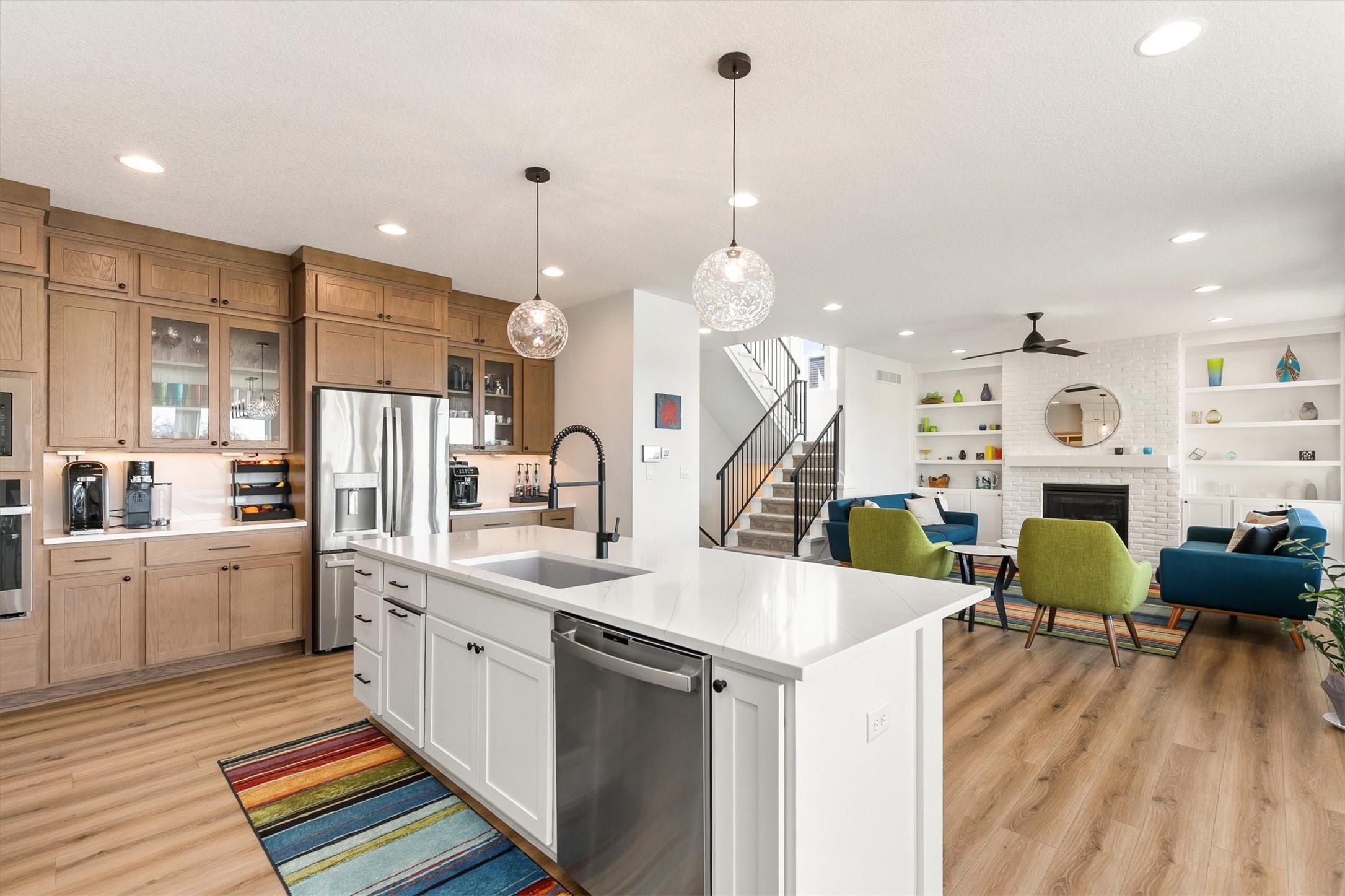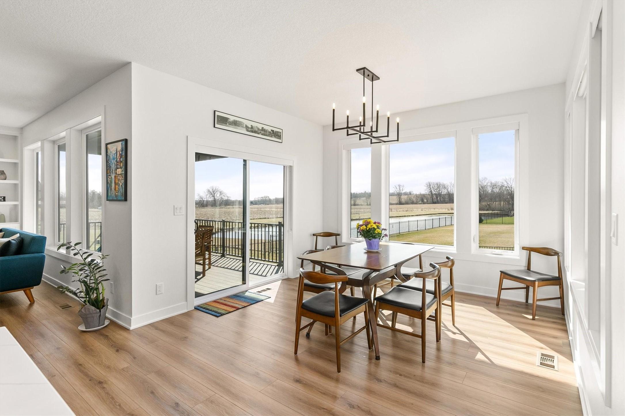 Better than new, tucked away in the Westport neighborhood, this home offers a quiet setting with pond views while still being close to the amenities of WDM & Waukee. South facing windows fill the home with natural daylight. Beautiful kitchen cabinetry, large island, gas stove, under cabinet lighting, hidden outlets, & huge walk-in pantry.