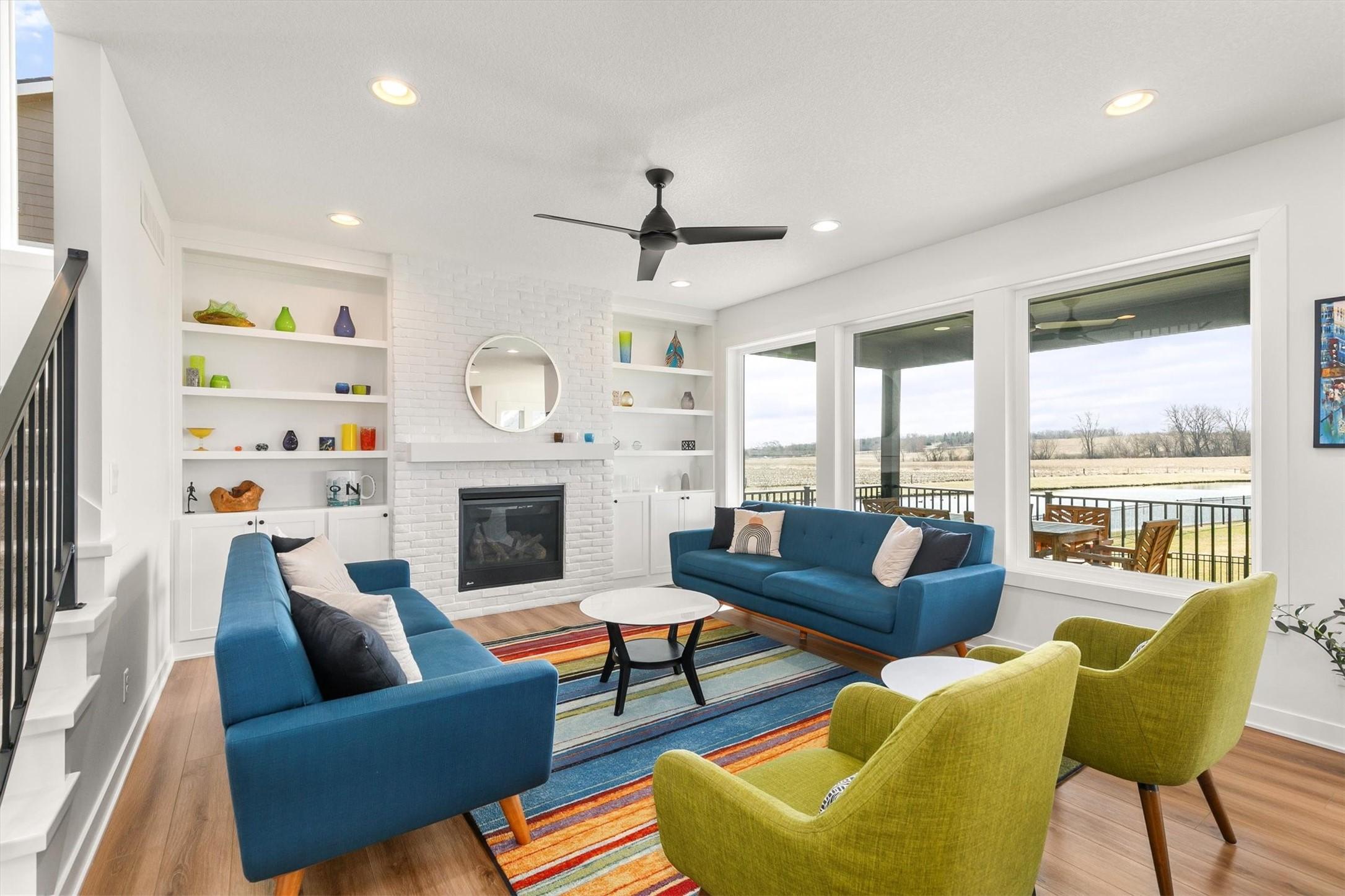 Better than new, tucked away in the Westport neighborhood, this home offers a quiet setting with pond views while still being close to the amenities of WDM & Waukee. South facing windows fill the home with natural daylight. Beautiful kitchen cabinetry, large island, gas stove, under cabinet lighting, hidden outlets, & huge walk-in pantry. Large mudroom w/lockers & bench plus a huge coat closet add everyday functionality. Fireplaces w/built-ins on both the main & lower levels & a tucked away main floor office create great living spaces. Primary suite includes a tile shower, soaking tub, water closet, & large walk-in closet w/custom shelving & connects to the laundry room. Bdrms 2 & 3 share a split bath w/individual vanities. Bdrm 4 has ensuite. The finished LL offers large windows, walk up bar, 5th bdrm & bath plus storage. HVAC, heated garage, irrigation, security system, and a covered composite deck overlooking the fenced yard and pond. Waukee Schools.