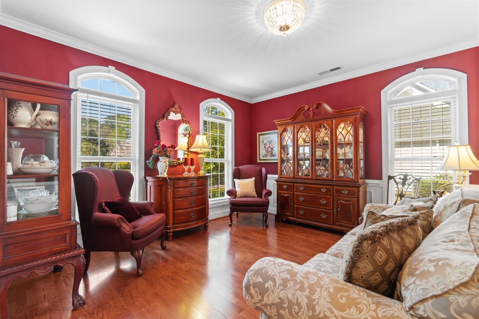 Tucked inside the gated community of Prestwick, this meticulously maintained 5-bedroom, 4.5-bath home offers the kind of space, setting, and lifestyle that's hard to find all in one place. Set on a large golf course lot with tranquil pond views, it's the kind of home where mornings feel peaceful and evenings are best spent watching the sun settle over the fairway. Step inside and you're welcomed by soaring vaulted ceilings and a great room that feels both open and inviting. The fireplace creates a natural gathering space, and the layout flows effortlessly out to the patio---perfect for entertaining or simply enjoying the view. A formal dining room adds just the right touch for hosting holidays or intimate dinners. Upstairs, the primary suite feels like a true retreat. Featuring a tray ceiling, a private sitting area, and two spacious walk-in closets, it's designed for comfort and relaxation. The en-suite bath offers dual sinks, a garden tub, and a separate walk-in shower---your own space to unwind at the end of the day. Out back, the screened-in porch and extended patio make it easy to enjoy outdoor living year-round, all while overlooking the beautifully maintained course and water. Every detail of this home reflects meticulous care and pride of ownership. Living in Prestwick means more than just a beautiful home---it's a lifestyle. The community offers top-tier amenities, including an Olympic-size pool, a tennis stadium, pickleball courts, a clubhouse, and of course, the renowned Prestwick golf course designed by Pete Dye. This is more than a place to live---it's where everyday life feels elevated.