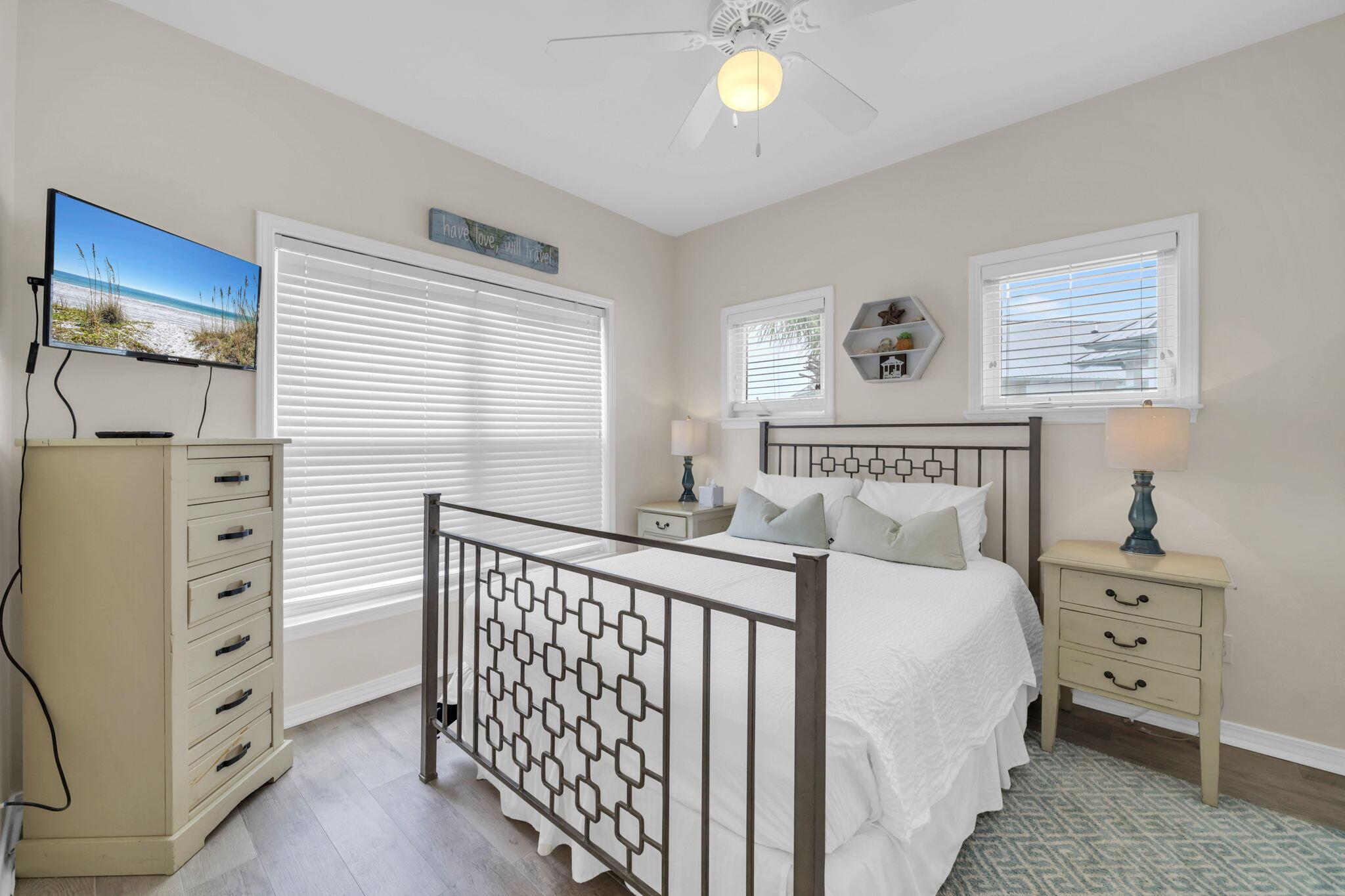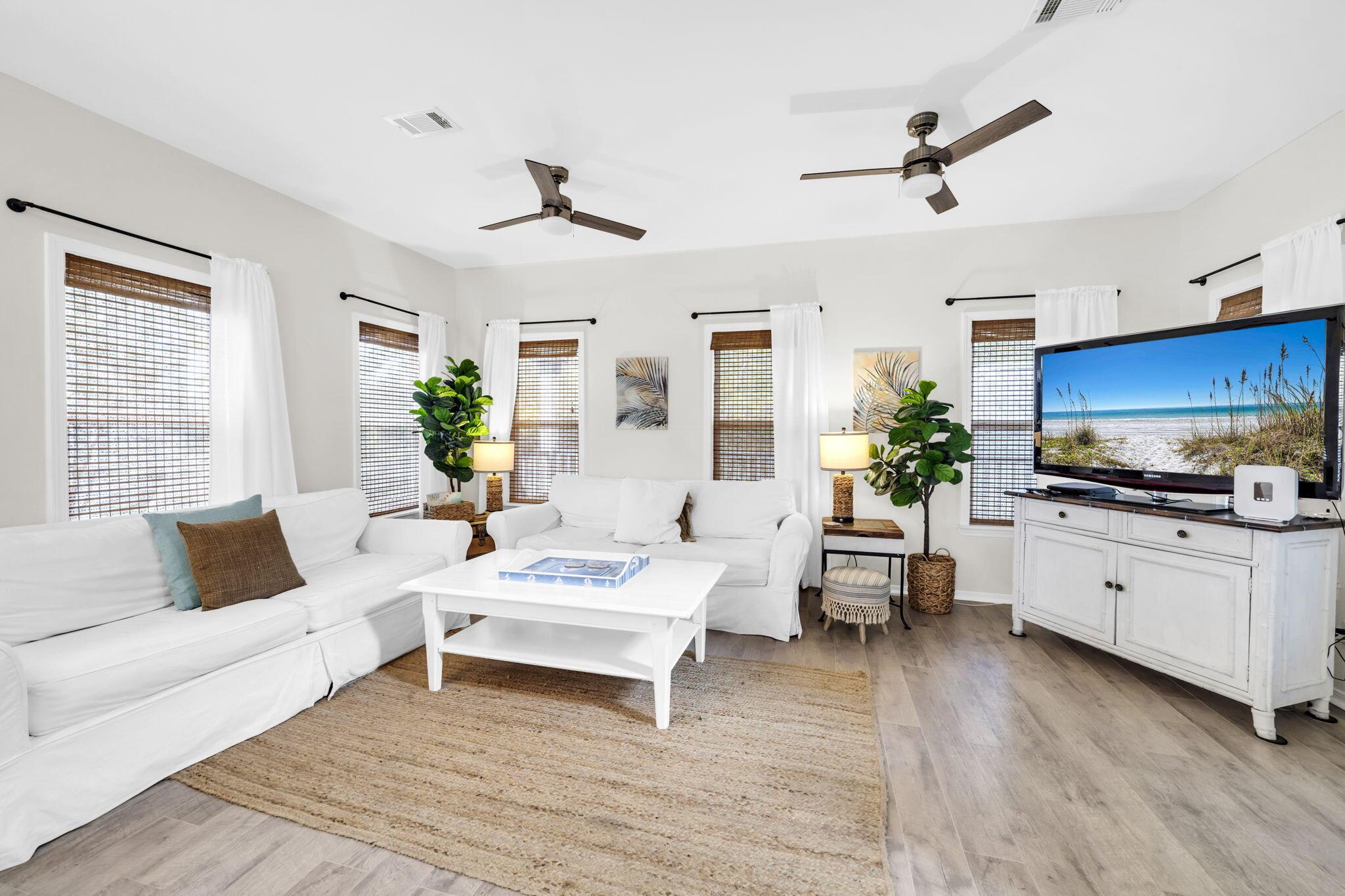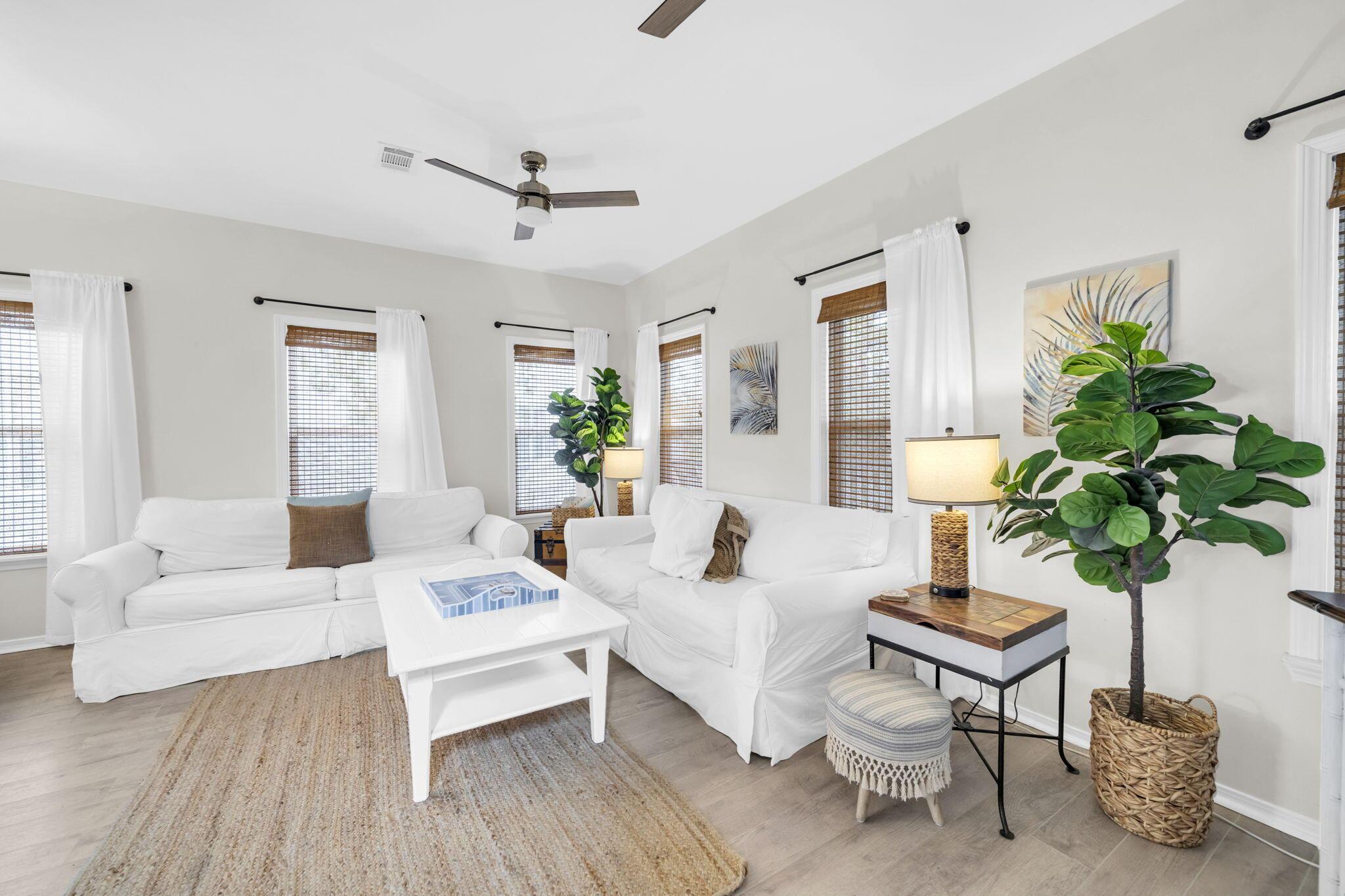 Welcome to Old Florida Village, a highly sought-after gated community in the heart of Blue Mountain Beach. With only 75 homes nestled between palms and 2 pools in this gated neighborhood, youll fall in love with the colorful coastal cottages and close-knit community the moment you drive in. This beautifully maintained 3-bedroom, 2.