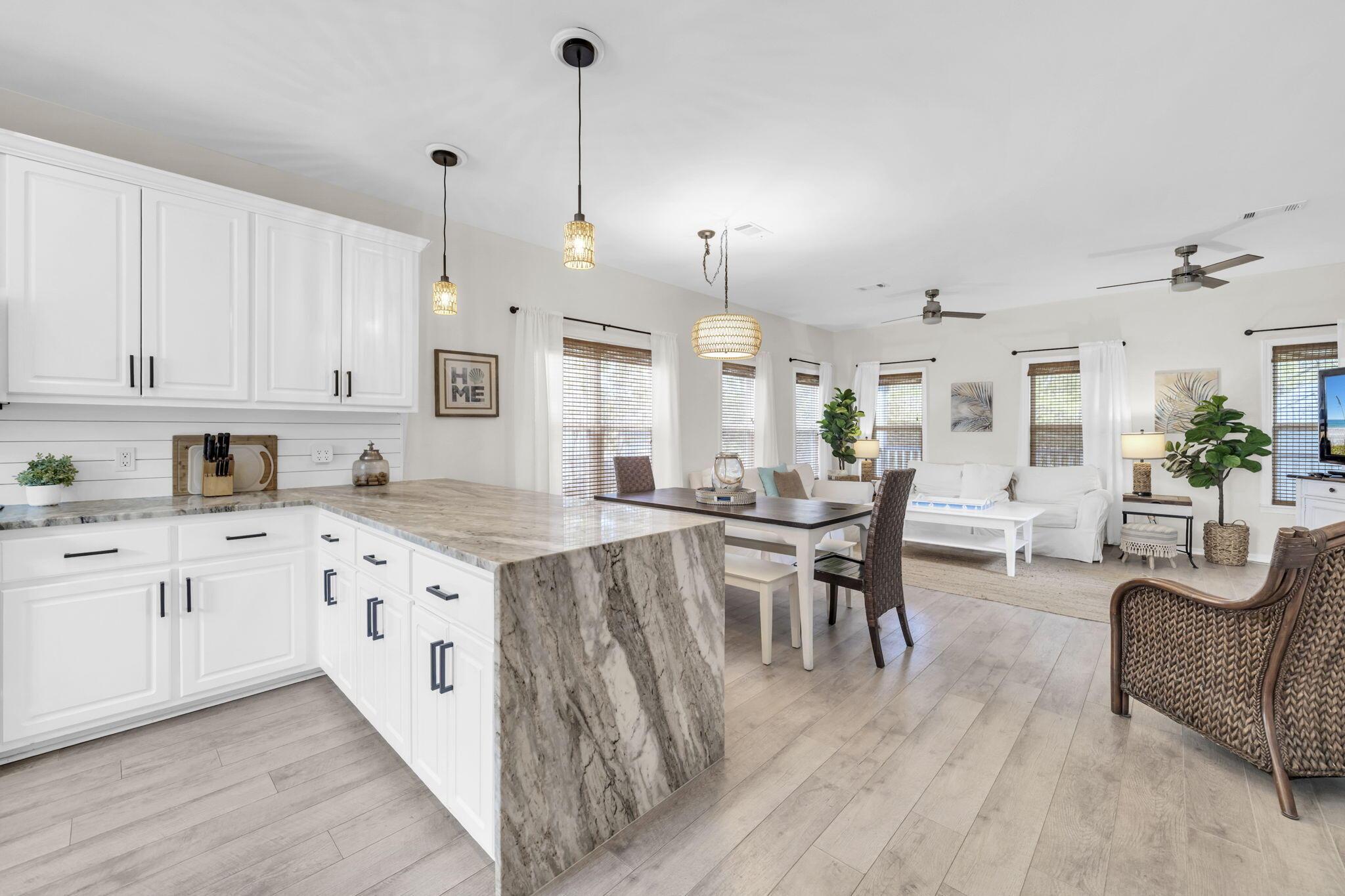 Welcome to Old Florida Village, a highly sought-after gated community in the heart of Blue Mountain Beach. With only 75 homes nestled between palms and 2 pools in this gated neighborhood, youll fall in love with the colorful coastal cottages and close-knit community the moment you drive in. This beautifully maintained 3-bedroom, 2.5-bath coastal cottage blends classic beach charm with modern comforts and is ideally located just a short distance from the Gulf of Mexico and the sugar-white sands of the Emerald Coast. Youll love the proximity to Blue Mtn Beach Reg Bch Access, providing convenient amenities-restrooms, bike racks, and parking, perfect for stress-free beach days. Additionally, nearby Gulf Place is home to a variety of restaurants, shops, and entertainment, making it easy to enjoy all the coastal and vibrant vibes the 30A area has to offer.Inside, the home features a spacious open-concept living area designed for relaxed beach living. The kitchen showcases a striking stone waterfall breakfast bar, white wood cabinetry, stainless steel appliances, and stylish rattan light fixtures that enhance the coastal feel. Shiplap accents in the kitchen and primary bathroom add charm, while updated fixtures throughout bring a fresh, modern touch.The large primary suite offers a private screened balcony, creating the perfect place to unwind after a day at the beach. The en-suite bathroom features a beautifully tiled shower and a bright, airy feel.The home is located in a golf cart-friendly community. The garage provides ample storage or space for golf cart parking, giving you everything you need to enjoy the neighborhood lifestyle and all the colorful and vibrant places that 30A has to offer.Whether youre looking for a primary residence, a vacation getaway, or an income-producing investment property, this home offers excellent rental potential and is already part of a strong rental program.Dont miss this opportunity to own your own slice of paradise just moments from the Gulf and the stunning beaches of the Emerald Coast. Schedule your showing today! Showings are available March 26-April 1st, April 11-14, April 20-30 but may become rented anytime so make sure you confirm with your agent on availability.