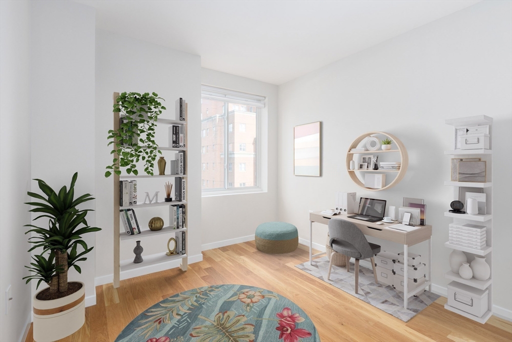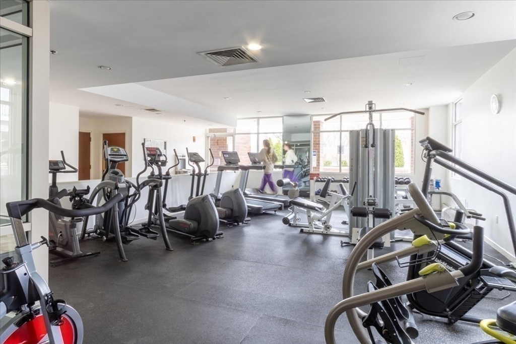 Just renovated and like new, in an elevator building with 24/7 concierge. Includes 1 Garage Parking, this bright 853 SF 2 Bed / 1.5 Bath condo has brand new 4 white oak hardwood floors throughout. New white shaker wood cabinet kitchen with SS French door refrig, and quiet Bosch DW. Exquisite quartz countertops with subway tile backsplash. Open Living/Dining Room features sliding glass door with Juiliet Balcony overlooking the front courtyard. The primary en-suite bedroom has a large walk-in closet and full bath. The second bedroom is flexible as an ideal office space. Central AC and heating included. Bay Square features outdoor saltwater pool and hot tub, new Fitness areas, and Sauna. Spacious common laundry on every floor. Unbeatable location minutes to Harvard and MIT, and close to Downtown Boston. Step outside to enjoy vibrant shops, acclaimed dining and quick access to the MBTA Red Line, #1 Bus to Back Bay, and local highways. Includes deeded private storage.
