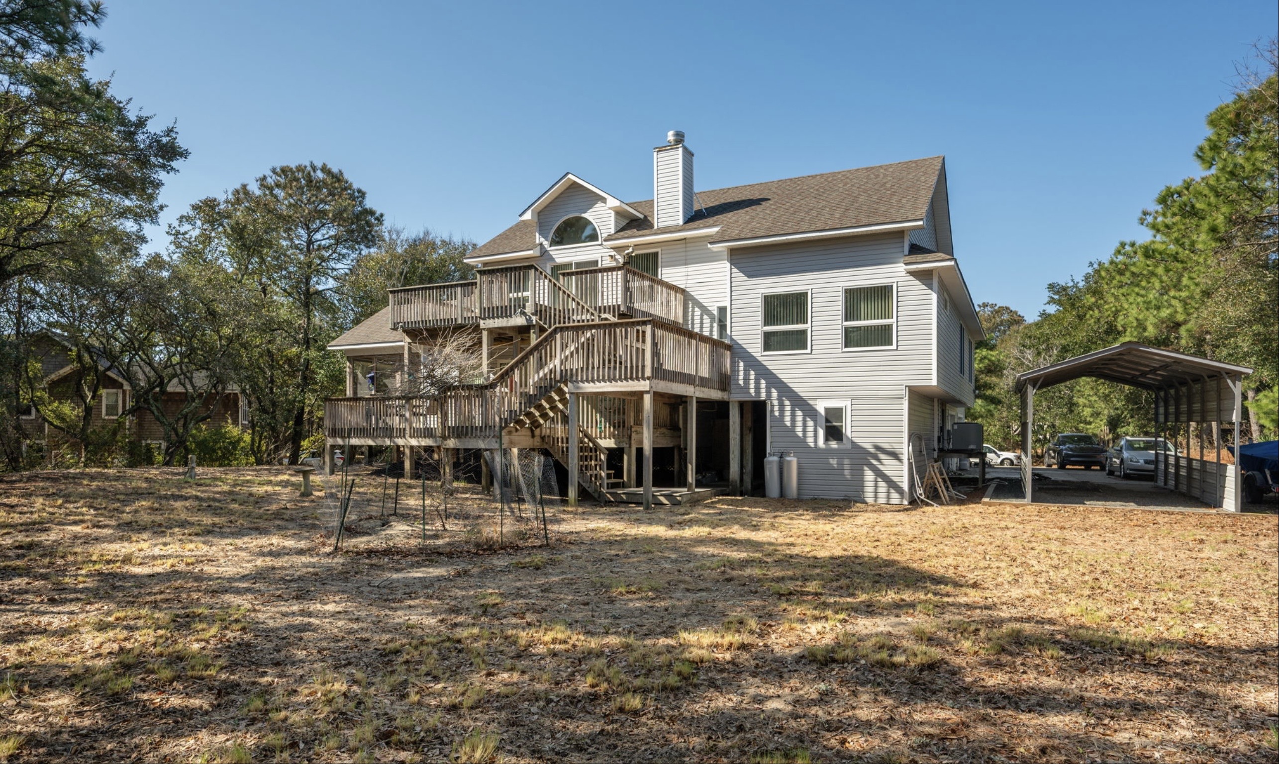 Tucked away on a quiet cul-de-sac in the desirable community of Chicahauk, 117 Pudding Pan Lane offers the perfect balance of privacy, space, and timeless Outer Banks charm. This well-cared-for 4-bedroom, 3.5-bath home sits on an expansive homesite of approximately two-thirds of an acre, providing an ideal blend of seclusion and convenience. Located just minutes — and within walking distance — to the Chicahauk beach access, shopping, and dining, you’ll enjoy the best of coastal living right at your doorstep. The thoughtful floor plan features spacious living and dining areas, a comfortable primary suite, and welcoming guest rooms that make entertaining family and friends effortless. Large windows invite in streams of natural light, while multiple decks and a screened porch offer perfect spots for morning coffee, afternoon relaxation, or evening gatherings under the coastal sky. Outdoors, the natural landscaped yard offers ample space for adding a private pool, allowing you to create an exceptional backyard retreat tailored to your lifestyle. With mature trees, generous open areas, and plenty of parking, the property delivers both comfort and versatility. Located in an established neighborhood of well-maintained single-family homes, this property offers the feel of a year-round residence yet functions perfectly as a second home or investment property. With its peaceful setting and convenient access to both the ocean and the sound, 117 Pudding Pan Lane is a rare opportunity to own a spacious coastal retreat in one of Southern Shores most sought-after communities. Join the SSCA and experience the best of coastal living! Enjoy exclusive access to the beach, sound, and beautiful parks. For a small additional fee, elevate your membership with tennis, pickleball, and marina privileges — your perfect seaside lifestyle awaits!