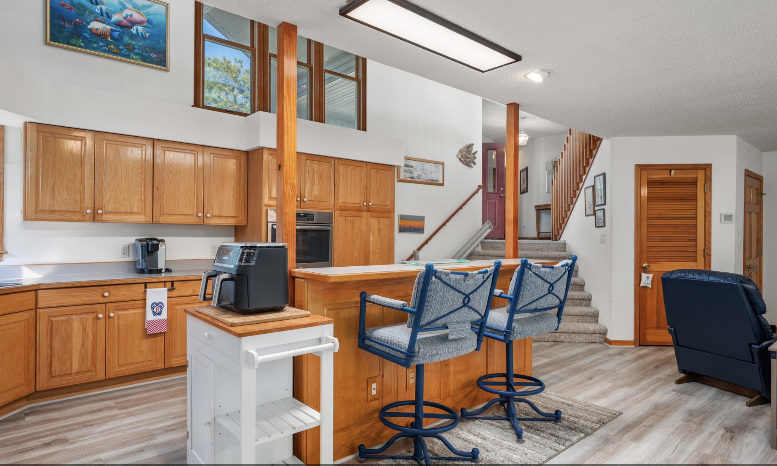 JUST SIX MINUTES FROM AMELIA ISLAND'S AWARD-WINNING BEACHES and STEPS FROM THE RIVER-TO-SEA BIKE PATH, this SALTWATER POOL HOME is quietly positioned at the END OF A CUL-DE-SAC. Designed for easy coastal living, it offers SINGLE-STORY LIVING plus a PRIVATE UPSTAIRS BONUS SUITE WITH ITS OWN LIVING AREA, BEDROOM AND FULL BATH, ideal for guests, extended family or a home office.