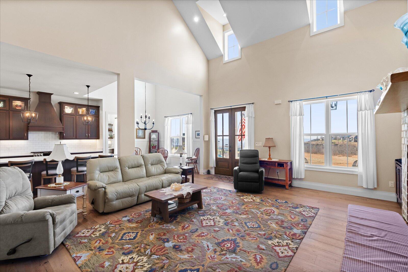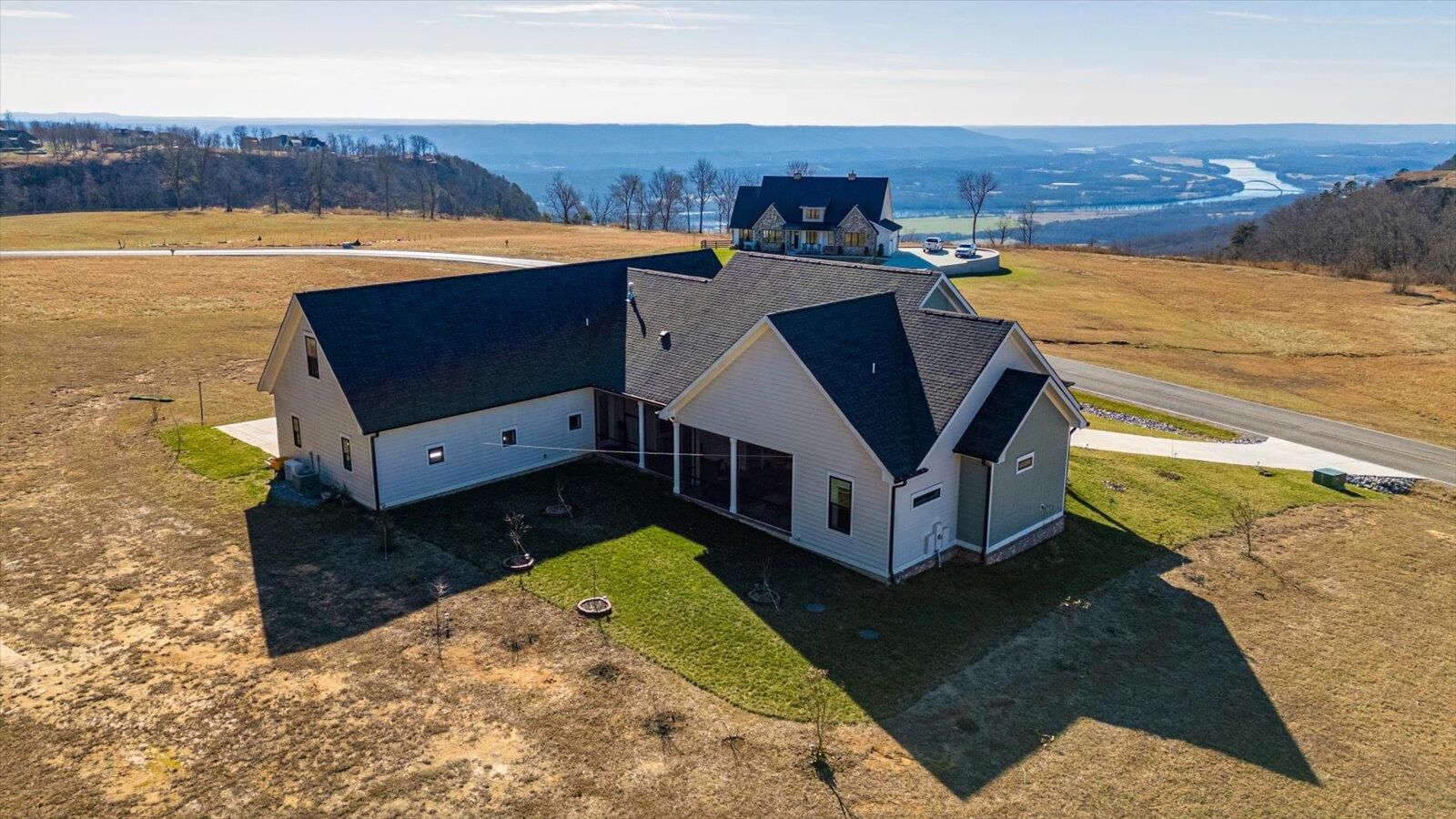 Welcome to 499 River Bluffs Drive, an exceptional, custom-built get-away perched atop the bluffs overlooking Sequatchie Valley and the TN River. 3D video tour available on Homes.com. Situated within the prestigious gated community - the Jasper Highlands, this home offers not only a home-with-a-view, but a community. In addition to offering commanding, year-round views, the rear of the home is nestled against a 1,300-acre forest. The enclosed rear patio provides a serene backdrop of towering pines and abundant wildlife, perfect for a chill afternoon with an iced-tea, or entertaining family and guests. This 1-acre brow-top lot delivers a rare blend of natural beauty, privacy, and accessibility--just 35 minutes from downtown Chattanooga. Thoughtfully designed with both elegance, practicality, and comfort in mind, the home features a spacious open-air floor plan with 3 bedrooms, an upstairs bonus room, 2-full and 2-half bathrooms, an expansive kitchen and great room, ideal for sophisticated entertaining or quiet relaxation.The luxurious primary suite is privately positioned away from the secondary bedrooms, offering a true retreat. The great room is highlighted by soaring vaulted ceilings and walls of natural light, creating a dramatic and inviting ambiance. At the heart of the home, the custom-designed kitchen showcases premium appliances, expansive countertops, a large center island, and finely custom-crafted cherry cabinetry--perfectly balancing form and function.Special features include not only a spectacular bluff view, a finished bonus room above the garage, a garage with utility sink cubby and beautiful epoxy floor. The home has its own whole-home water purification system (no maintenance). There is spray foam insulation throughout. From its elevated position along the Highlands' bluffs, this remarkable home offers unparalleled views, timeless tranquility, and a lifestyle defined by privacy, beauty, and understated luxury.