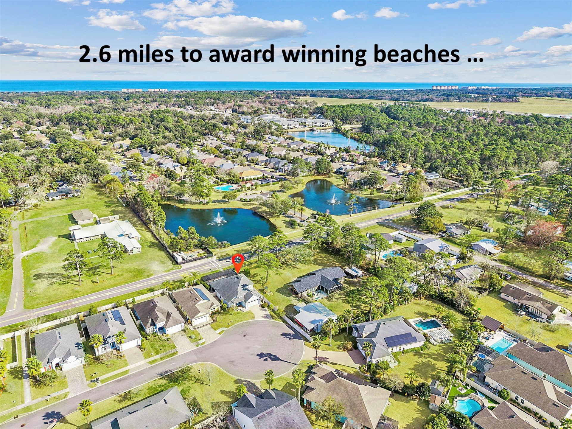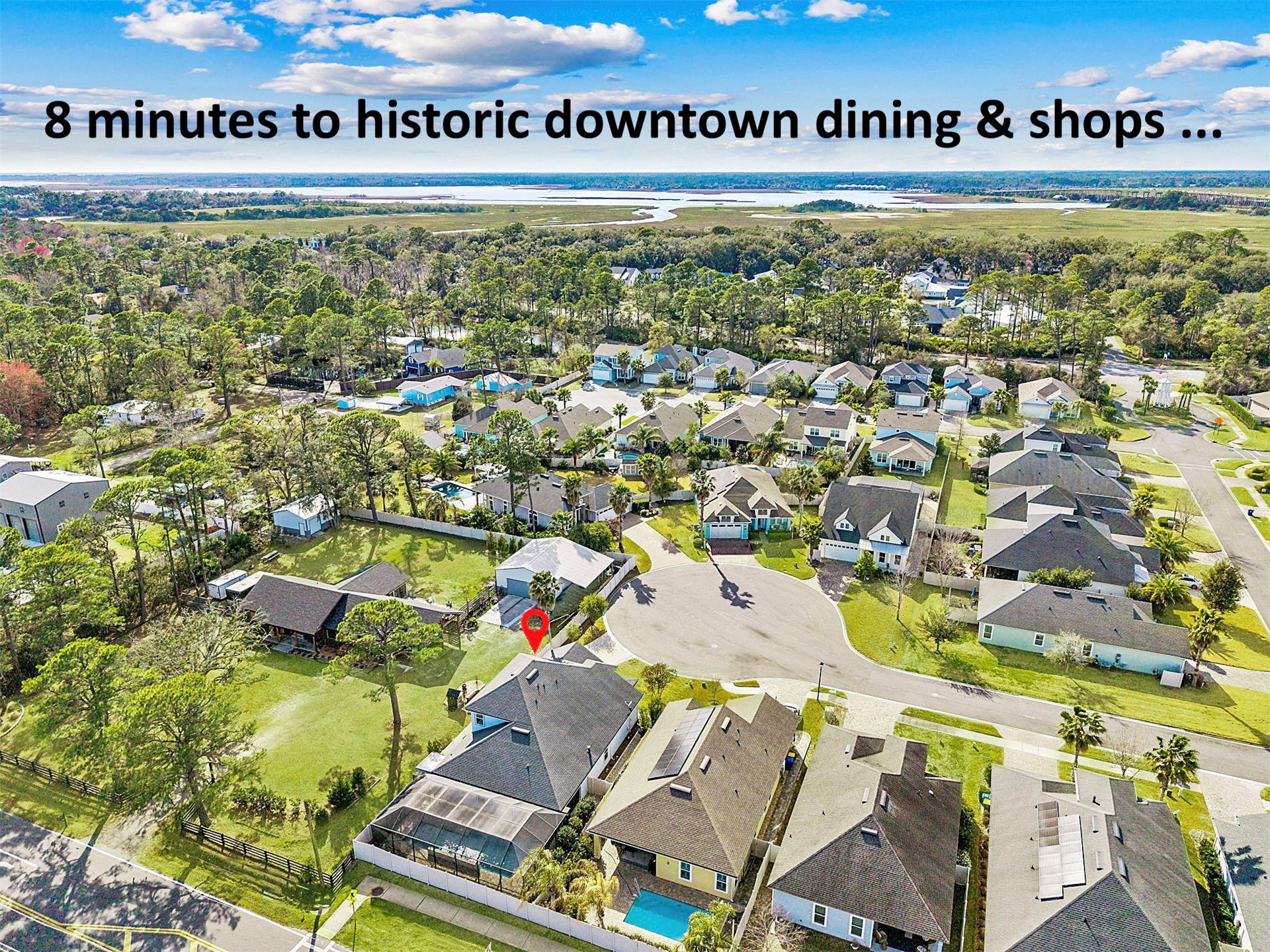 JUST SIX MINUTES FROM AMELIA ISLAND'S AWARD-WINNING BEACHES and STEPS FROM THE RIVER-TO-SEA BIKE PATH, this SALTWATER POOL HOME is quietly positioned at the END OF A CUL-DE-SAC. Designed for easy coastal living, it offers SINGLE-STORY LIVING plus a PRIVATE UPSTAIRS BONUS SUITE WITH ITS OWN LIVING AREA, BEDROOM AND FULL BATH, ideal for guests, extended family or a home office. The home makes a strong first impression with attractive curb appeal, a paver driveway and LOW-MAINTENANCE LANDSCAPING that keeps upkeep simple. Behind the scenes, practical upgrades such as WHOLE-HOUSE GUTTERS, SURGE PROTECTION AND WATER FILTRATION add peace of mind. Inside, 10' coffered and tray ceilings and designer tile flooring create an open, comfortable feel. The main living spaces connect naturally and overlook the SCREENED POOL AND LANAI, while a gas FIREPLACE AND CUSTOM BUILT-IN BAR with wine refrigerator add warmth and character. The kitchen is both functional and inviting, featuring espresso shaker cabinetry, granite counters, NATURAL GAS COOKING and a substantial island with seating for up to six, plus a built-in desk area. The primary suite offers generous scale and a large walk-in closet, while the guest bedrooms are thoughtfully sized and well positioned for privacy. Out back, the covered lanai extends your living space, opening to a 15,000-gallon screened pool with sun shelf and raised waterfalls that creates a relaxing, resort-style backdrop. LOCATED OUTSIDE A FLOOD ZONE, this boutique community is known for its WALKABILITY, a modest HOA and close proximity to beaches, historic downtown and miles of bike path. THOUGHTFULLY UPGRADED, EASY TO MAINTAIN AND PERFECTLY LOCATED, THIS HOME DELIVERS THE COMPLETE AMELIA ISLAND LIFESTYLE.