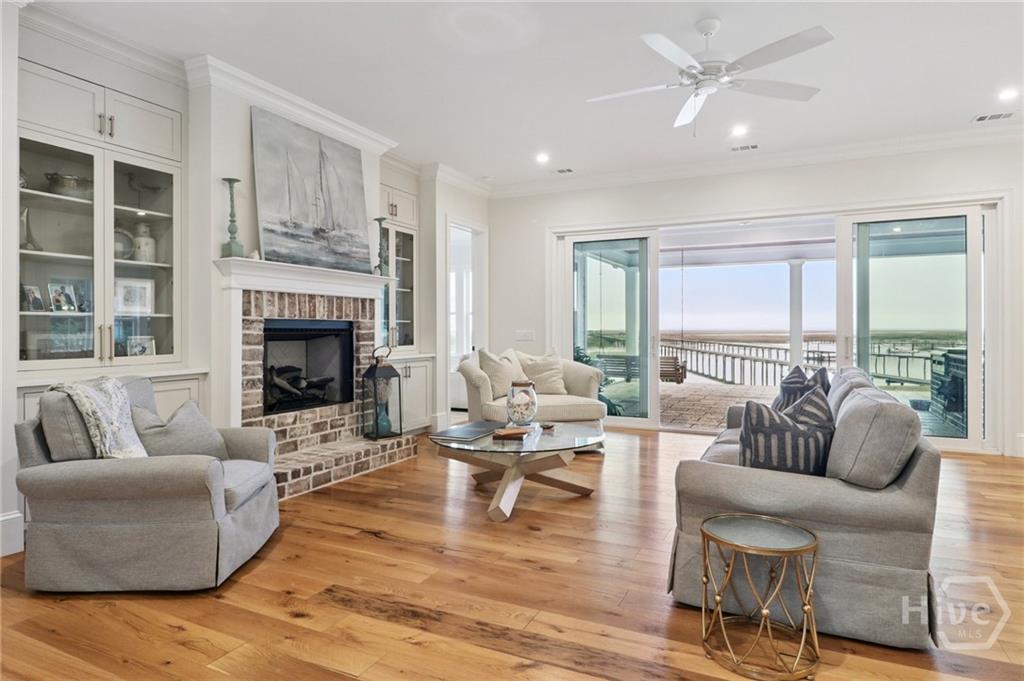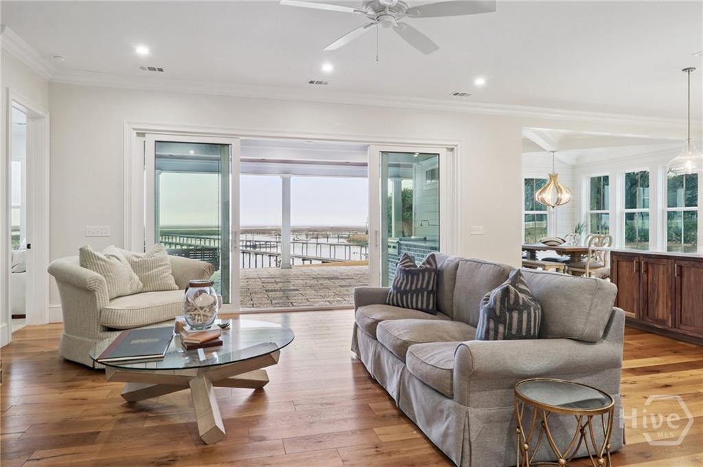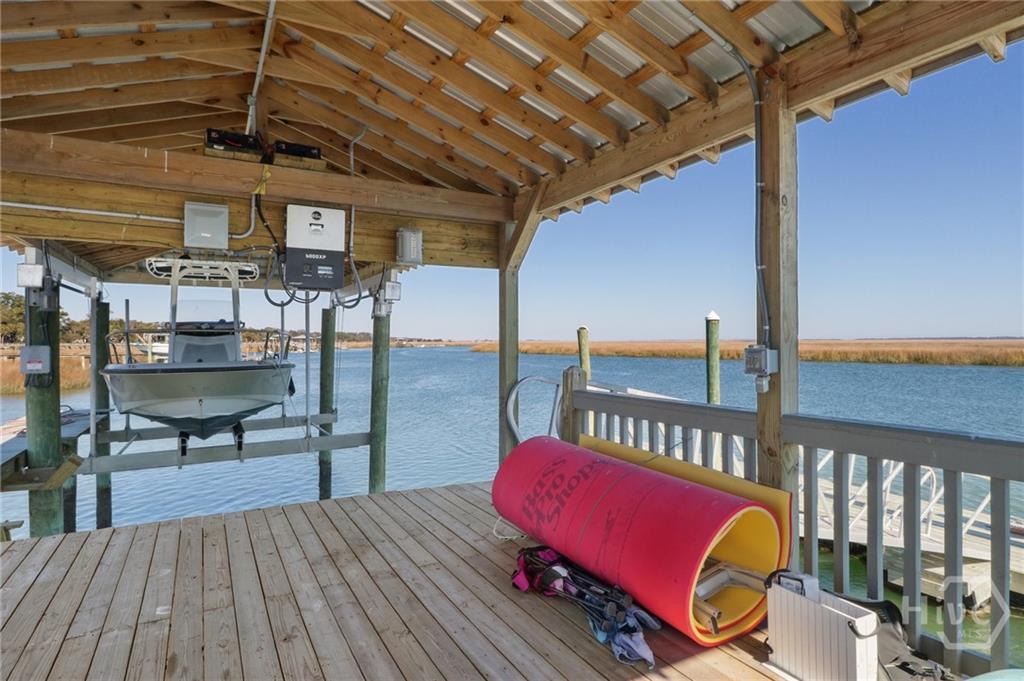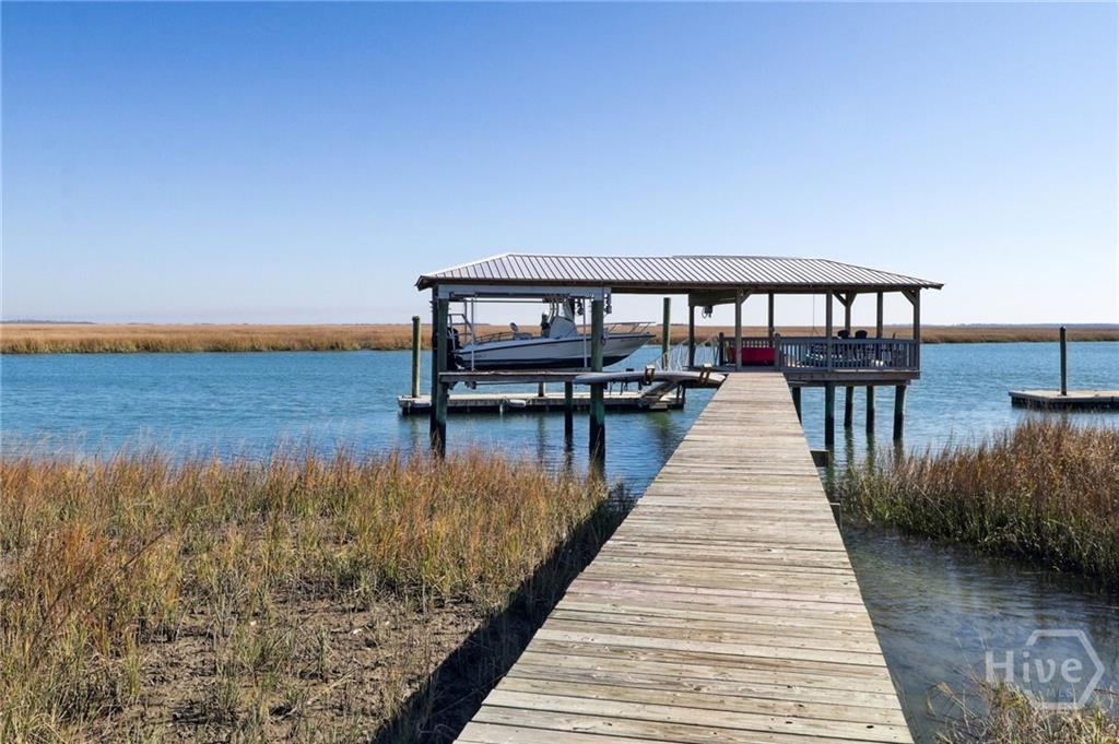 1919 Stone Street, a stunning waterfront residence offering timeless Southern charm and exceptional Lowcountry living. This beautifully crafted home features 4,200 square feet, 4 bedrooms, and 2½ baths, with thoughtfully designed spaces ideal for both everyday living and entertaining. Rich wood floors flow throughout the home, setting the stage for warm and inviting interiors. The chef’s kitchen opens to a spacious great room with a fireplace and picturesque views of the Halfmoon River. The primary suite is located on the main level and includes a private sitting room overlooking the water, creating a peaceful retreat. Three additional bedrooms are located upstairs, providing ample space for family or guests. Designed for year-round enjoyment, the great room opens onto a covered patio with a built-in buffet, plenty of seating, perfect for outdoor dining and gatherings. The property also features a covered dock with boat lift and a floating dock, capable of accommodating 3–4 boats, making this home ideal for boating and waterfront living. A 3–4 car detached garage and a spacious backyard complete the property. Conveniently located just 15 minutes from Tybee Island beaches and Historic Downtown Savannah, this exceptional home offers the perfect balance of luxury, comfort, and location.