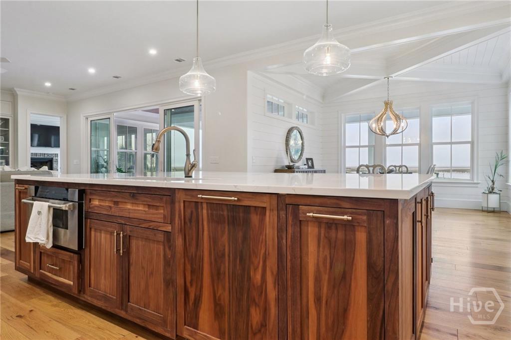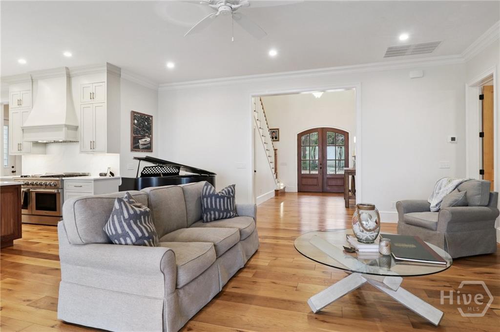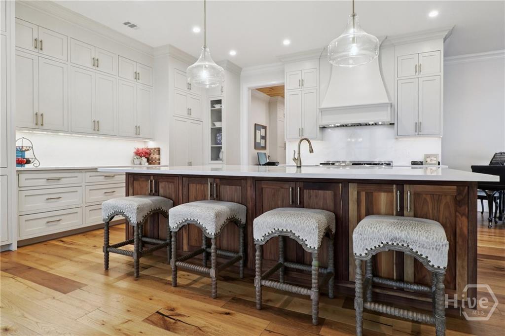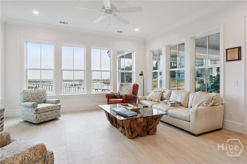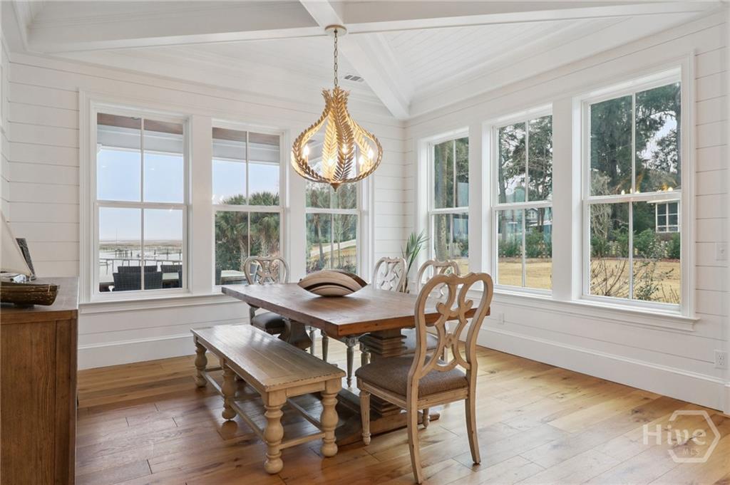 1919 Stone Street, a stunning waterfront residence offering timeless Southern charm and exceptional Lowcountry living. This beautifully crafted home features 4,200 square feet, 4 bedrooms, and 2½ baths, with thoughtfully designed spaces ideal for both everyday living and entertaining. Rich wood floors flow throughout the home, setting the stage for warm and inviting interiors. The chef’s kitchen opens to a spacious great room with a fireplace and picturesque views of the Halfmoon River. The primary suite is located on the main level and includes a private sitting room overlooking the water, creating a peaceful retreat. Three additional bedrooms are located upstairs, providing ample space for family or guests. Designed for year-round enjoyment, the great room opens onto a covered patio with a built-in buffet, plenty of seating, perfect for outdoor dining and gatherings. The property also features a covered dock with boat lift and a floating dock, capable of accommodating 3–4 boats, making this home ideal for boating and waterfront living. A 3–4 car detached garage and a spacious backyard complete the property. Conveniently located just 15 minutes from Tybee Island beaches and Historic Downtown Savannah, this exceptional home offers the perfect balance of luxury, comfort, and location.