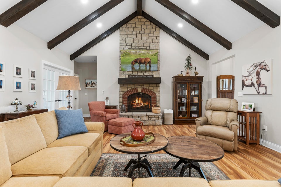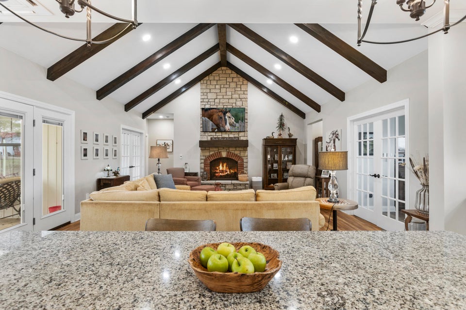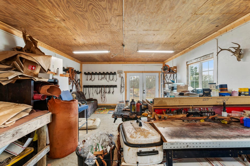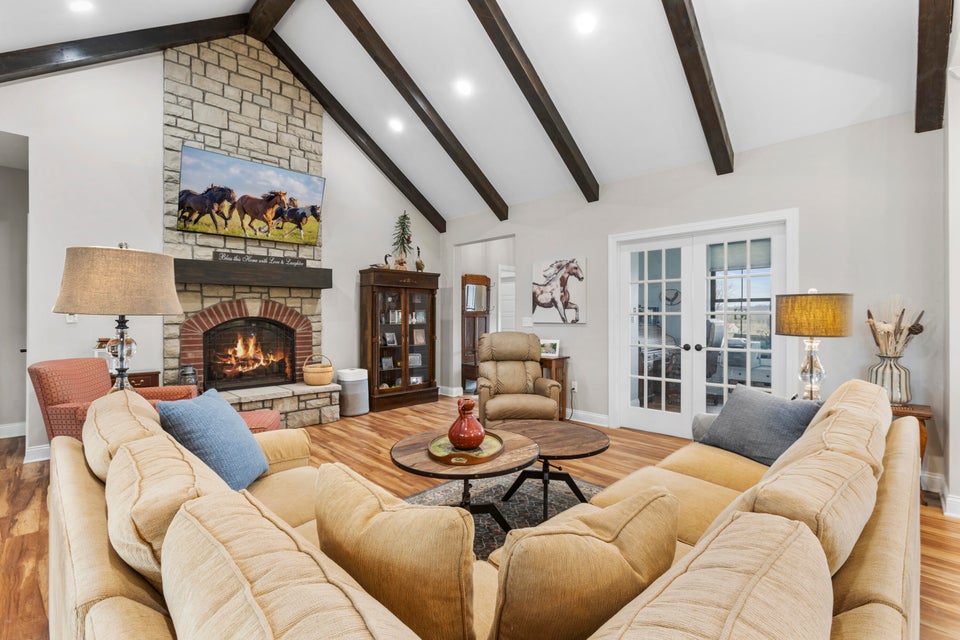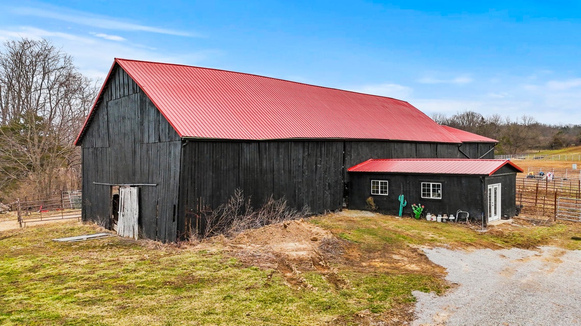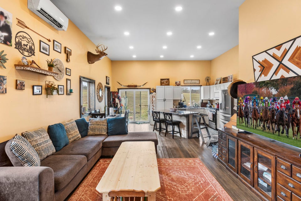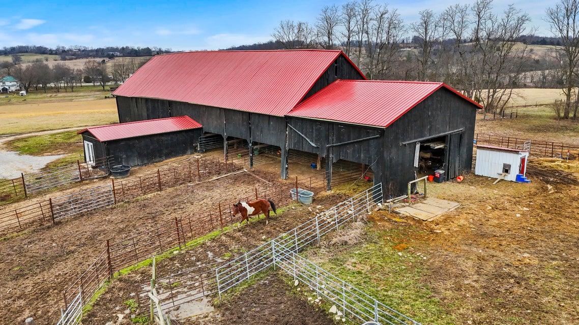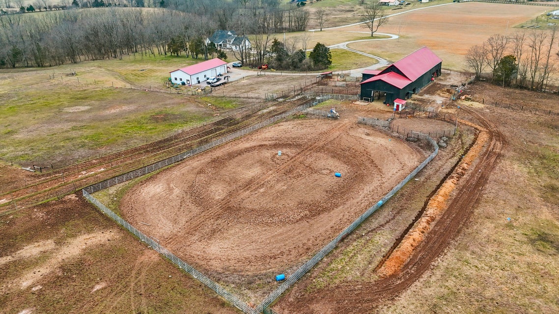 This beautiful 4 year new 6-bedroom, 4.5-bath property offers the perfect blend of functionality, comfort, and rural charm. The main residence consists of 4 bedrooms, featuring spray foam insulation for efficiency and radiant-heated floors in the primary bathroom. A swimming pool is possible, with the septic system conveniently located on the side of the home. The owned propane tank adds flexibility and long-term value. An attached guest house connected to the shop includes 2 bedrooms, 1 full bath, and a complete kitchen—ideal for guests, extended family, or farm staff. Equestrian amenities are thoughtfully designed, with a barn capable of accommodating up to 12 stalls, a 16x30 shop within the barn, and a stripping room with propane heat. The 200x120 riding arena features river sand footing for excellent performance and drainage. The property spans approximately 129 acres, with 30 fenced acres with durable 4x4 woven wire fencing for horses/livestock. Each paddock ranges from 2-3 acres, offering ample space and versatility. Approximately 25 acres are wooded, providing privacy and natural beauty, while 10 acres of productive hayfield sit at the rear of the property. Wild blackberry bushes add to the charm and usability of the land. A new grand entry gate welcomes you onto this impressive property, offering privacy, curb appeal, and a true sense of arrival. A rare opportunity to own a turnkey muti-use farm offering space, privacy, and versatility—perfect for horse enthusiasts, multi-generational living, or those seeking a well-appointed farm with room to grow!