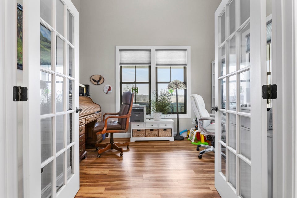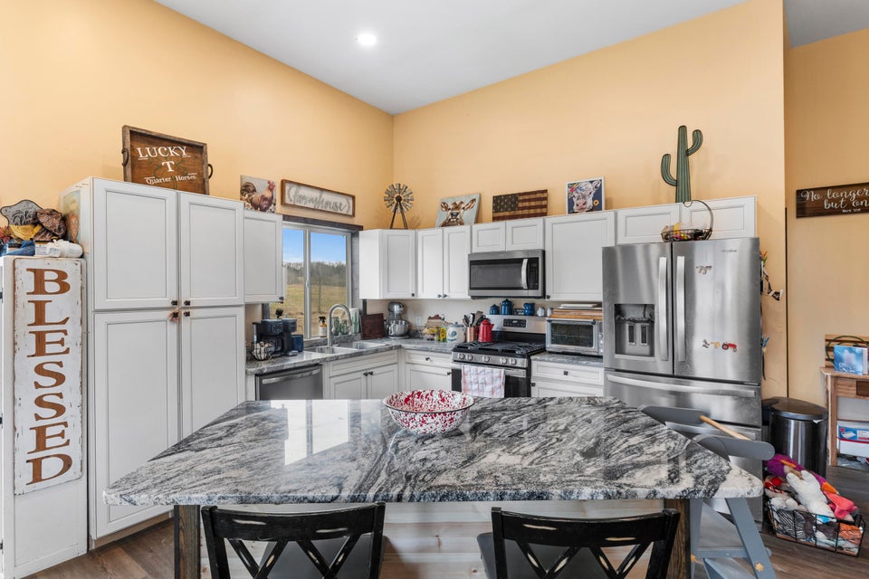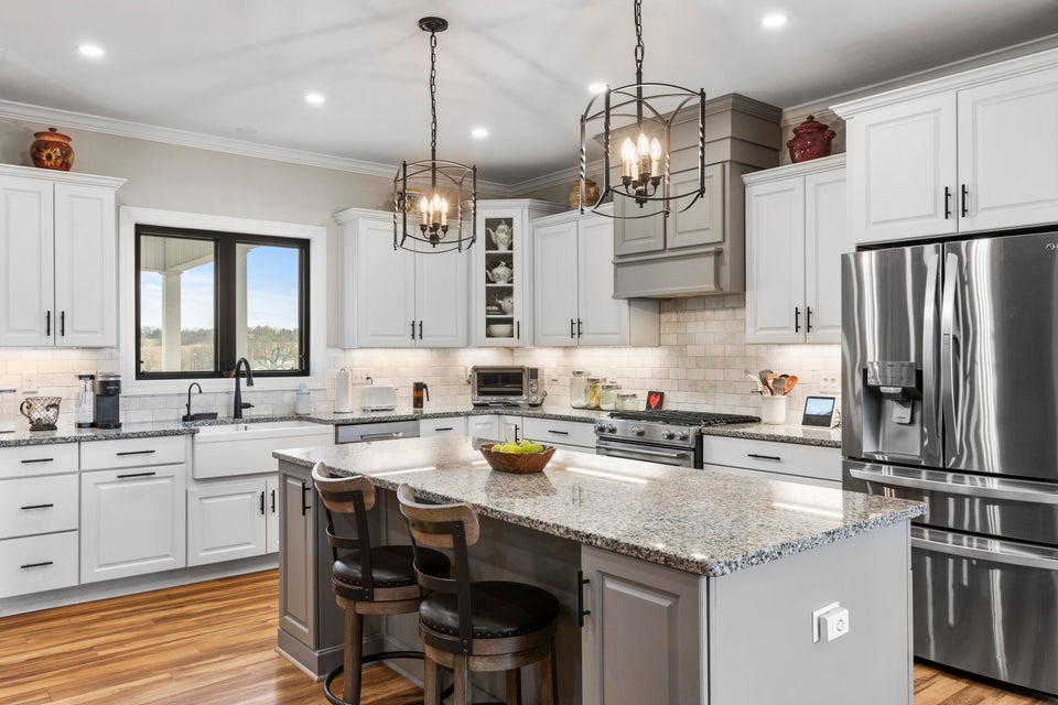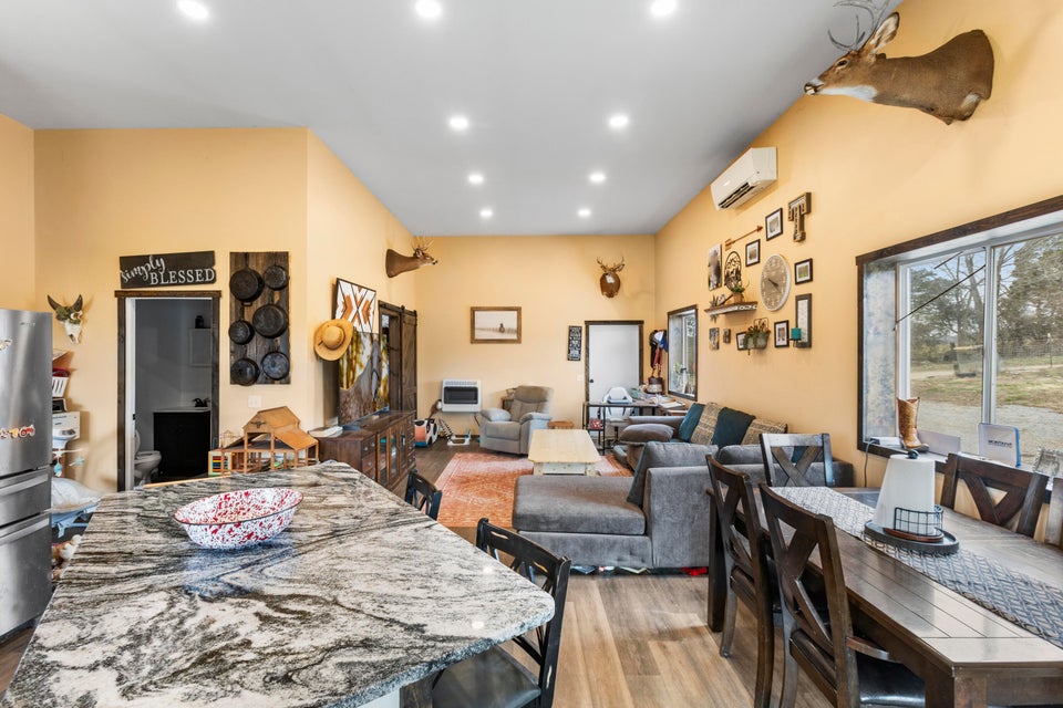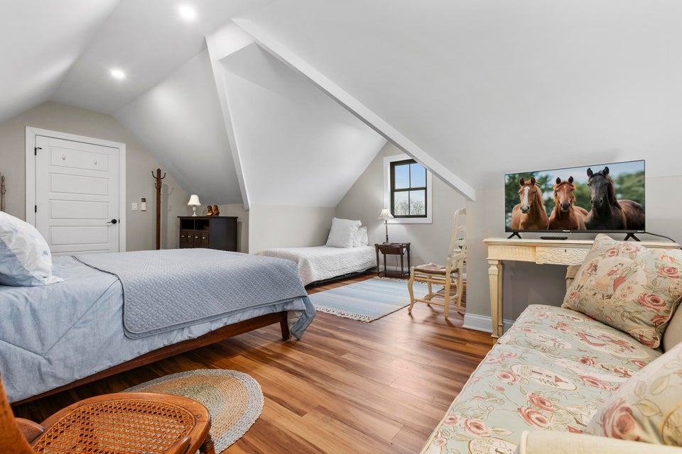 This beautiful 4 year new 6-bedroom, 4.5-bath property offers the perfect blend of functionality, comfort, and rural charm. The main residence consists of 4 bedrooms, featuring spray foam insulation for efficiency and radiant-heated floors in the primary bathroom. A swimming pool is possible, with the septic system conveniently located on the side of the home.