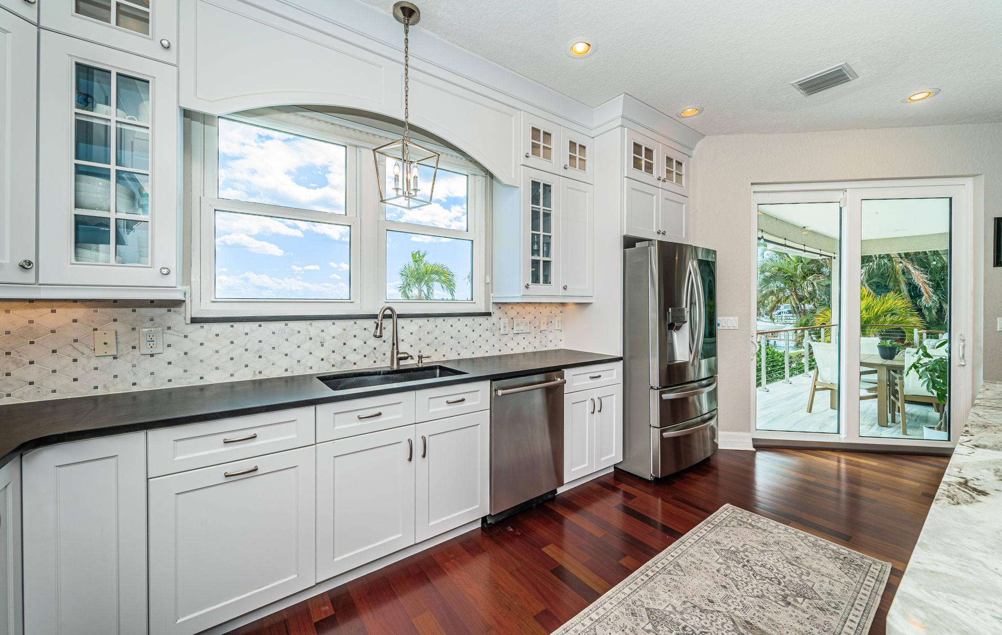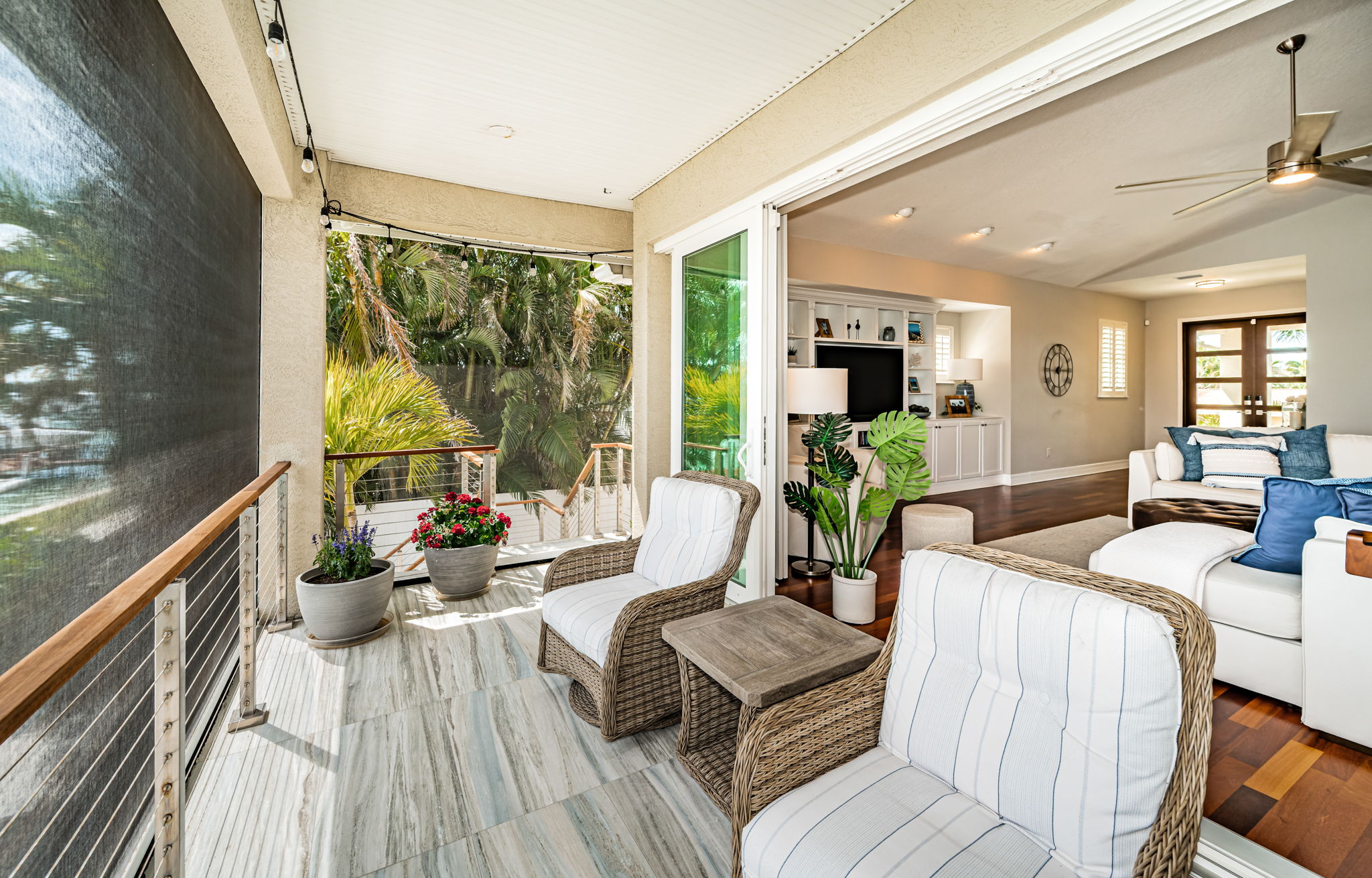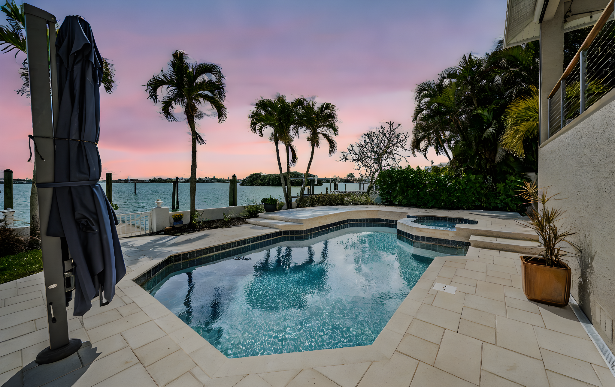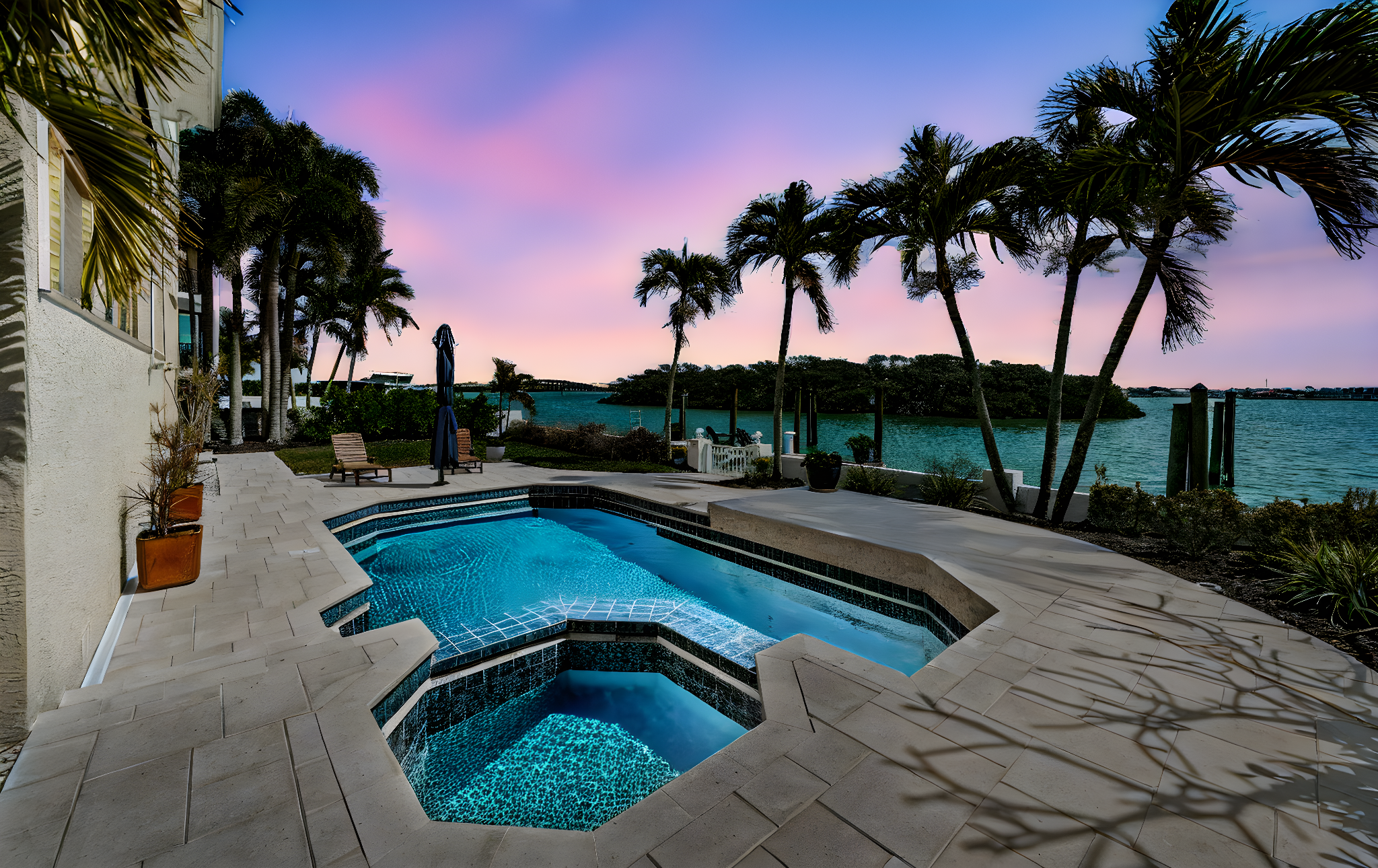 ENJOY THE BEST OF BOATING AND THE BEACH IN THIS BEAUTIFULLY UPDATED COASTAL LUXURY RESIDENCE WITH ASSUMABLE FLOOD INSURANCE POLICY COSTING JUST 897/YEAR! Located on the terrific boating water of the intracoastal waterway, and just a short five-minute walk to the beach, welcome to a home that breaths elegance and refinement! An appealing circular brick paver driveway introduces a lovely covered entry and wonderful views of the waterfront. Gorgeous Brazilian cherrywood floors, superb woodworking, fine window treatments and radiant lighting deliver a distinctive and inspiring allure. The resplendent living room area, with 13ft-high vaulted ceiling and exquisite custom built-in media/storage center, features pocketing sliding-glass doors that transition to 28ft wide covered luxury balcony with a motorized screen enclosure system. Pocketing sliders enable a fantastic indoor-outdoor living and entertaining experience. Overlooking the waterfront, your sumptuously-appointed kitchen makes cooking a true joy – with lavish marble and pounded granite surfaces, richly-tiled backsplash areas, generous coastal white cabinetry, high-end appliances including Wolf gas cooking, a large island bar and prep-center, a spacious pantry closet, and immediate access to two dining areas. The upper level is a dedicated owner’s suite with the grand bedroom and sitting area overlooking the intracoastal waterway; bedroom features his and her closets (hers is an oversized walk-in) and a private covered balcony with commanding views of the waterfront. The owner’s bath is a posh, pampering experience – with a beautifully encased jetted spa tub, beaded-board wainscoting, splendid his and her vanities and a walk-in glass shower enclosure. A separate split ½ level contains a large en suite bedroom with graceful full bath and walk-in closet, and a second large bedroom with walk-in closet - supported by an adjacent full guest bath with luxury finishes. Out back you’ll discover a dazzling pool/spa with posh tilework, a newly-installed Pebbletec finish, and a fabulous shellstone paver deck. The composite dock, with extensive shore power and water, supports a large deepwater (8ft of depth) boat slip with tie pole support for a 28ft beam. This exceptional residence has a 6-month new roof and enjoys tankless gas hotwater heating, whole-house water softening, modern custom handrails, 1000 sqft of secure under-structure storage, Tesla vehicle charger, and Tesla whole-house battery backup system (with fully functioning solar panels in garage awaiting your installation). Home enjoys private “residents only” access to the beach and is a short drive from the dining, shopping and entertainment of Clearwater Beach and Indian Rocks Beach. An outstanding open waterfront value in Belleair Beach!