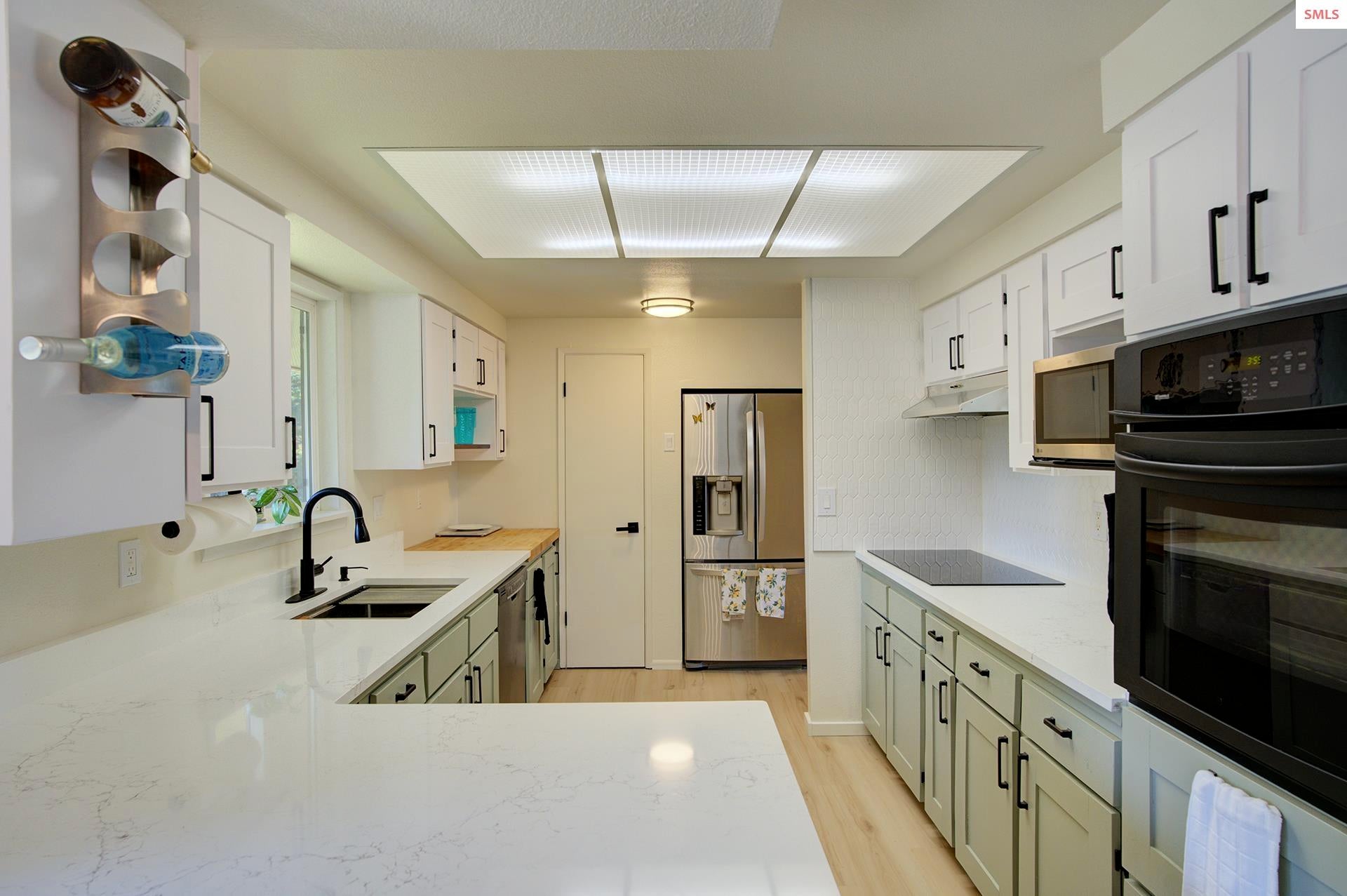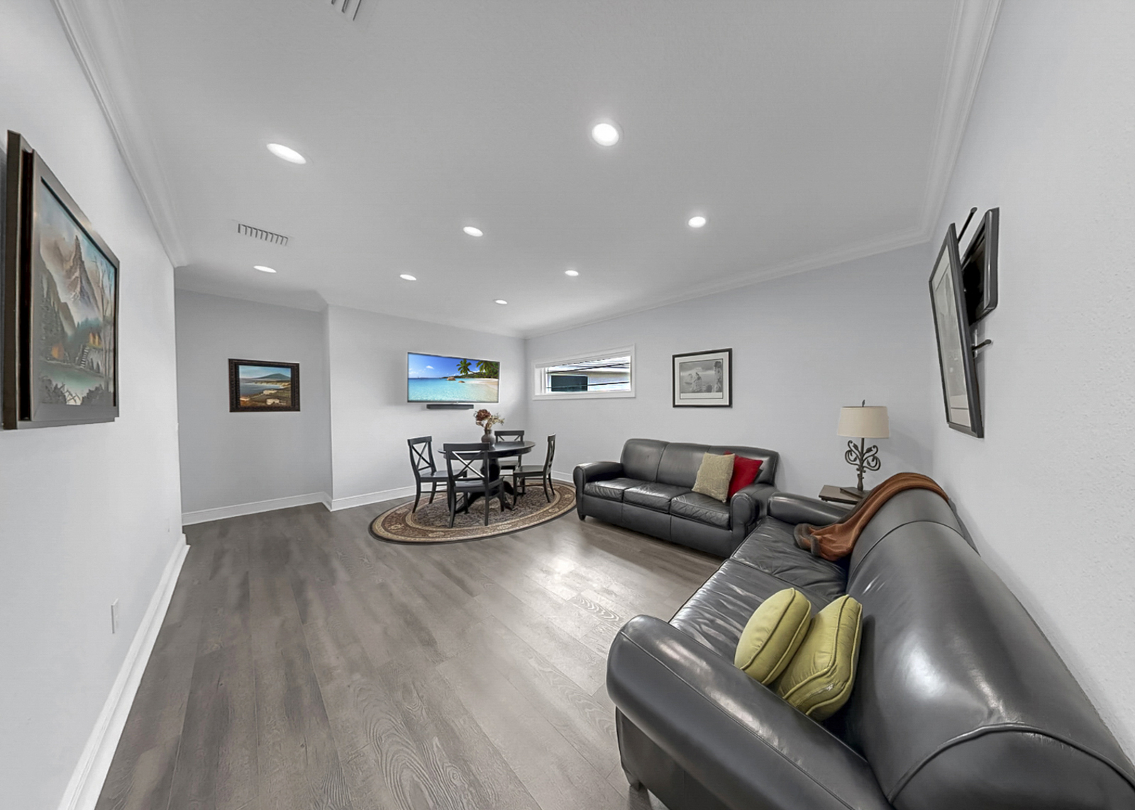 Welcome to this one-of-a-kind Rossmoor compound offering two separate gorgeous homes. The Main House – 3 bedrooms, 2 baths. The ADU – 2 bedrooms, 2 baths. This beautifully upgraded property sits on a spacious 8,264 sq.ft. lot. A stunning remodeled main house has 1,736 sq.ft. of modern living space. A beautiful metal fence with automatic sliding door enhances its curb appeal. Neutral waterproof vinyl flooring, elegant chandeliers, and recessed lighting throughout. The cozy living room features a striking natural stone, wood-burning fireplace. The gourmet kitchen with gorgeous quartz countertop is complete with a 5-burner cooktop, advanced Smart Slended IQV technology rangehood, built-in microwave/oven combo, and high-end Samsung Bespoke appliances, including a smart white-glass dishwasher and 4-door French-door refrigerator with a beverage center. Both bathrooms are beautifully remodeled with frameless LED wall vanity mirrors. An indoor laundry area includes a washer and dryer for added convenience. A paved concrete spacious yard separates the newly constructed, fully permitted ADU (Accessory Dwelling Unit) which boasts nearly 1,000 sq.ft. of sophisticated living space with its own private address. The open-concept layout includes a bright living area with stylish wall sconces, recessed lighting, and a formal dining area under an elegant crystal chandelier. The sleek kitchen features a 5-burner gas range with rangehood, built-in microwave/oven combo, dishwasher, and a premium LG Instaview 3-door refrigerator. The spacious primary suite offers a large walk-in closet with built-in organizers and a vanity with lighted drawers. The secondary room with a walk-in closet and organizer is across the hallway bath. It also includes an in-unit laundry area with washer and dryer. Located in the award-winning Los Alamitos School District, this property is more than a home—it’s a savvy investment. Whether utilized as a high-end rental, a guest house, or a private compound for extended family, this impressive Rossmoor gem is a rare find and a must-see.
