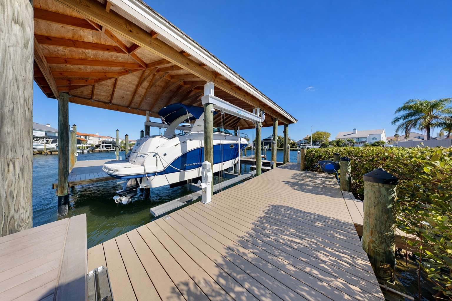 Spectacular Luxury Waterfront Estate. Nestled on a pie-shaped lot, this amazing, custom-built residence offers nearly 1,000 feet of marina and dock space, delivering an incomparable gateway to aquatic living. The property boasts what is believed to be one of the largest private docks and marinas in the area, with capacity to berth three boats and two jet skis, fully equipped with water, electricity, and lighting at three shore stations. Located within the exclusive gates of Symphony Isles in Apollo Beach, 901 Capriccio Lane presents direct bay access, a meticulously manicured and expansive yard, and a sense of timeless elegance enhanced by guard-guided, 24/7 access, a private boat ramp, a secluded beach, a refined clubhouse, and a poolside social scene. From the moment you approach, you are welcomed by curb appeal of pristine landscaping and a timeless, refined facade. Upon entry, you are immersed in a world of refined luxury: porcelain tile floors, soaring ceilings accented with crown molding, and open, inviting spaces that effortlessly flow from room to room. The family room stands as the homes grand focal point, bathed in natural light and opening through expansive sliders to a resort-style pool deck. The chefs kitchen is a masterpiece of design and function, featuring white cabinetry contrasted by a gray island, top-of-the-line appliances, quartz countertops, and a sophisticated accent tile backsplash. Adjacent formal dining exudes elegance with tray ceilings, while a spacious office with built-in features provides a quiet sanctuary for study or business. The master suite is thoughtfully positioned on the main level, offering direct access to the pool and canal views. Rich crown molding, luxury vinyl flooring, and two generous California closets set the stage for daily indulgence. The master bath is a sanctuary unto itself, boasting dual vanities, a standalone shower with rock floors, and a freestanding tub that invites serene, spa-like moments. Ascending to the upper level reveals three sumptuous bedrooms and three impeccably appointed baths, complemented by a large bonus room ideal for family entertainment. A capacious balcony provides an unparalleled vantage point for watching dolphins or manatees glide by, harmonizing nature with luxury. Outdoor living is equally intoxicating: a private pool with a soothing jacuzzi, an outdoor kitchen poised for exquisite alfresco dining, and an expansive deck designed for seamless indoor-outdoor entertaining. The propertys considerable yard remains fully fenced, offering both privacy and boundless opportunity for leisure or future expansion. The dock is an extraordinary feature unto itself, with three shore stations supplying water, electricity, and lighting, and direct access to the bay for yacht, boat, and jet ski enthusiasts to indulge in all manner of water activities. This is a residence where ones best life unfolds - where extraordinary craftsmanship and premium materials converge to create a coastal paradise that transcends the ordinary. Welcome to 901 Capriccio Lane, Apollo Beach, a rarified waterfront sanctuary that redefines luxury living. Call to schedule private showing.