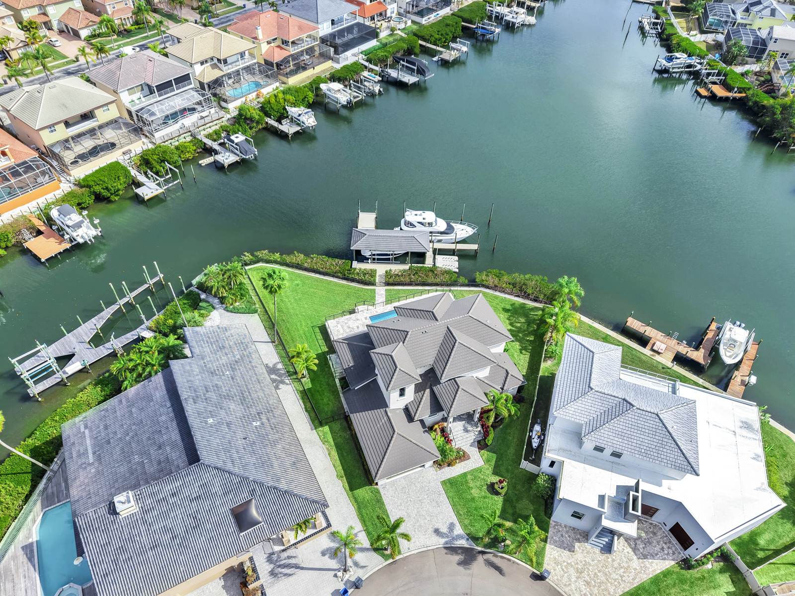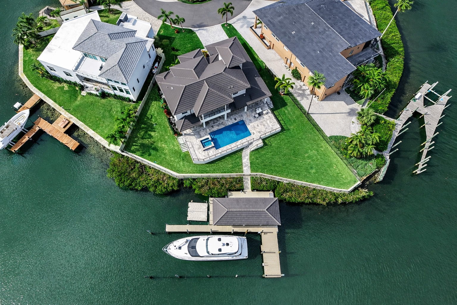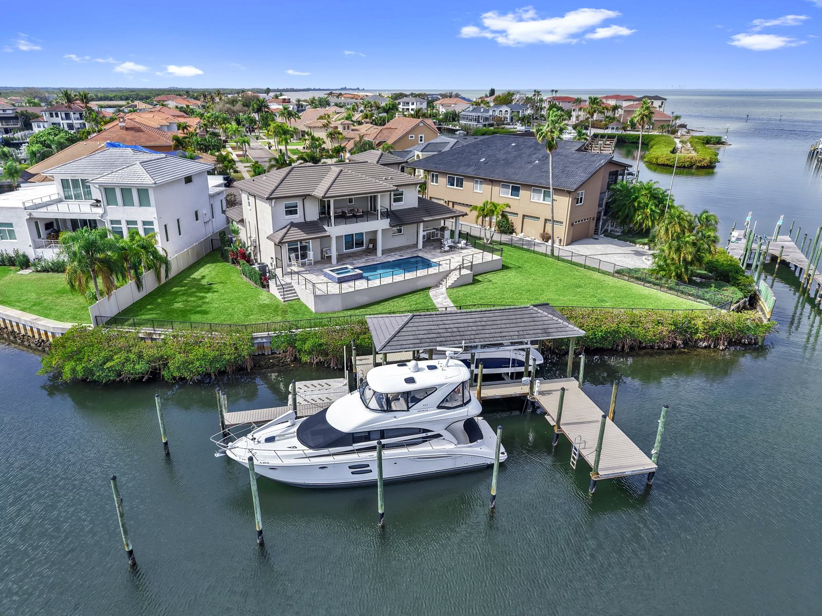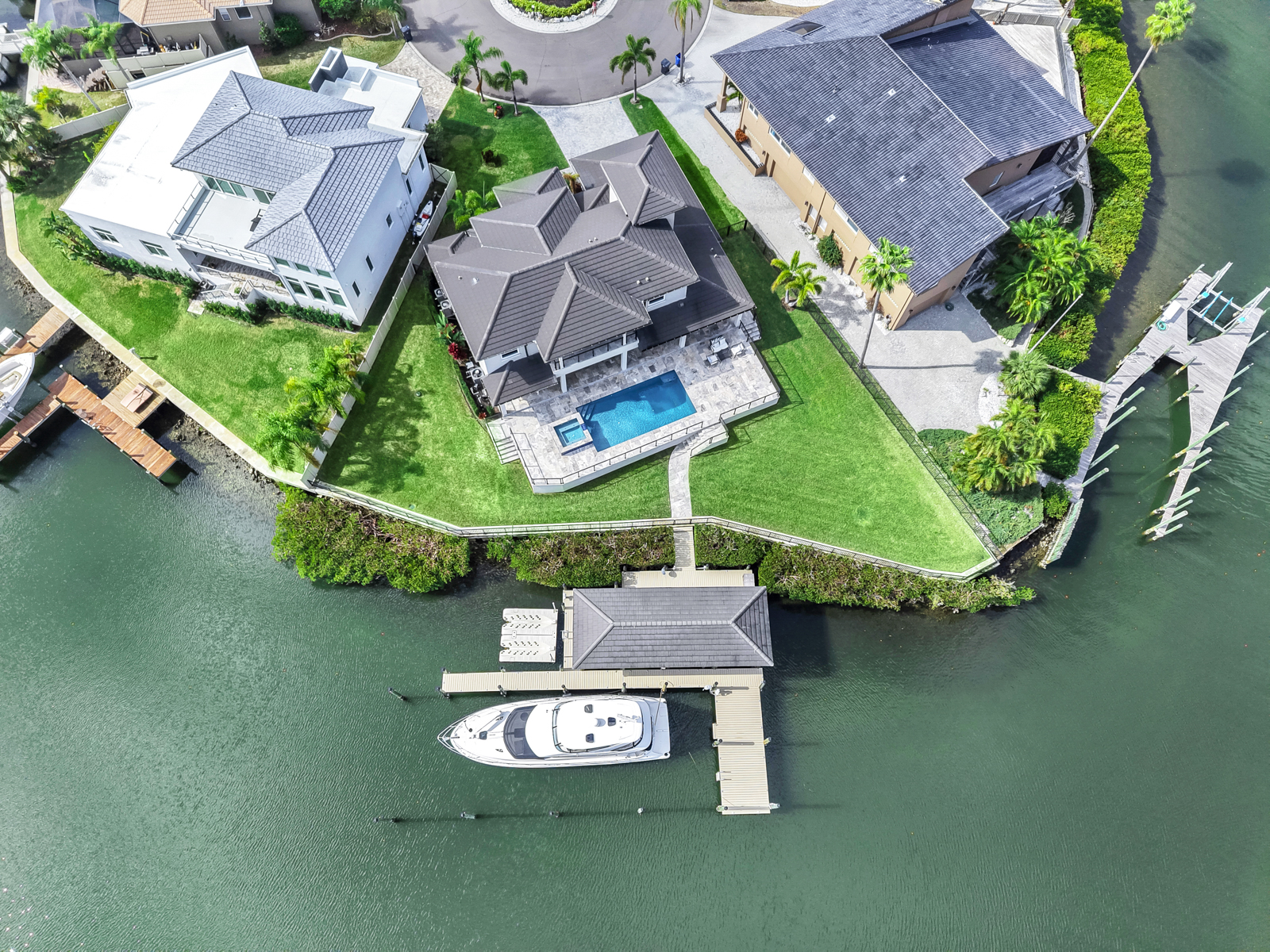 Spectacular Luxury Waterfront Estate. Nestled on a pie-shaped lot, this amazing, custom-built residence offers nearly 1,000 feet of marina and dock space, delivering an incomparable gateway to aquatic living.