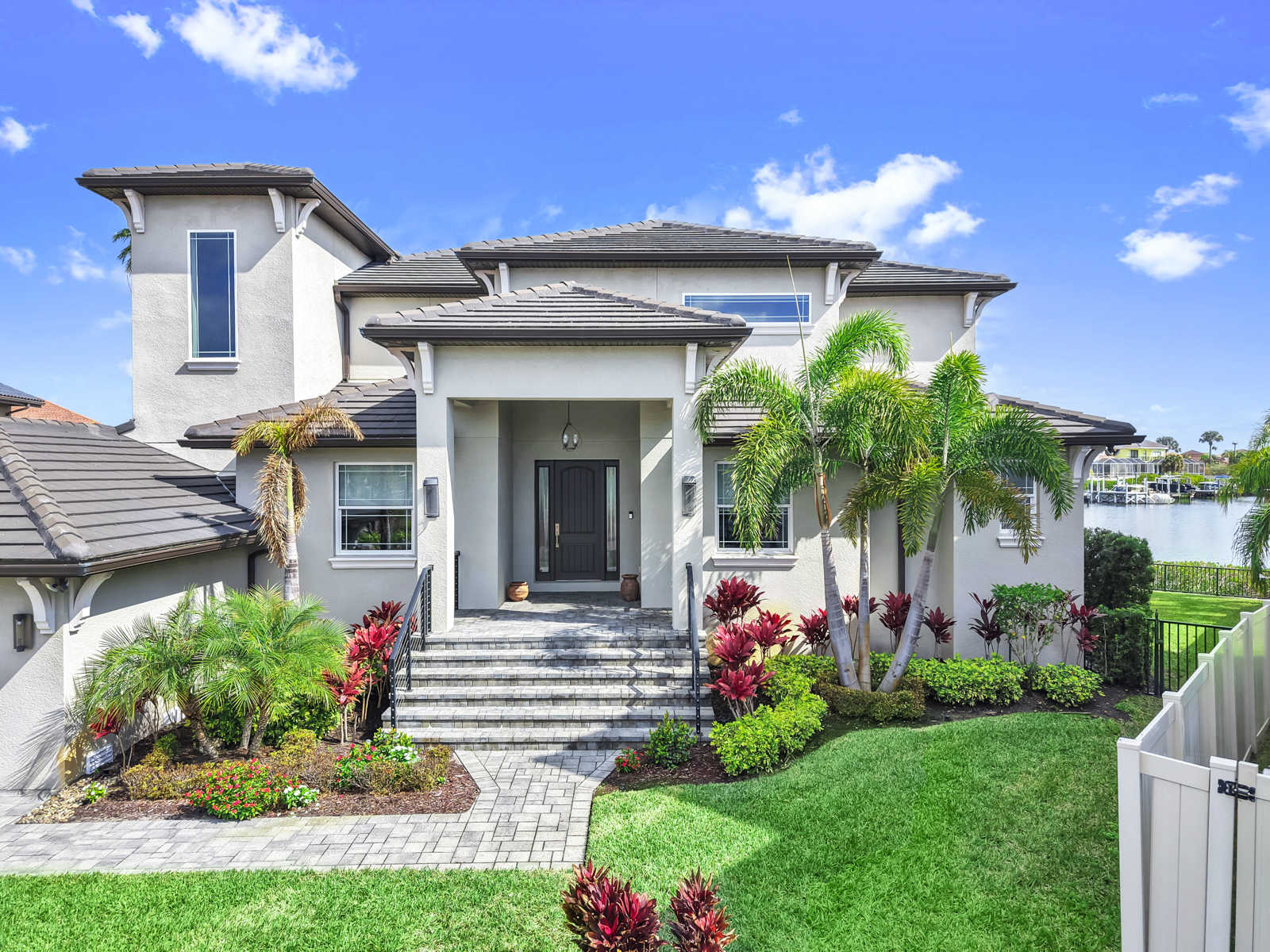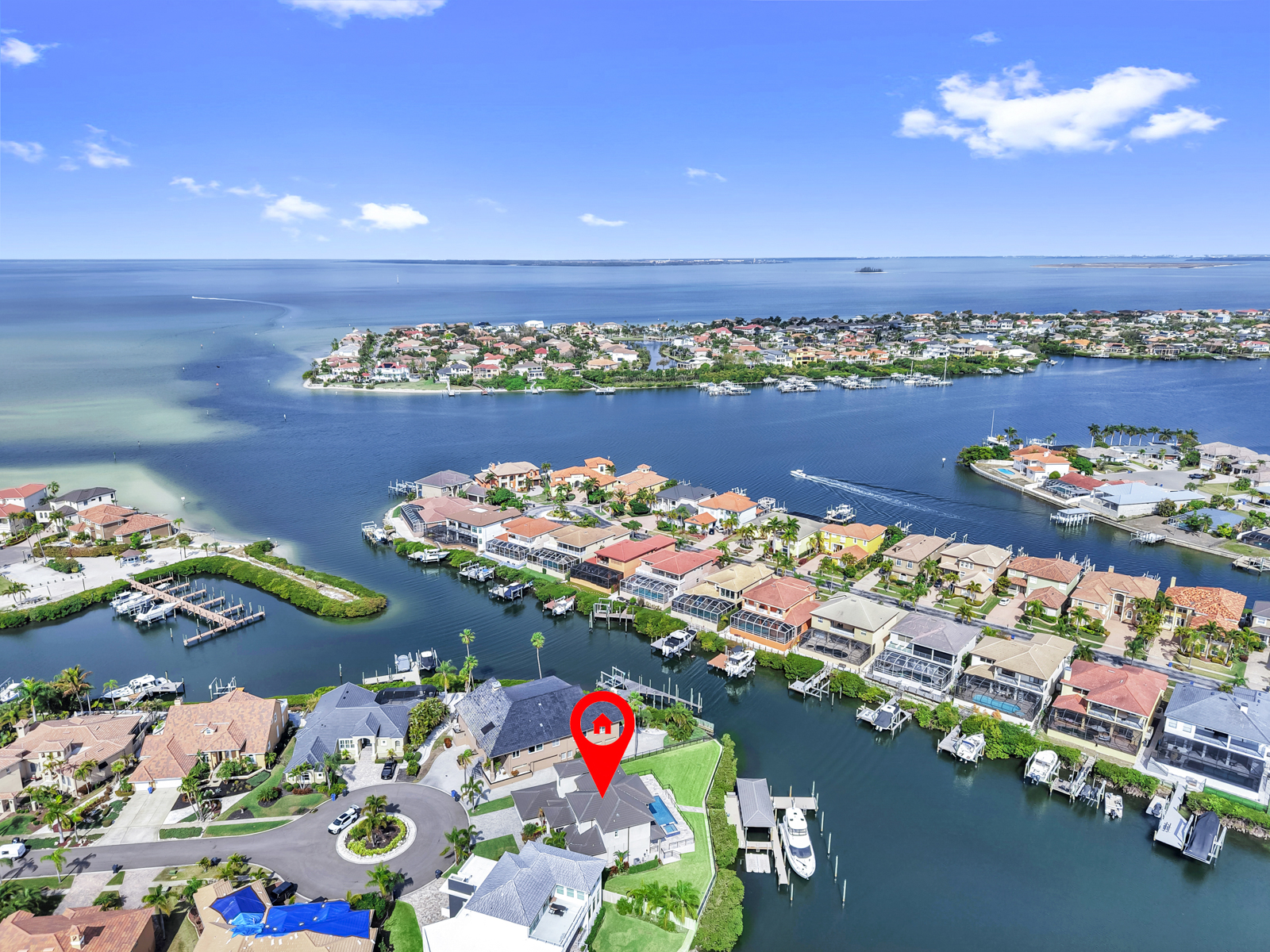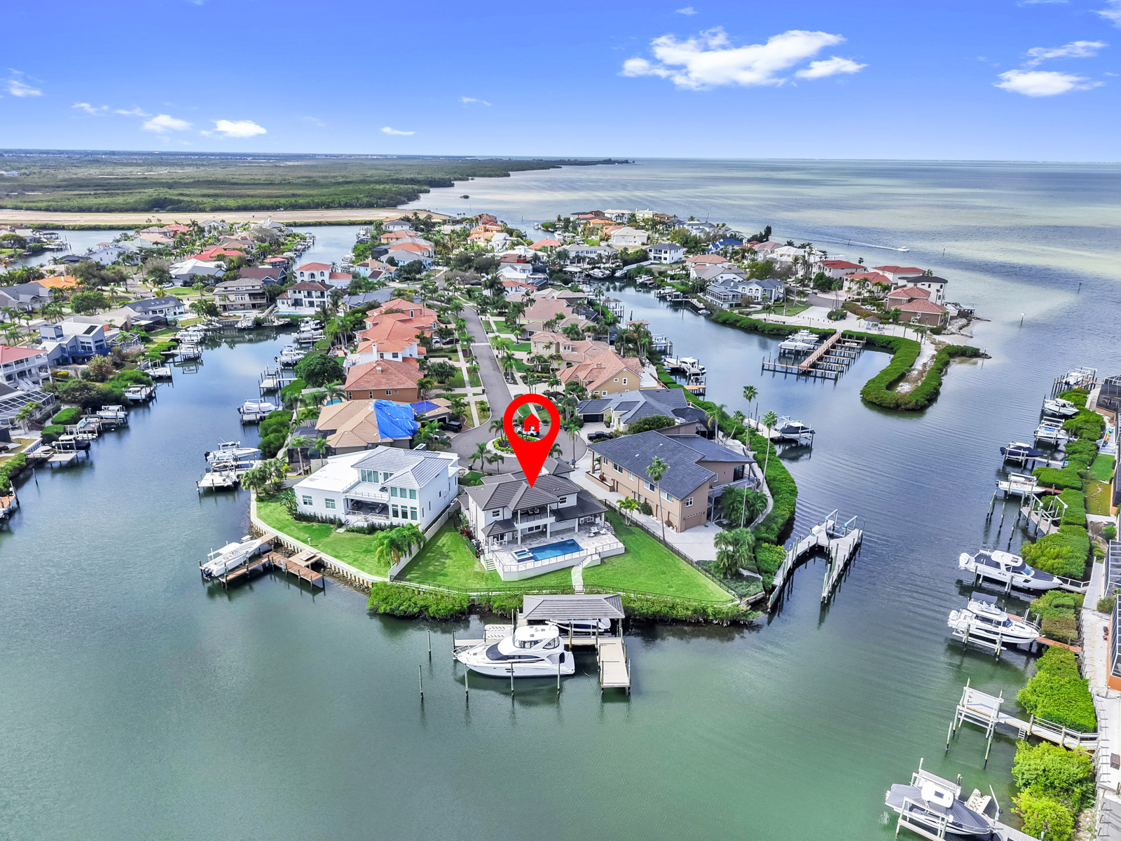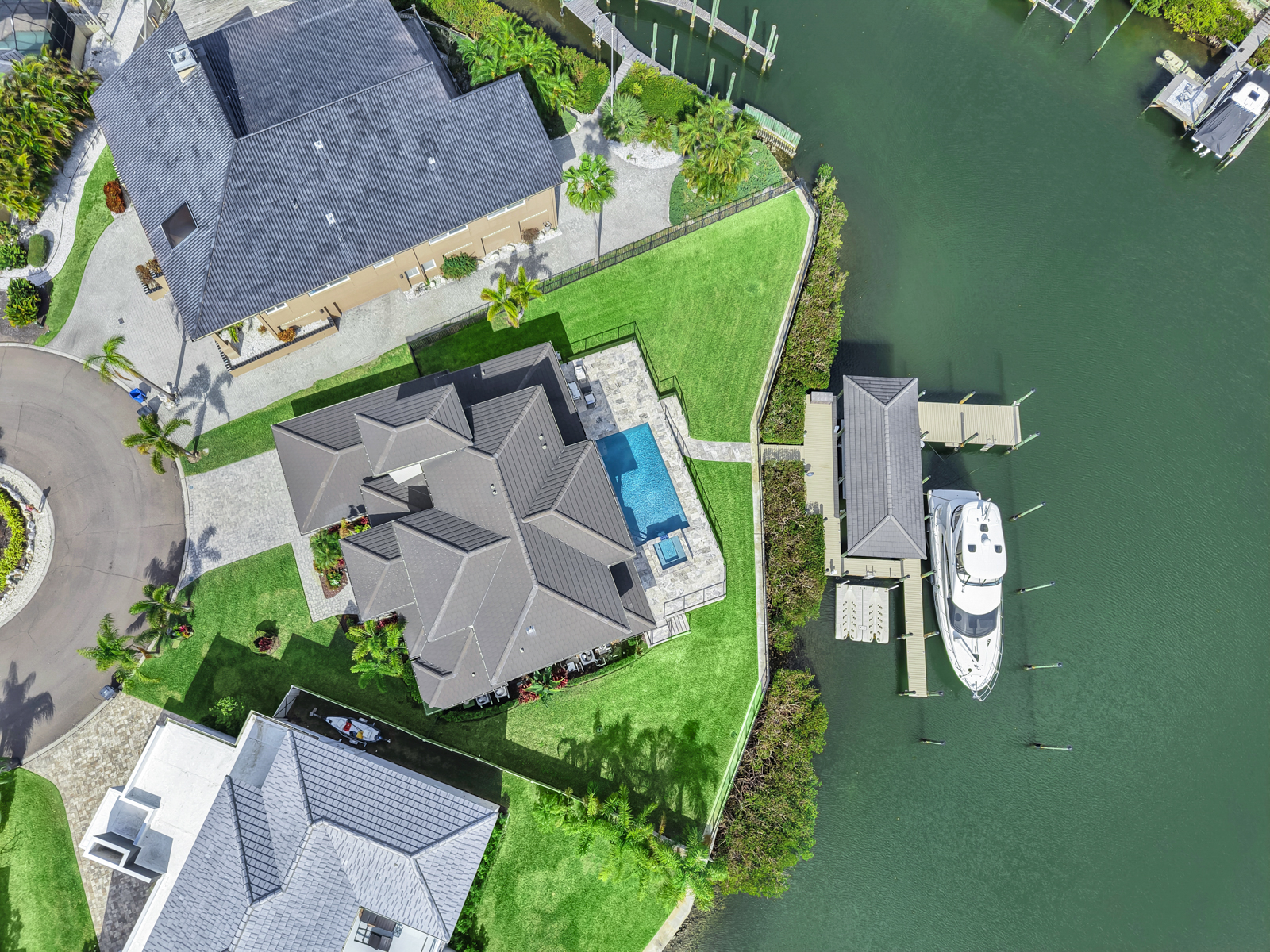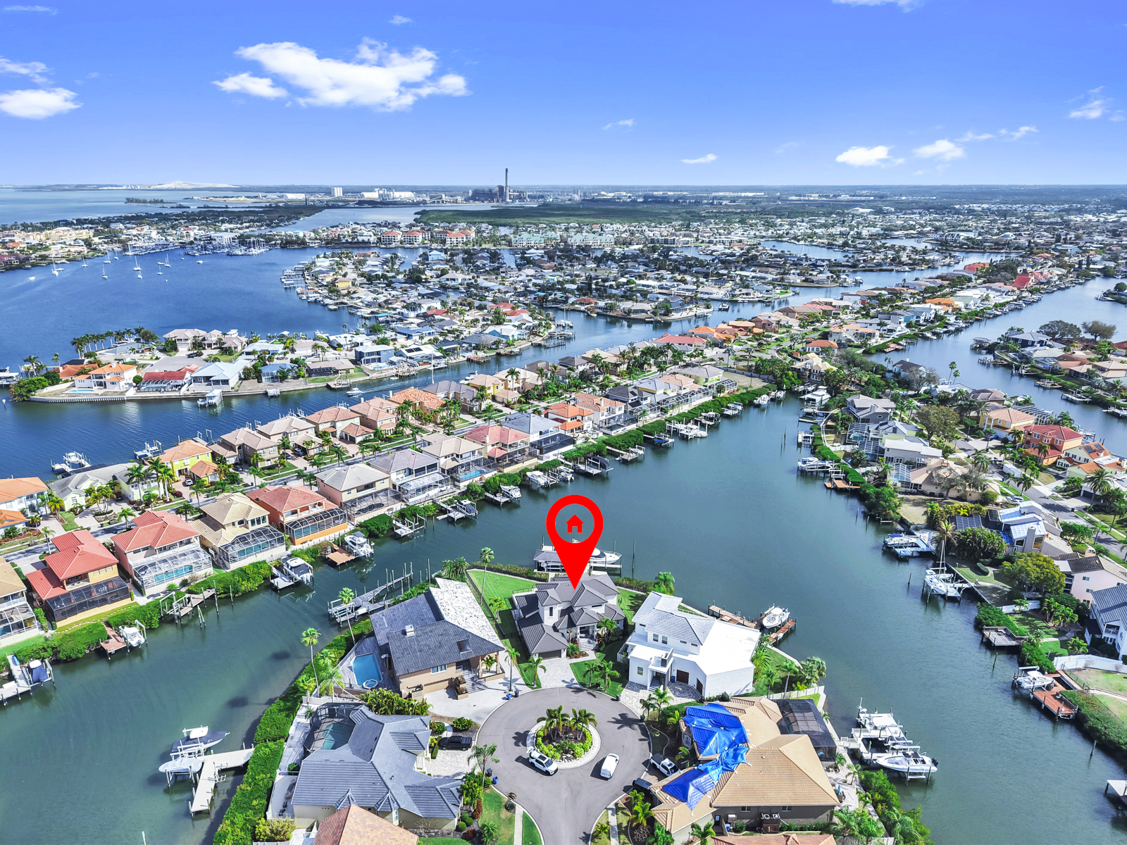 Spectacular Luxury Waterfront Estate. Nestled on a pie-shaped lot, this amazing, custom-built residence offers nearly 1,000 feet of marina and dock space, delivering an incomparable gateway to aquatic living.