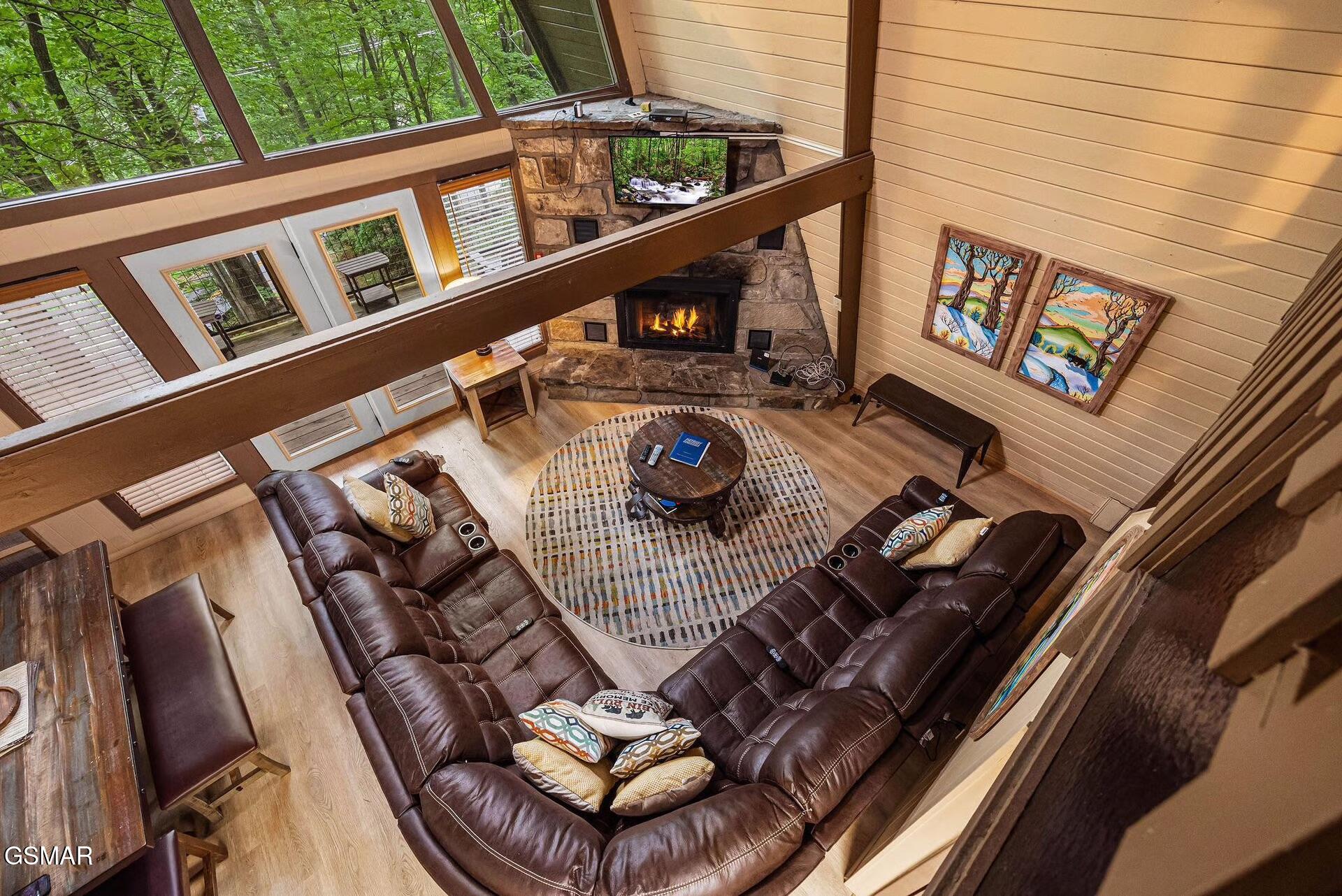Set among mature trees with two wraparound deck areas overlooking the wooded hillside, this 5-bedroom, 3-bathroom vintage Mansard chalet has the kind of private setting that guests pay a premium for AND its walking distance to the entrance of Ober Mountain Ski Resort, just minutes from downtown Gatlinburg, and right on the doorstep of Great Smoky Mountains National Park. Its also across the street from the Ownerc Club of Chalet Village, which features pools, tennis courts, clubhouse and a playground. City-maintained roads make it accessible year-round. Services include city water, trash pick-up and fiber-optic high speed internet. By now youve noted a number of reasons why Chalet Village is considered the best location for an STR. Inside, more than 2,700 square feet unfolds across three distinct levels. The main floor centers on a great room with an open living and dining layout and a mountain stone fireplace that earns its keep on cool mountain evenings. Two bedrooms and a full bath complete the level. The loft above adds two more bedrooms, a den, and a second bath. Then there is the lower level featuring a large recreation room with a second fireplace, a fifth bedroom, a third bathroom, a private theater room and a sauna. The rental program is established and the location is among the most convenient in the area. For buyers looking for a personal retreat with serious upside, this one is worth a close look.