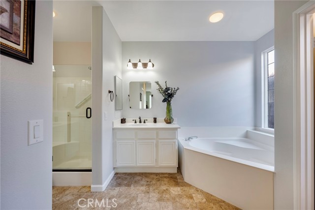 Welcome to Four Seasons, a premier 55 resort-style community! If you're looking for perfection, this is the house for you. This popular floor plan - Craftsman 2, features 3 bedrooms (one is currently being used as an office), 2 baths and a sizeable living room. This home is a showstopper and has been beautifully maintained down to the last detail. With newer Luxury Vinyl Plank flooring throughout, newer electric window blinds, freshly painted throughout, newer base boards throughout, beautiful shelving in front bedroom, newer Alumawood patio cover, new garage door opener, new Samsung washer, the list goes on. The kitchen offers granite counters, tile flooring, pull-out drawers in kitchen and bathrooms, all appliances have been updated. Kitchen offers an open concept looking out onto the family room with a separate formal dining room that connects seamlessly to the kitchen. The master suite features jetted corner tub, two closets, dual sinks and separate walk-in shower. Enjoy the spacious indoor laundry room which provides plenty of storage cabinets. The backyard offers amazingly low maintenance complete with solid Alumawood patio cover and fan w/ light, stamped concrete patio, artificial turf, beautiful yet low-maintenance landscaping with drip system out back and sprinklers in front. This peaceful setting creates the perfect place for relaxation and a cup of java. Save big on your electric bill with solar panels that offer a low monthly lease (under 90/mo). This is truly a turn-key home! The Lodge Clubhouse offers a 10-acre recreational facility that includes a wide variety of amenities from art classes to yoga, bridge, billiards, and more. Outdoor amenities include a large pool, spa, BBQ/picnic area, putting green, golf practice area, horseshoes, shuffleboard, bocce ball, basketball, and lighted tennis courts, pickleball, and badminton. Indoors, you can take advantage of the gym, library, billiards and card room, craft room, and a large ballroom for events. Nearby, you'll find a major shopping mall with excellent restaurants and movie theaters. Stroll through Old Town Temecula, with its charming downtown as well as award-winning wineries, all just a few miles away. Come and discover the active, enjoyable lifestyle waiting for you at Four Seasons Murrieta!
