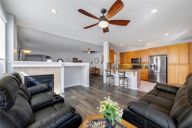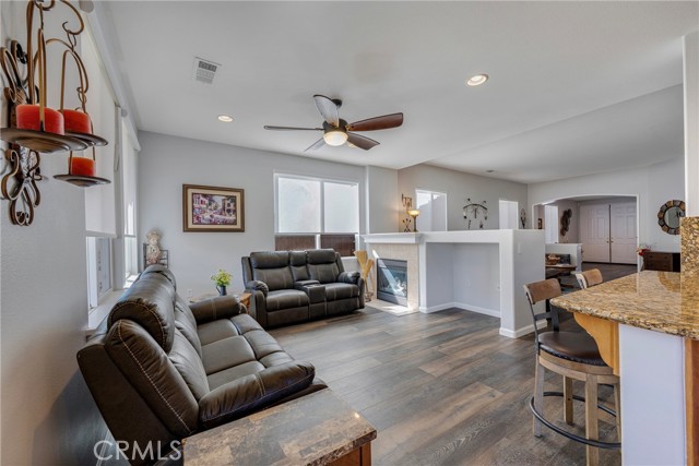 This stunning home is filled with upgrades and modern touches! Enter through the courtyard into the elegant tundra foyer with vaulted ceilings and barreled hallways, creating a bright, open feel. The gourmet kitchen features an oversized quartz island, pull-out cabinetry, Whirlpool appliances, a 5-burner gas stove, double oven, and a spacious walk-in pantry. Plank tile flooring runs throughout most of the home, with plush carpet in the bedrooms. The primary suite offers a luxurious retreat with an upgraded California Closet. The private, fully landscaped backyard showcases breathtaking mountain views. This well-maintained home also includes a separate living space or in-law suite. Dont miss out on this exceptional home, schedule a showing today!