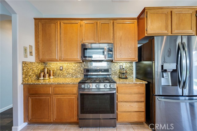 This stunning home is filled with upgrades and modern touches! Enter through the courtyard into the elegant tundra foyer with vaulted ceilings and barreled hallways, creating a bright, open feel. The gourmet kitchen features an oversized quartz island, pull-out cabinetry, Whirlpool appliances, a 5-burner gas stove, double oven, and a spacious walk-in pantry.