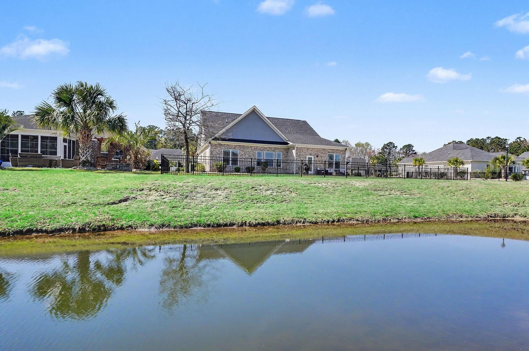 This stunning all-brick home in the gated community of Covington Lake East offers 4 bedrooms and 4 baths, along with an additional study, and combines thoughtful design with upscale features throughout. The chef's kitchen boasts stainless steel appliances, granite countertops, custom cabinetry, and a large pantry, opening to a spacious living area with soaring ceilings, a coffered ceiling, built-in bookcases, and a fireplace. The immaculate first-floor primary suite includes its own fireplace, a large walk-in closet, and a luxurious bath with double vanities, a soaking tub, and a walk-in tile shower. Four additional bedrooms and three full baths provide ample space for family and guests. Enjoy a fenced backyard overlooking a serene pond, perfect for relaxing or entertaining. This property is ideal as a primary residence, vacation home, or investment opportunity. Covington Lake East is a peaceful gated community featuring a pool and clubhouse, located in the Carolina Forest school district and just minutes from shopping, dining, hospitals, golf, and only 8 miles from the beach.