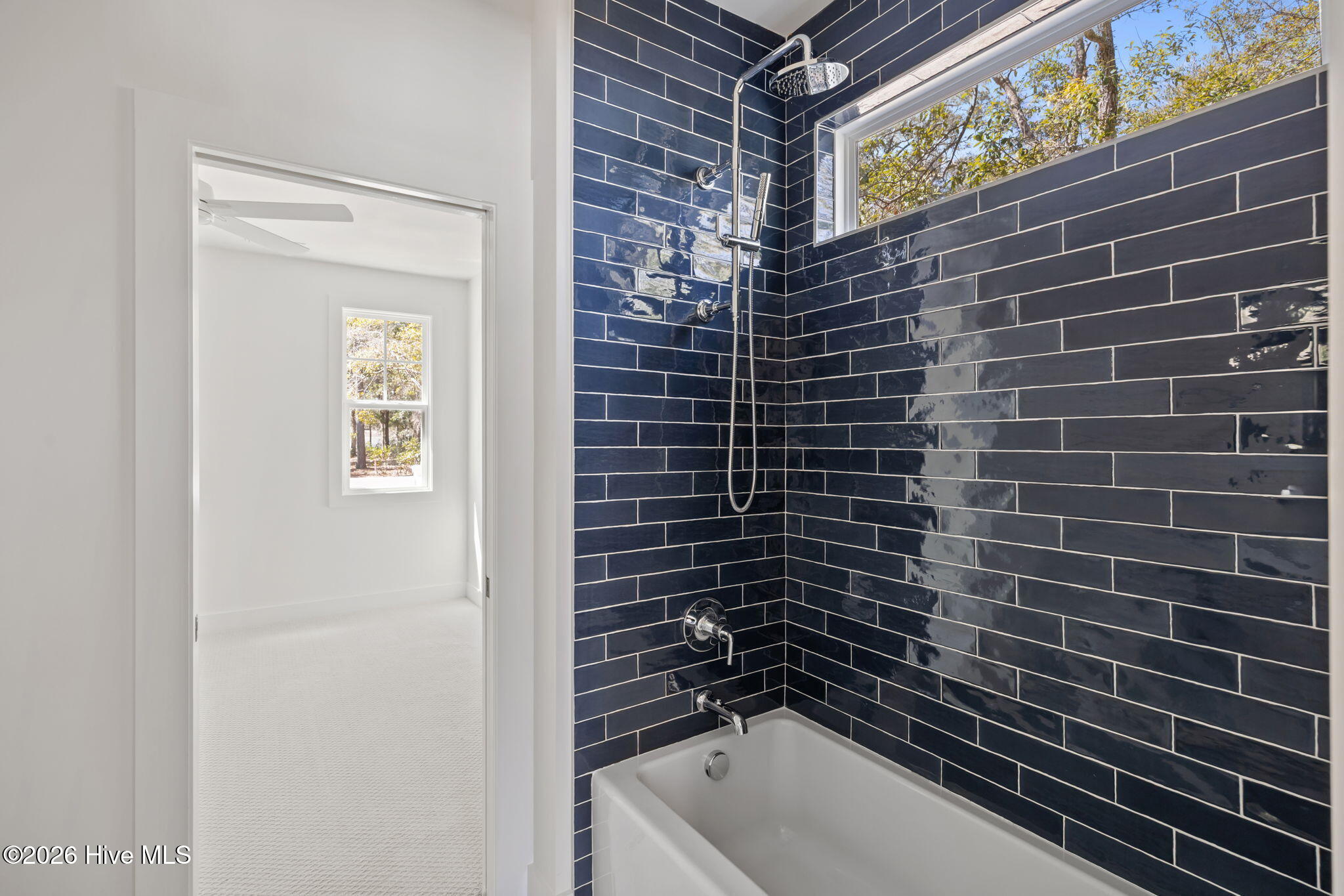 Built by local builder Airlie Homes, this beautiful new construction home sits on a spacious .34-acre homesite in the gated waterfront community of Oyster Harbour. Spanning 2,525 sq ft, this home offers 4 bedrooms, 3.5 bathrooms, and refined finishes throughout the open, airy layout. A wide columned front porch welcomes you inside, where natural light fills the thoughtfully designed interior. The family room is anchored by a vaulted tongue and groove ceiling and brick gas fireplace, while large windows frame views of the surrounding landscape. The stunning kitchen showcases a 36-inch gas range beneath a custom hood, quartz countertops, designer tile backsplash, shaker cabinetry with stacked uppers, a generous island with seating, a sunny breakfast nook, and a walk-in pantry. A nearby formal dining room with wainscoting is perfect for gatherings. The first-floor primary suite occupies its own wing with a tray ceiling, sitting room/office, walk-in closet with wood shelving, and a spa-like bath with dual vanities, makeup vanity, and a fully tiled walk-in shower. Two secondary bedrooms share a Jack-and-Jill bath, while upstairs a versatile bonus room with full bath doubles as a fourth bedroom, guest suite, or media room. Outdoor living extends to a covered back porch and tranquil yard, complemented by a 2-car garage, spacious laundry room, Trane HVAC, and irrigation. Life in Oyster Harbour offers an exceptional coastal lifestyle with amenities including a boat ramp and day dock on the Intracoastal Waterway, a fishing pier and kayak launch on the Shallotte River, & a clubhouse with a fitness center. Residents also enjoy tennis and pickleball courts, bocce ball, a putting green, walking trails, a picnic pavilion, and secure boat and RV storage, all surrounded by scenic coastal forest & tranquil ponds. This is a rare opportunity to own a beautifully built home in one of coastal North Carolina's most amenity-rich gated communities. Call to make this home yours!