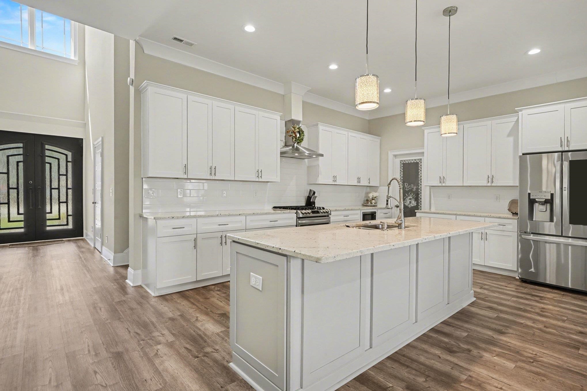 Built by local builder Airlie Homes, this beautiful new construction home sits on a spacious .34-acre homesite in the gated waterfront community of Oyster Harbour. Spanning 2,525 sq ft, this home offers 4 bedrooms, 3.5 bathrooms, and refined finishes throughout the open, airy layout. A wide columned front porch welcomes you inside, where natural light fills the thoughtfully designed interior.