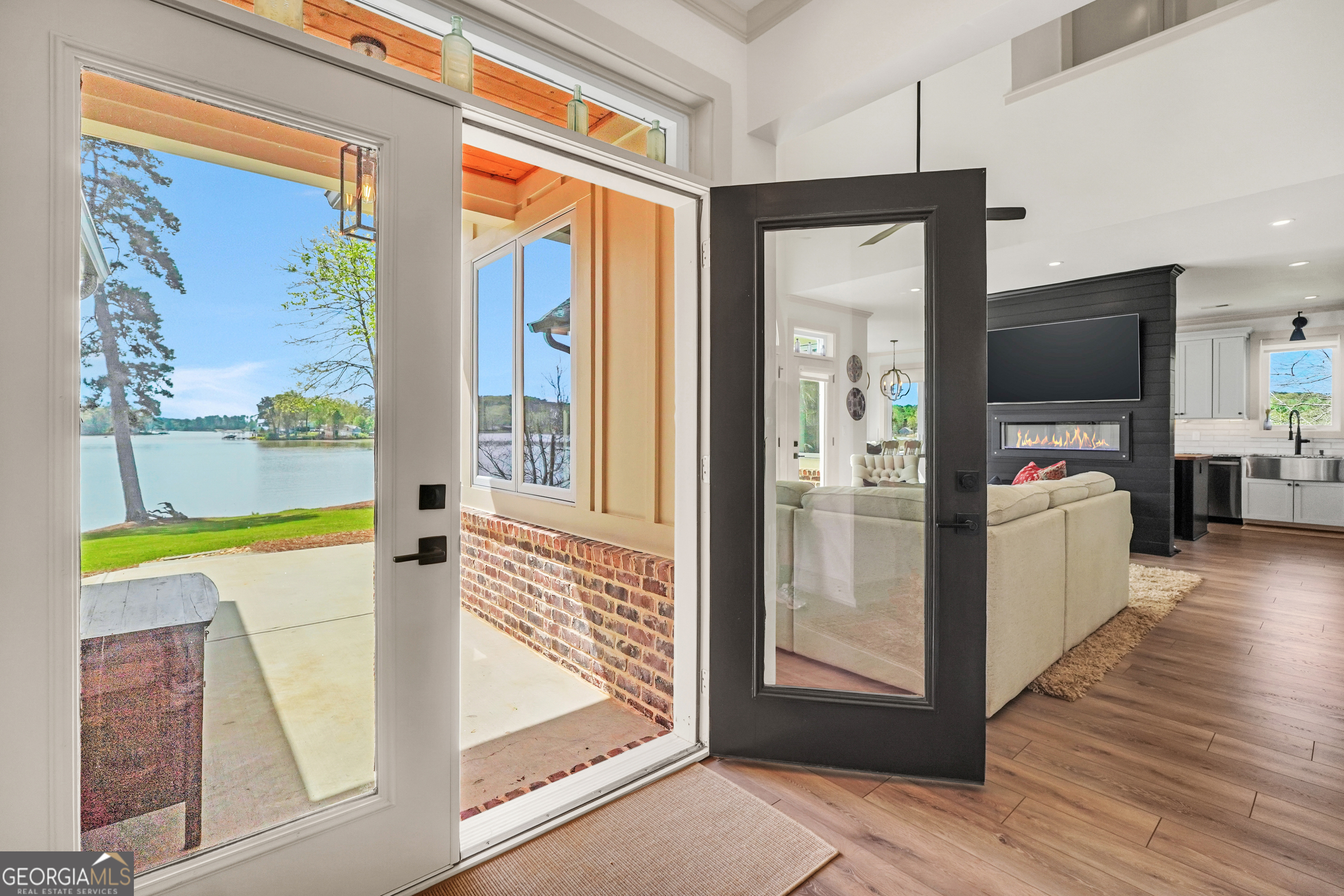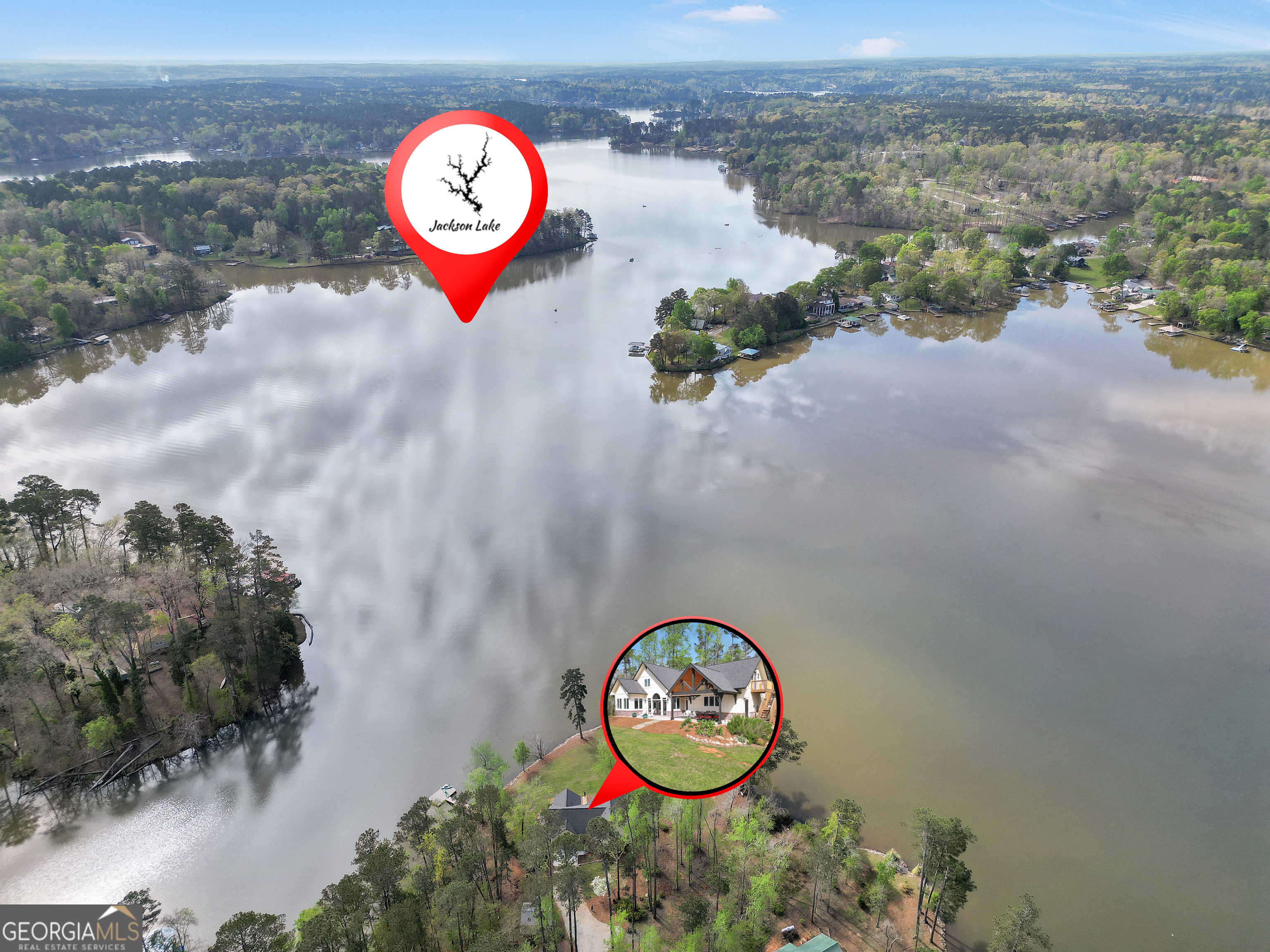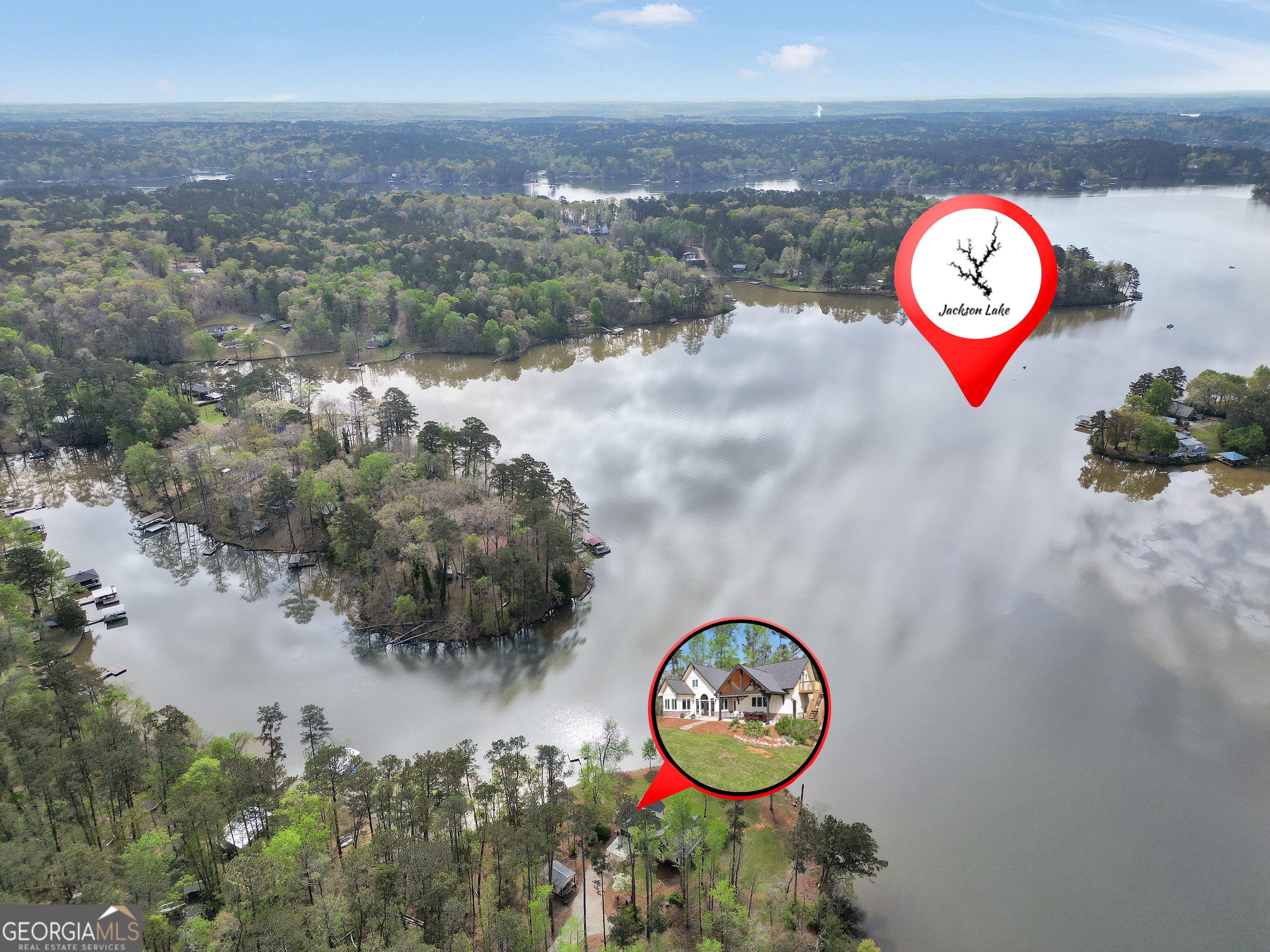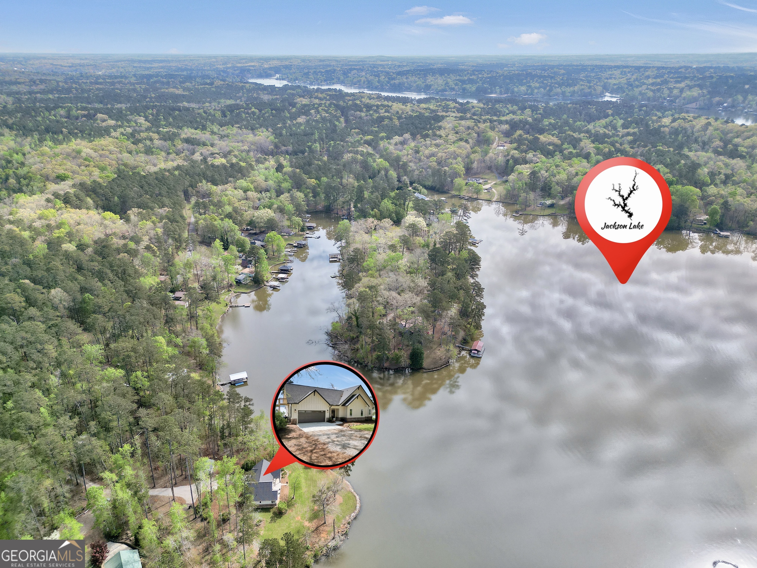 Jackson Lake Dream Home! With over 500 feet of Jackson Lake shoreline, a kayakers playground, a bird watchers paradise, and a front-row seat to one of the most breathtaking views on the water - 451 Mayo Road is the one youve been waiting for! Built in 2023 and meticulously maintained, this stunning lakefront retreat offers the rare combination of modern finishes and true waterfront living in the heart of Newton County. With a southern exposure, nearly every room in the house captures gorgeous natural light throughout the day - and those late afternoon rays hitting the water? Absolutely breathtaking. The thoughtfully designed interior features floor-to-ceiling doors and windows along the back of the home, flooding the living spaces with natural light and framing the lake like a living work of art. A showstopping double-sided fireplace anchors both the living room and kitchen, creating a warm and inviting flow ideal for entertaining. The open dining area is surrounded by windows, and the upgraded kitchen features a butcher block island - functional, beautiful, and built to last. A convenient half bath rounds out the main level. The primary suite is located on the main floor and features a well-appointed en suite with a stunning stone shower. Upstairs youll find two additional bedrooms and a full bath - plenty of room for family or guests. The oversized garage easily accommodates two full-size vehicles with room to spare for storage. Above the garage, a private studio apartment with kitchenette offers the perfect setup for in-laws, older teens, or guests who want their own space. Outside is where this property truly shines. Sitting on just under two acres at the end of a quiet cul-de-sac, youll have plenty of room to breathe, play, and spread out - all anchored by a nearly new floating dock and established riprap seawall. The covered patio is the perfect spot for dinners overlooking the lake, and stepping out through the French doors into that southern light never gets old. Over 500 feet of shoreline. All-day natural light. Incredible bird watching. Private guest suite. This one has it all - dont let it get away!