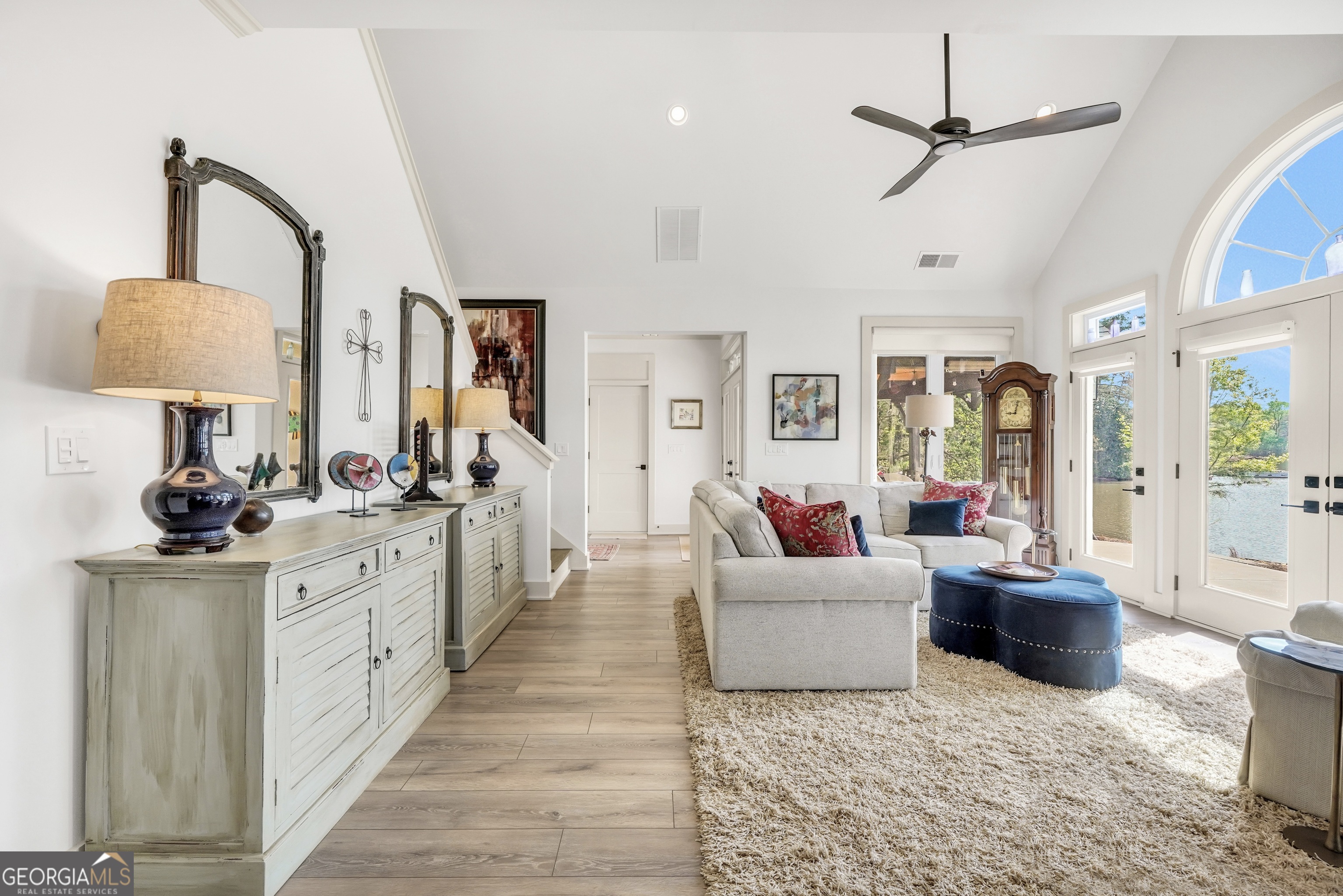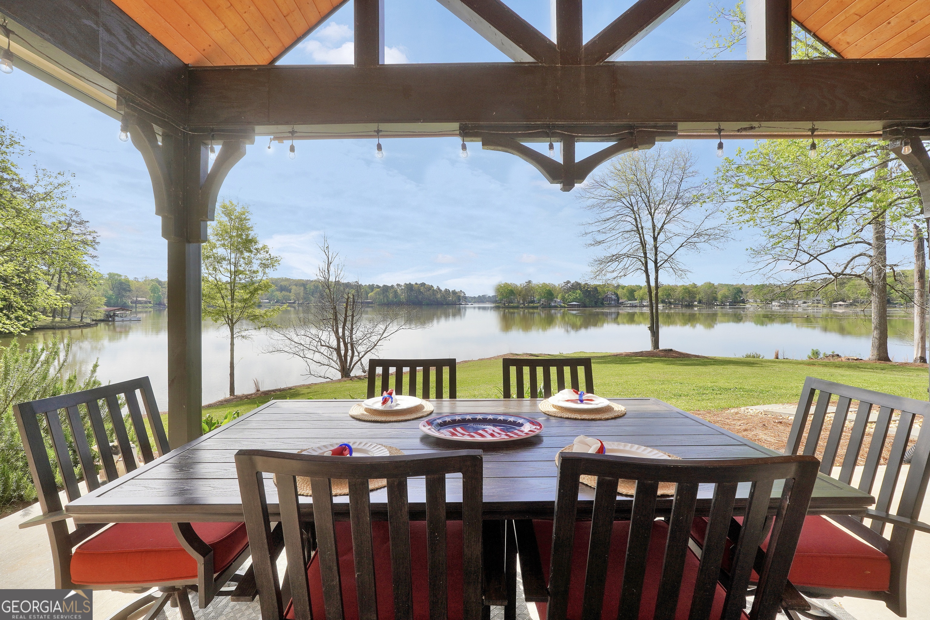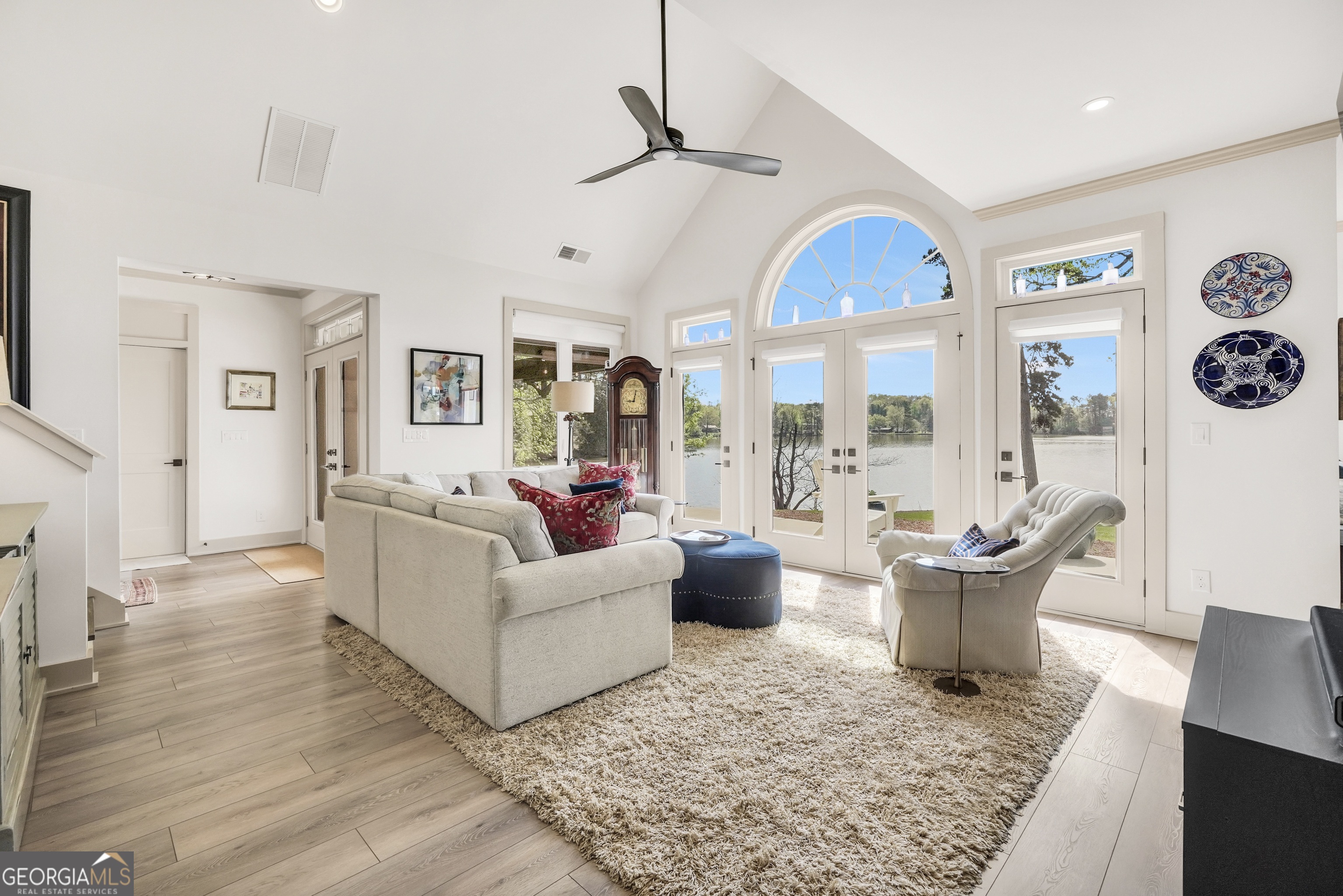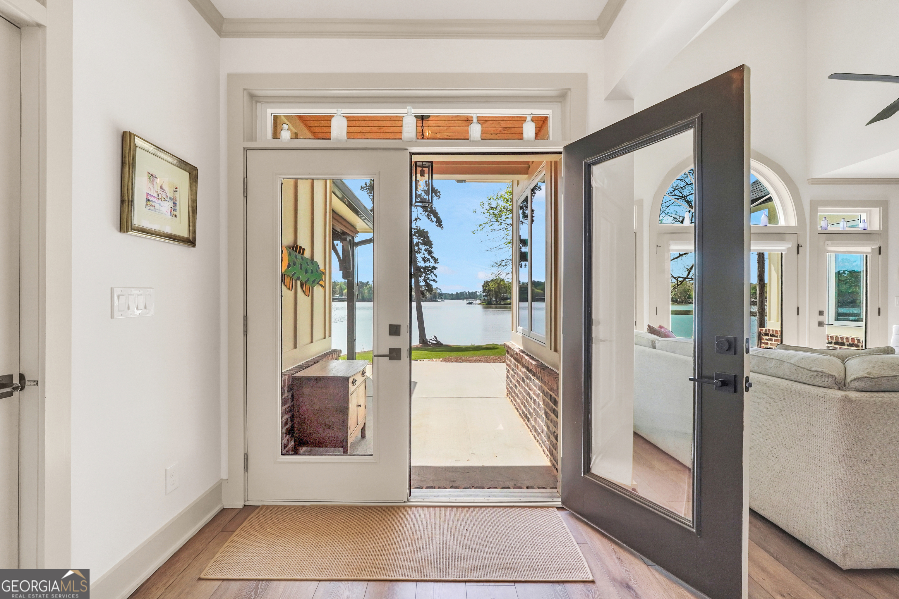 Jackson Lake Dream Home! With over 500 feet of Jackson Lake shoreline, a kayakers playground, a bird watchers paradise, and a front-row seat to one of the most breathtaking views on the water - 451 Mayo Road is the one youve been waiting for! Built in 2023 and meticulously maintained, this stunning lakefront retreat offers the rare combination of modern finishes and true waterfront living in the heart of Newton County. With a southern exposure, nearly every room in the house captures gorgeous natural light throughout the day - and those late afternoon rays hitting the water? Absolutely breathtaking. The thoughtfully designed interior features floor-to-ceiling doors and windows along the back of the home, flooding the living spaces with natural light and framing the lake like a living work of art. A showstopping double-sided fireplace anchors both the living room and kitchen, creating a warm and inviting flow ideal for entertaining. The open dining area is surrounded by windows, and the upgraded kitchen features a butcher block island - functional, beautiful, and built to last. A convenient half bath rounds out the main level. The primary suite is located on the main floor and features a well-appointed en suite with a stunning stone shower. Upstairs youll find two additional bedrooms and a full bath - plenty of room for family or guests. The oversized garage easily accommodates two full-size vehicles with room to spare for storage. Above the garage, a private studio apartment with kitchenette offers the perfect setup for in-laws, older teens, or guests who want their own space. Outside is where this property truly shines. Sitting on just under two acres at the end of a quiet cul-de-sac, youll have plenty of room to breathe, play, and spread out - all anchored by a nearly new floating dock and established riprap seawall. The covered patio is the perfect spot for dinners overlooking the lake, and stepping out through the French doors into that southern light never gets old. Over 500 feet of shoreline. All-day natural light. Incredible bird watching. Private guest suite. This one has it all - dont let it get away!