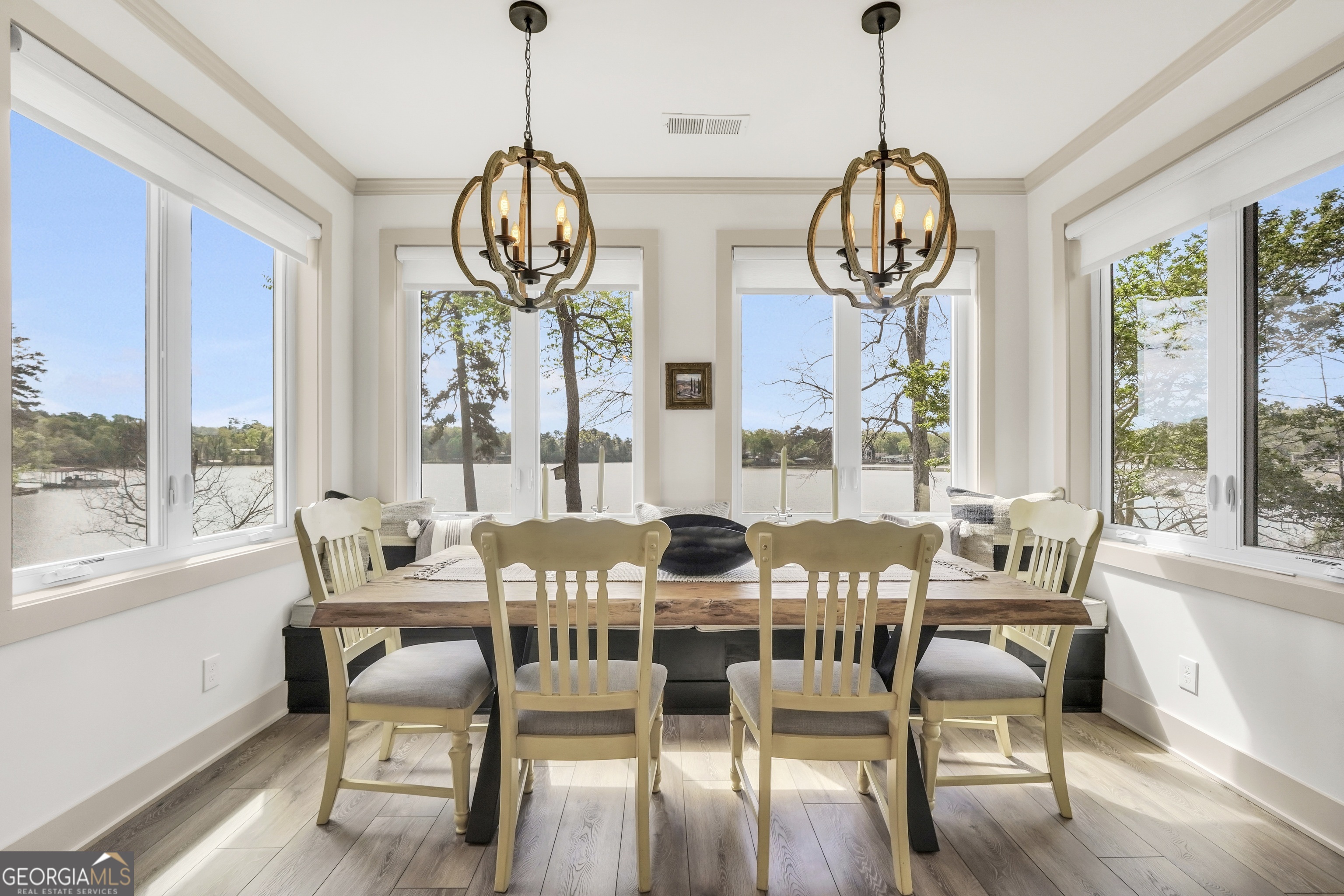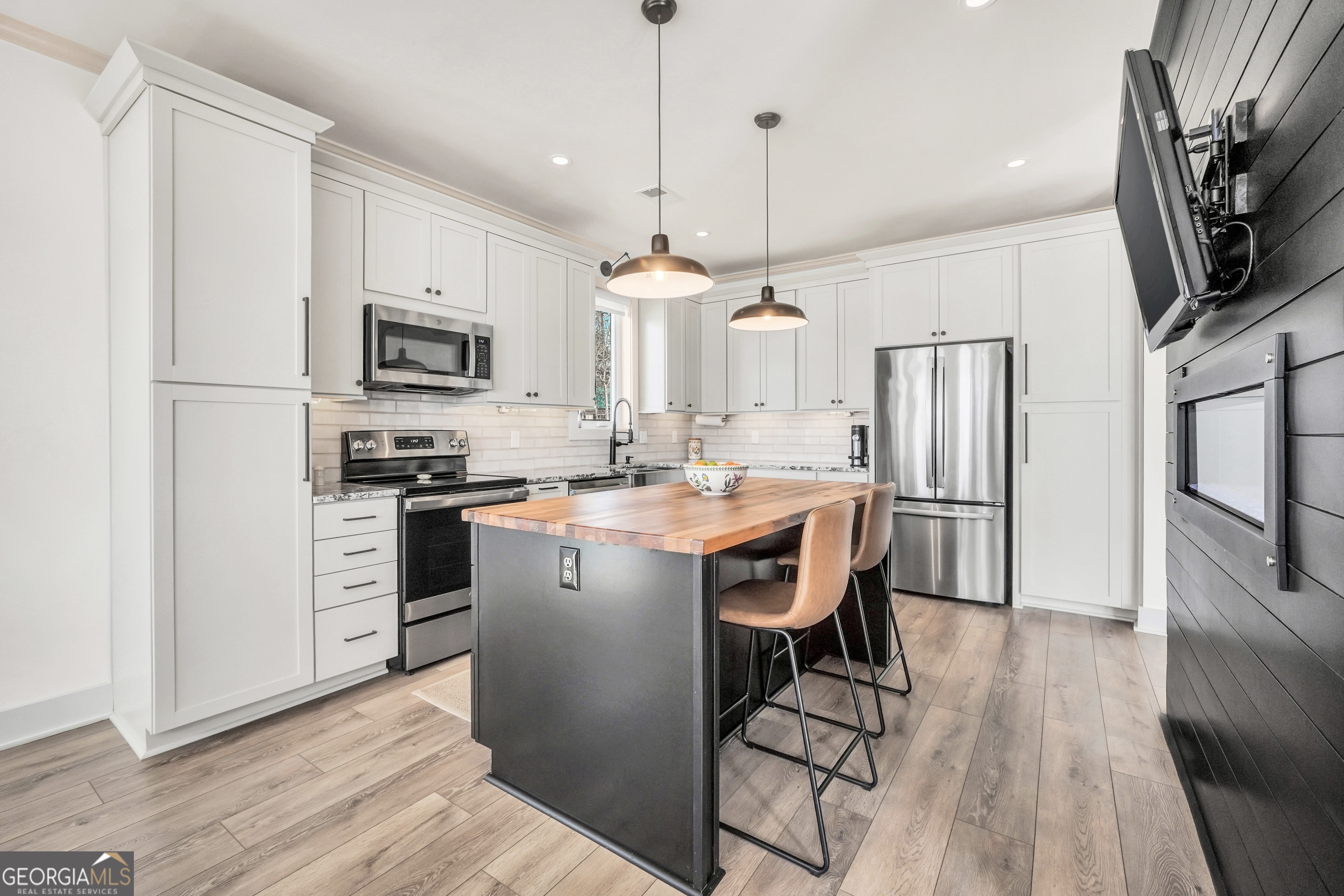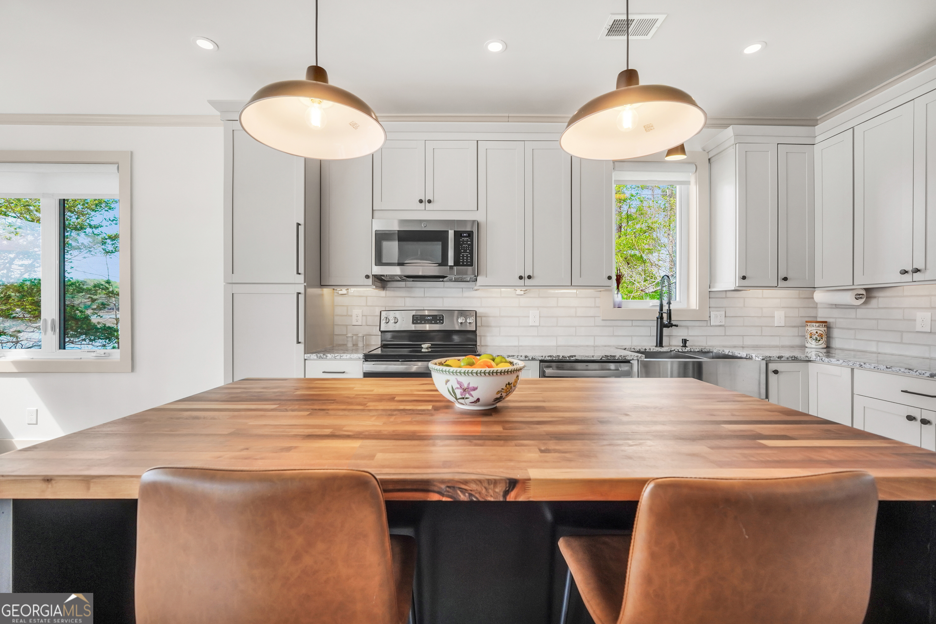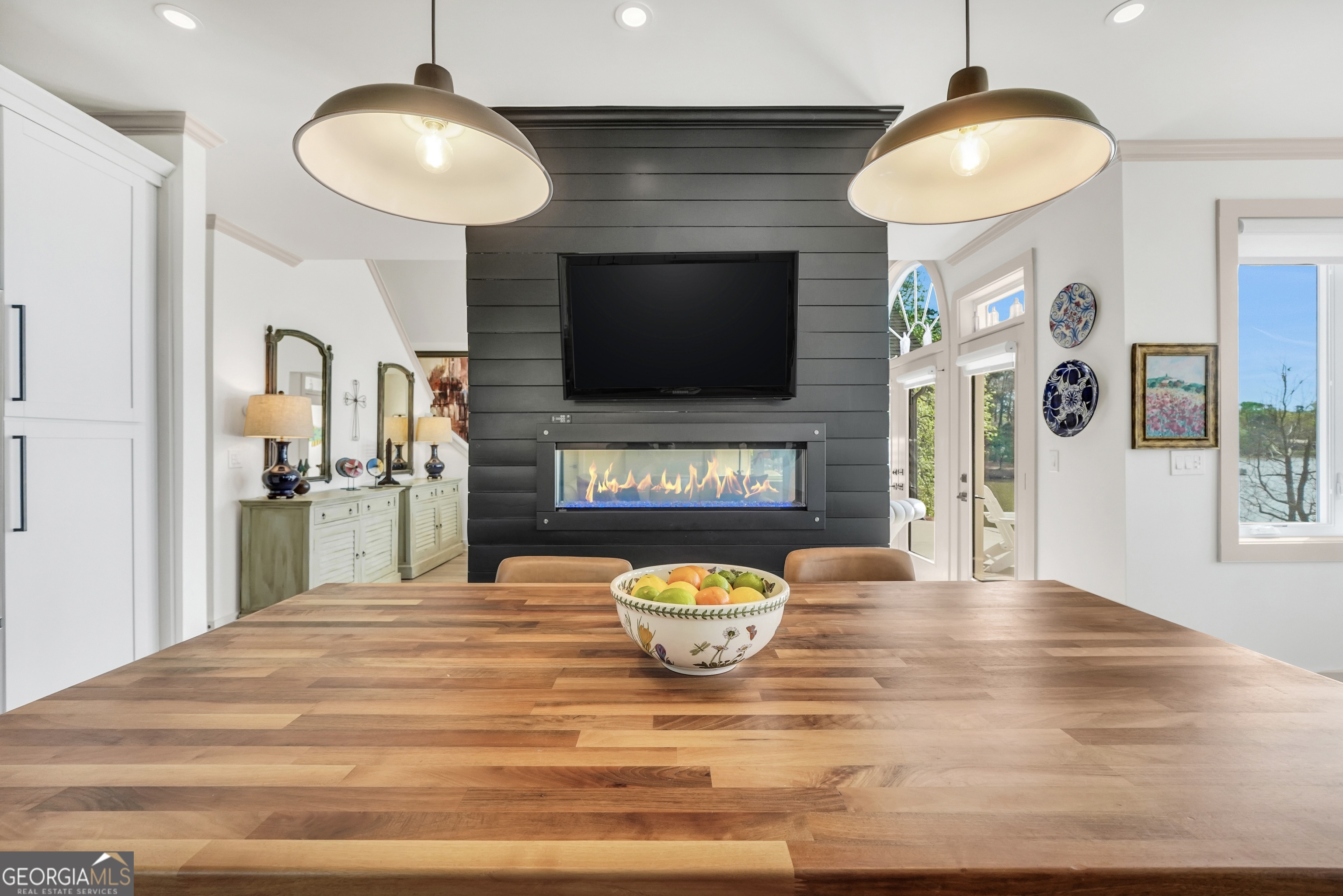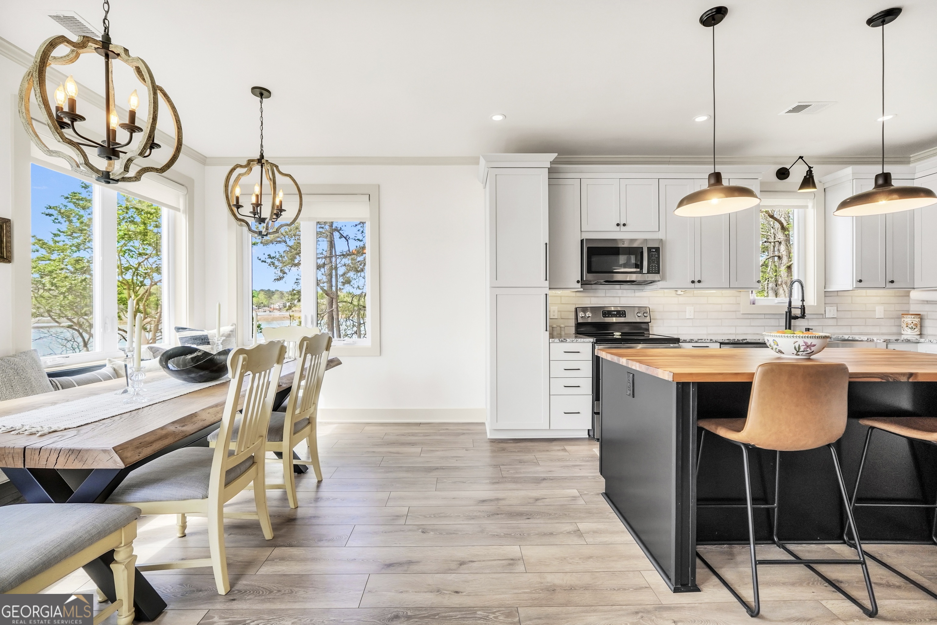 Jackson Lake Dream Home! With over 500 feet of Jackson Lake shoreline, a kayakers playground, a bird watchers paradise, and a front-row seat to one of the most breathtaking views on the water - 451 Mayo Road is the one youve been waiting for! Built in 2023 and meticulously maintained, this stunning lakefront retreat offers the rare combination of modern finishes and true waterfront living in the heart of Newton County. With a southern exposure, nearly every room in the house captures gorgeous natural light throughout the day - and those late afternoon rays hitting the water? Absolutely breathtaking. The thoughtfully designed interior features floor-to-ceiling doors and windows along the back of the home, flooding the living spaces with natural light and framing the lake like a living work of art. A showstopping double-sided fireplace anchors both the living room and kitchen, creating a warm and inviting flow ideal for entertaining. The open dining area is surrounded by windows, and the upgraded kitchen features a butcher block island - functional, beautiful, and built to last. A convenient half bath rounds out the main level. The primary suite is located on the main floor and features a well-appointed en suite with a stunning stone shower. Upstairs youll find two additional bedrooms and a full bath - plenty of room for family or guests. The oversized garage easily accommodates two full-size vehicles with room to spare for storage. Above the garage, a private studio apartment with kitchenette offers the perfect setup for in-laws, older teens, or guests who want their own space. Outside is where this property truly shines. Sitting on just under two acres at the end of a quiet cul-de-sac, youll have plenty of room to breathe, play, and spread out - all anchored by a nearly new floating dock and established riprap seawall. The covered patio is the perfect spot for dinners overlooking the lake, and stepping out through the French doors into that southern light never gets old. Over 500 feet of shoreline. All-day natural light. Incredible bird watching. Private guest suite. This one has it all - dont let it get away!